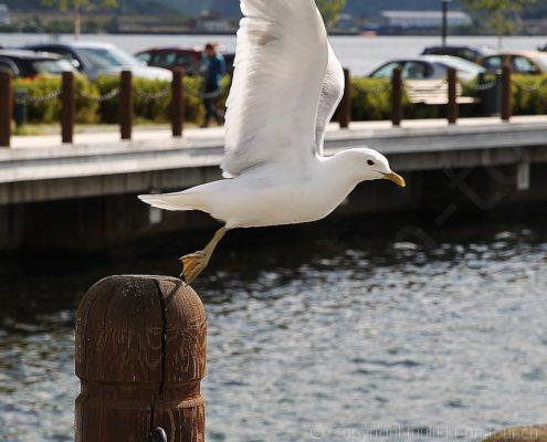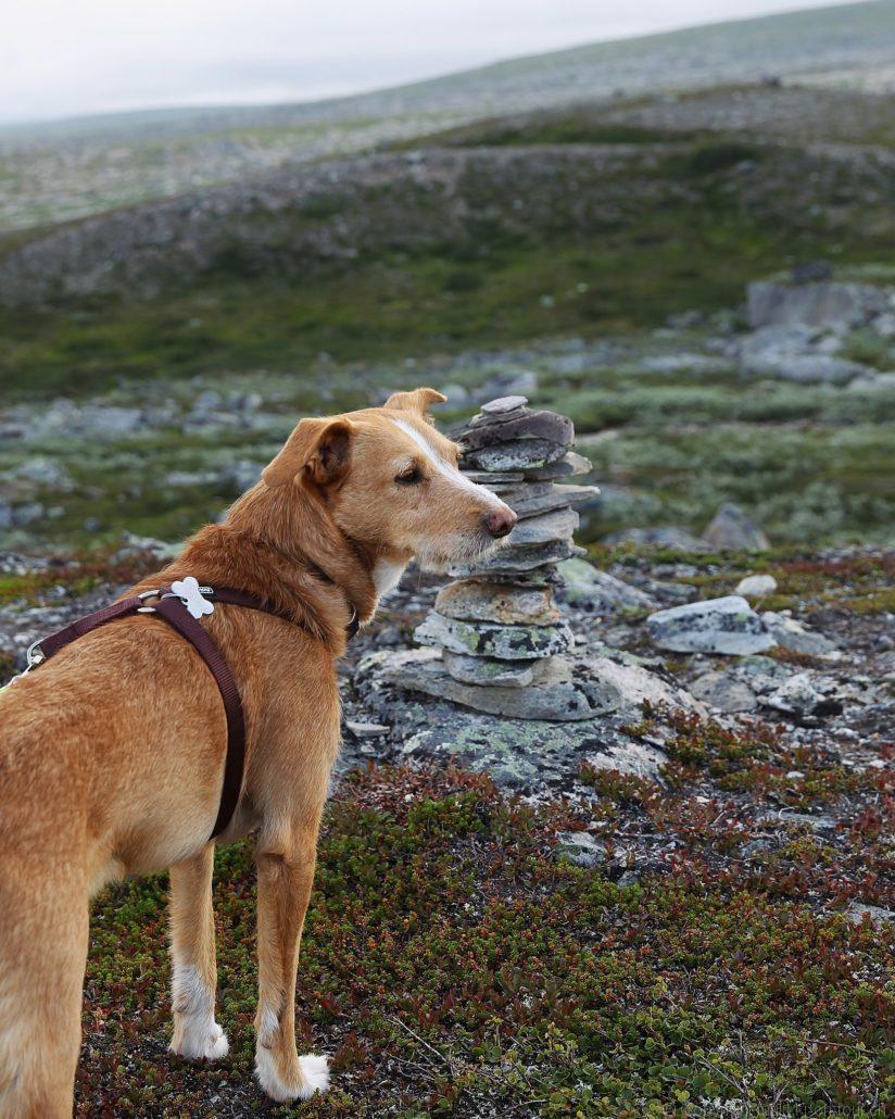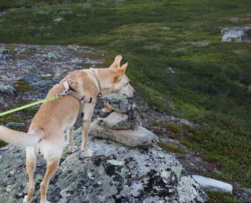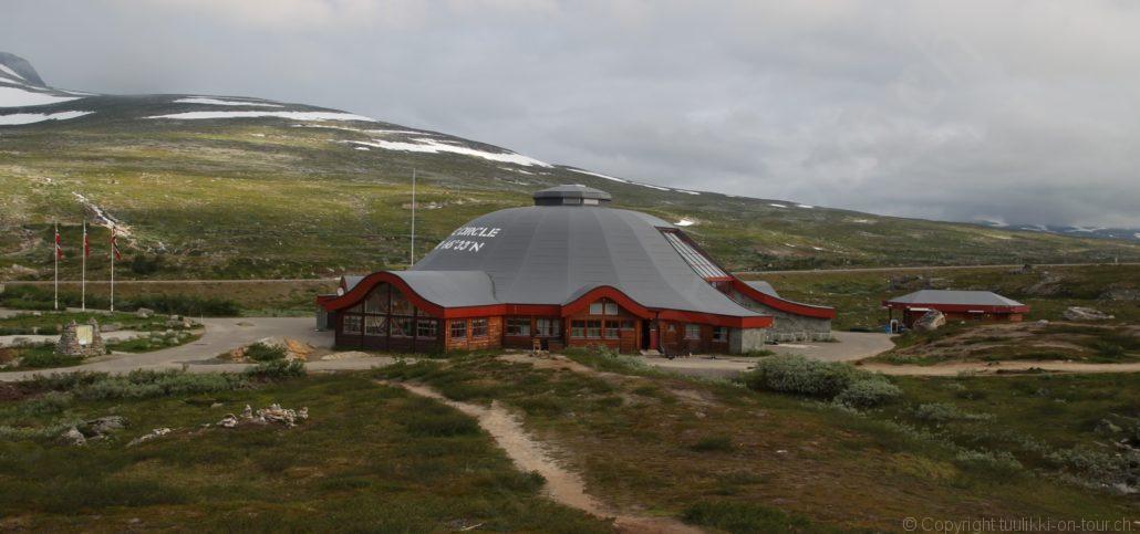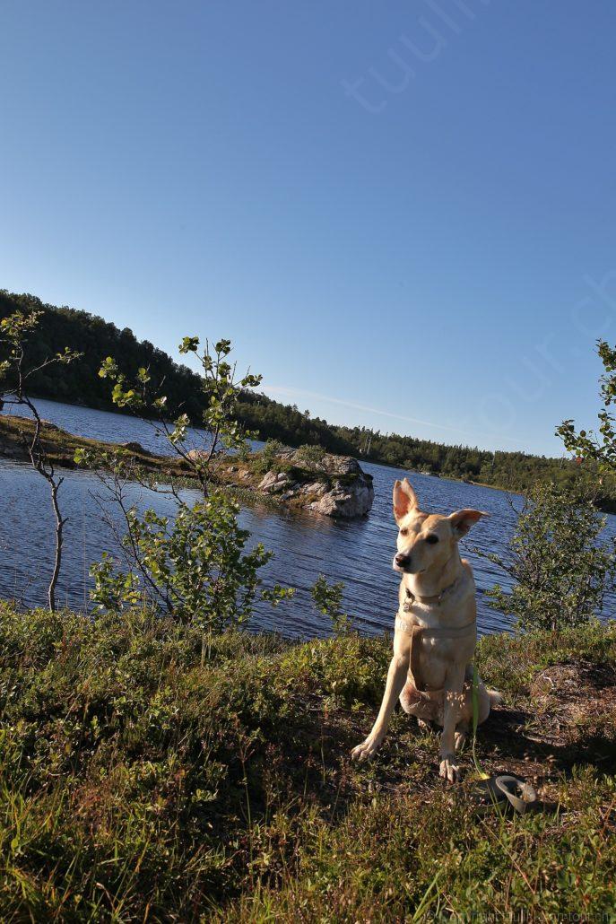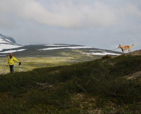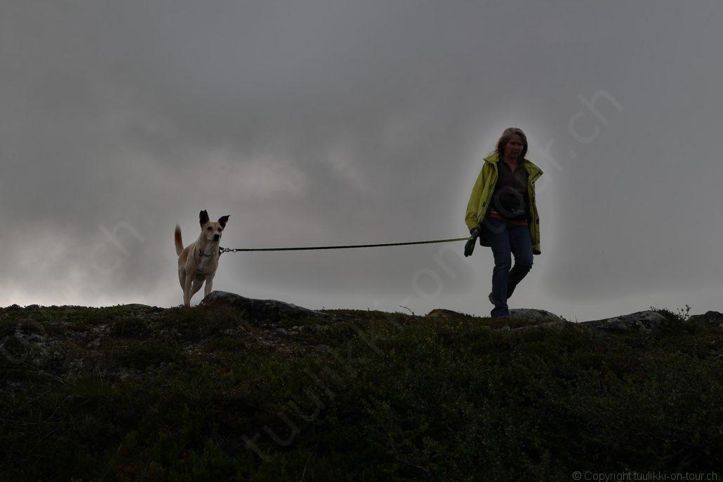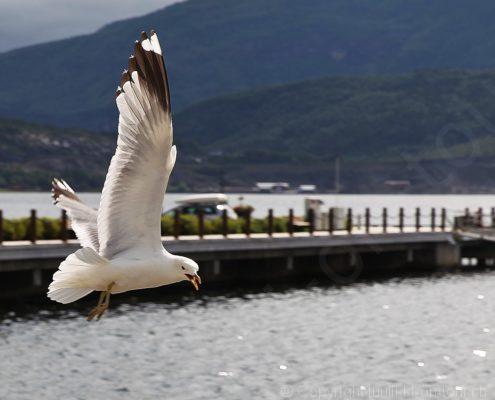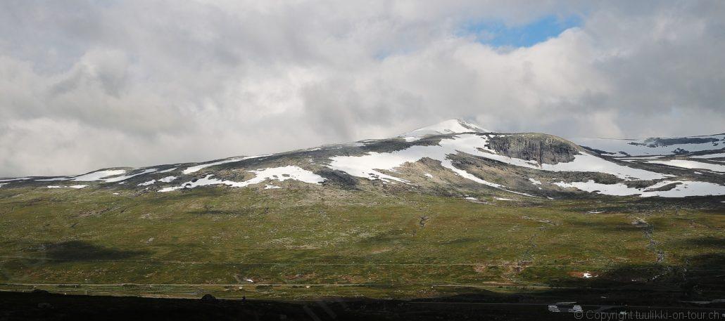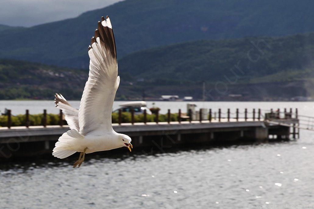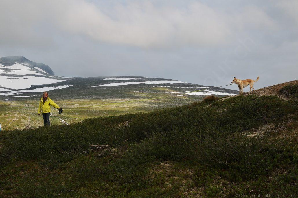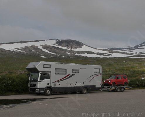 Wir nutzen die Gunst der frühen Morgenstunde und fahren von unserem einsamen Übernachtungsplatz zum arctic center, wo zig WoMos stehen, deren Insassen aber noch schlafen. Nun können wir in aller Ruhe durch die Gegend laufen und ganz alleine die vielen Steinmännchen bewundern, auf den Hügel hinauf ‘klettern’, um runter zu sehen und danach vor dem Polarkreis-Monument Fotos machen und einige Ansichtskarten einwerfen. Wir fahren dann 27 km zurück und weiter durch eine wahrhaft überwältigende Szenerie, entlang des z.T. recht reissenden Saltalselva und danach einem Fjord entlang: links Wasser, rechts Fels auf der E6 bis Fauske. Auf einem grossen Stellplatz am Meer parkieren wir und folgen dem Küstenweg zum ‘jet d’eau’ zu Fuss. Unterwegs erkundigen wir uns nach einer pre-paid SIM-Karte, aber leider funktioniert es in Norwegen nicht so einfach und günstig wie in Finnland. Für Nicht-residents gibt’s für umgerechnet CHF 25.- nur gerade 500 MB, was mit Foto-upload und Mails viel zu wenig ist. Auf aussichtsreicher Strecke folgen wir dann dem Fjord bis Bodo, der Hauptstadt von Nordland, die sehr prominent am Meer/Fjordeingang gelegen ist und regelmässig von den Hurtigruten-Schiffen angefahren wird. Es geht steil bergan zum Parkplatz des Ronvikfjell, von wo wir eine fantastische Aussicht auf die Stadt und die vorgelagerten Inseln haben. Die Wolken haben sich verzogen, blauer Himmel und Sonne herrschen vor und was sehen unsere Augen, soeben fährt das Hurtigruten-Schiff mit Ziel Lofoten aus. Von hier gehen verschiedene Wanderwege los, d.h. am Abend herrscht geradezu Grossandrang von Wanderern, Joggern und Hundespazierern sowie Velofahrern die hierhochgekraxelt sind. Das legt sich aber am späteren Abend und wir haben die herrliche Aussicht fast für uns alleine; das ist eben der Vorteil eines Wohnmobils, man hat alles dabei und kann bleiben, wenn die anderen heim müssen für’s Abendessen und Bett.