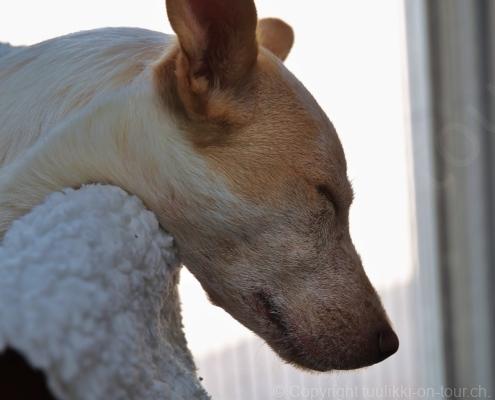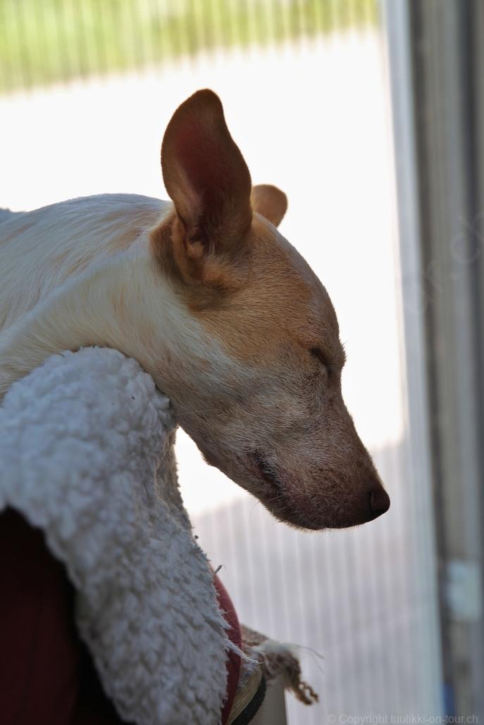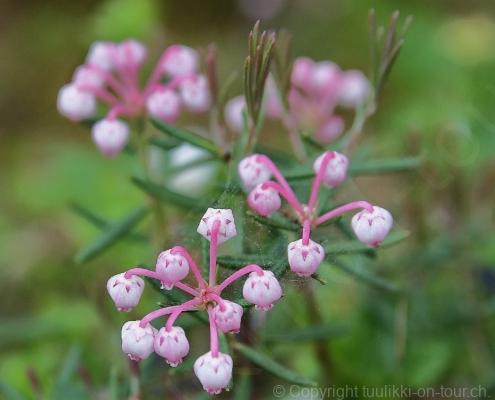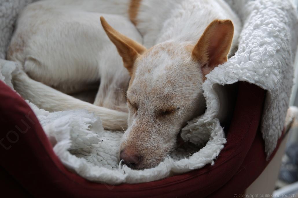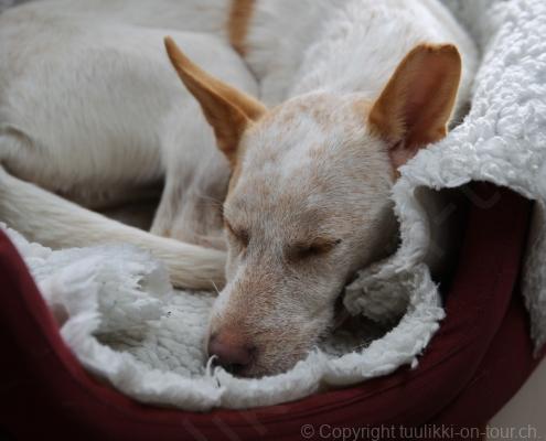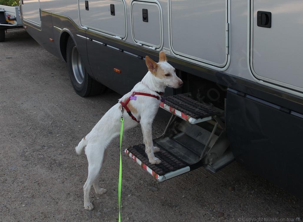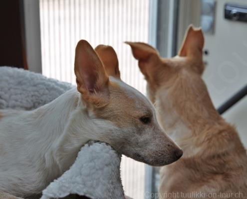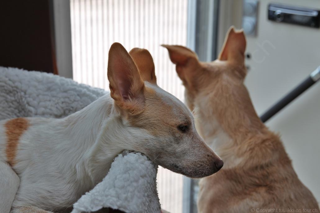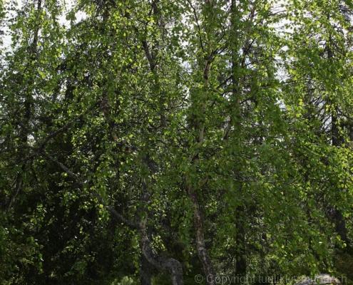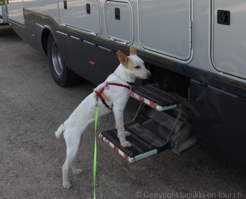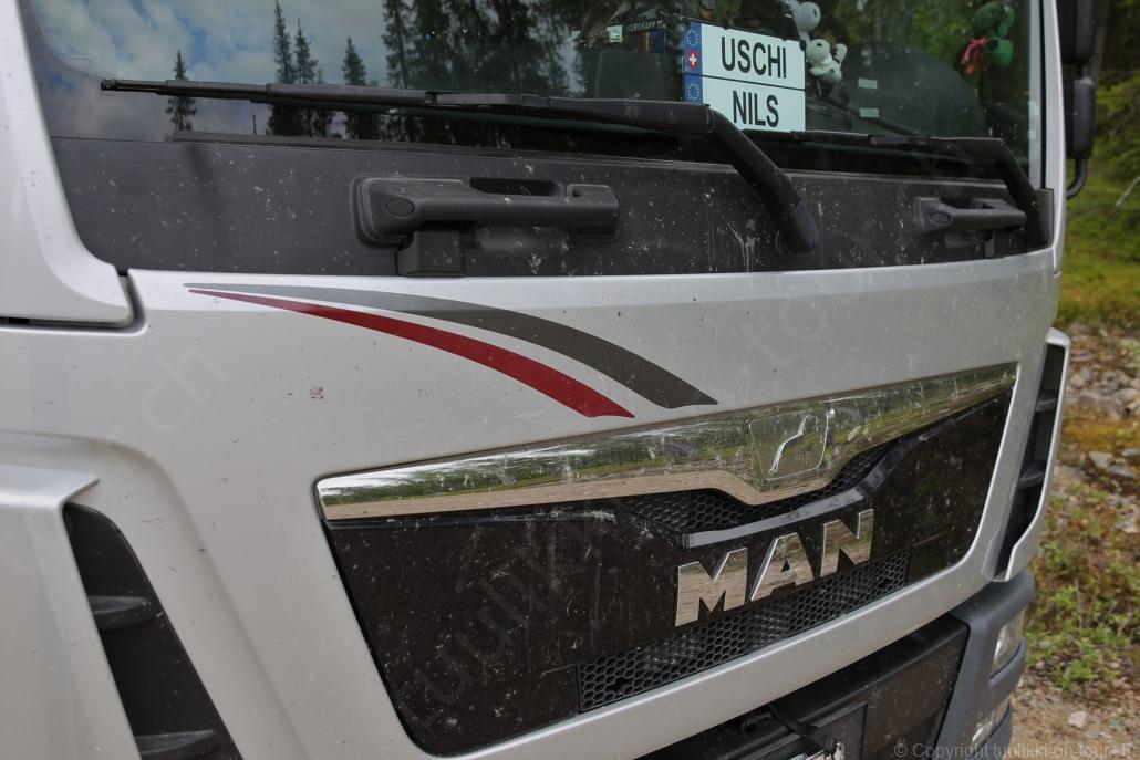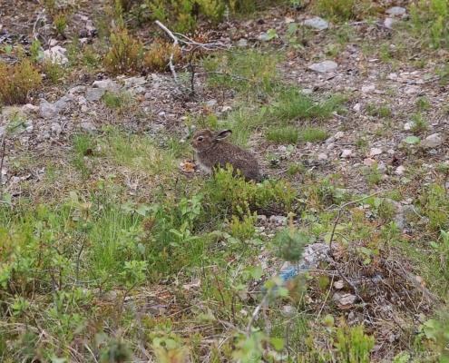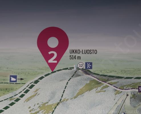 Heute wollen wir uns in Luosto umsehen, die ‘alten’ Orte besuchen und schauen, ob es uns immer noch so gut gefällt wie vor 2 Jahren. Dazu nimmt Nils den Kangoo vom Anhänger; er ist voller Staub von der Fahrt über die Naturstrassen und wenn wir die Fenster öffnen, ‘chroset’ es gewaltig. Jawohl, unser erster Eindruck ist sehr positiv; beim Morgenspaziergang begrüsst uns auch gleich ein weisses Rentier, das sich von unseren bellenden Hunden überhaupt nicht beeindrucken lässt; umso mehr beeindruckt davon sind unsere 3 Feuchtnasen. Beim Veterinär im nächstgrösseren Ort bestellen wir telefonisch das Spezialfutter und die Medis für Oxi, die wir gegen Ende Woche dort abholen und den 3 Hunden gleich die nächste ‘tapeworm’ Behandlung zukommen lassen können. Das heisst, dass wir hier in Luosto noch mind. 3-4 Tage rumhängen können; wie praktisch! Im kleinen K-Markt besorgen wir uns Mückenspray und im Café nebenan treffen wir die nette Verkäuferin von vor 2 Jahren und so fühlen wir uns gleich wieder heimisch. Beim Rundgang um den Ahvenlampi See beginnt es leicht zu regnen und die Mücken, die dieses Wetter lieben sind sehr präsent, aber wir ja jetzt gerüstet. Nebst einem Häschen begegnen uns drei Huskies und ihre Führerin; für Abwechslung ist also gesorgt! Die Natur hier ist grandios, dazu zählt auch das schnell wechselnde Wetter, von dem wir heute alles kurz abbekommen: Sonne-Wolken-Regen-Sonne-Wolken. Am Abend wandern wir zur Amethyst-Mine und sind ganz alleine auf diesem Trail unterwegs. Erst dort oben hat es Fat bike-Fahrer (wegen der dicken Pneus) und Wanderer mit grossen Rucksäcken. Ja klar, bei uns müsste man sich langsam beeilen, um vor dem Eindunkeln eine Unterkunft zu finden, hier oben in Lappland könnte man um diese Jahreszeit von der Helligkeit her eigentlich rund um die Uhr unterwegs sein.