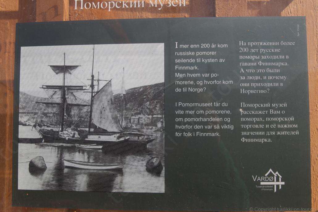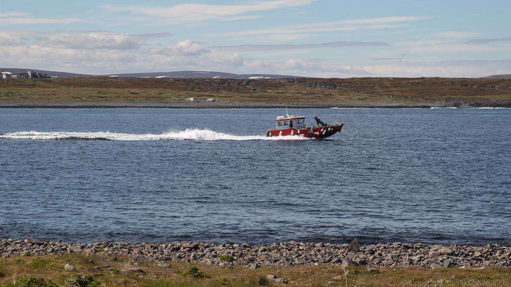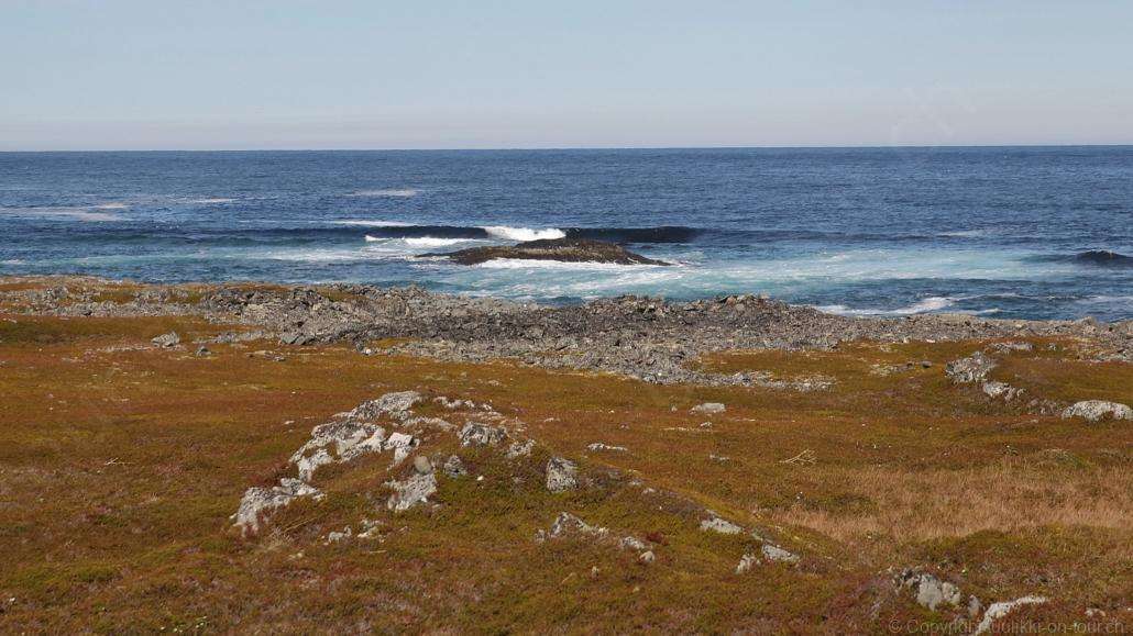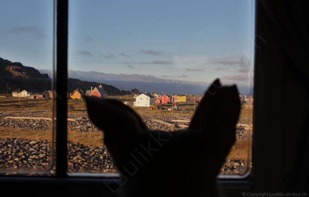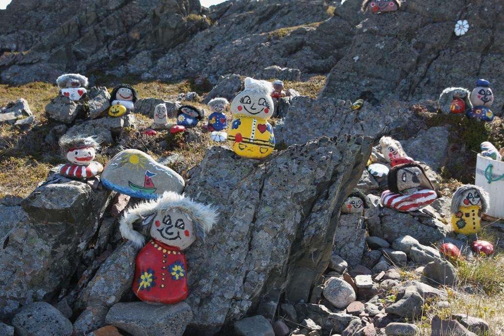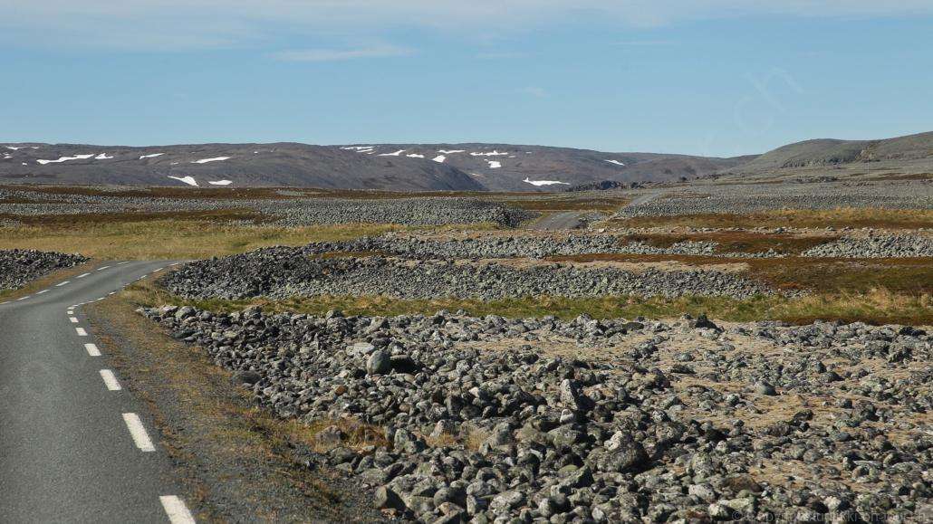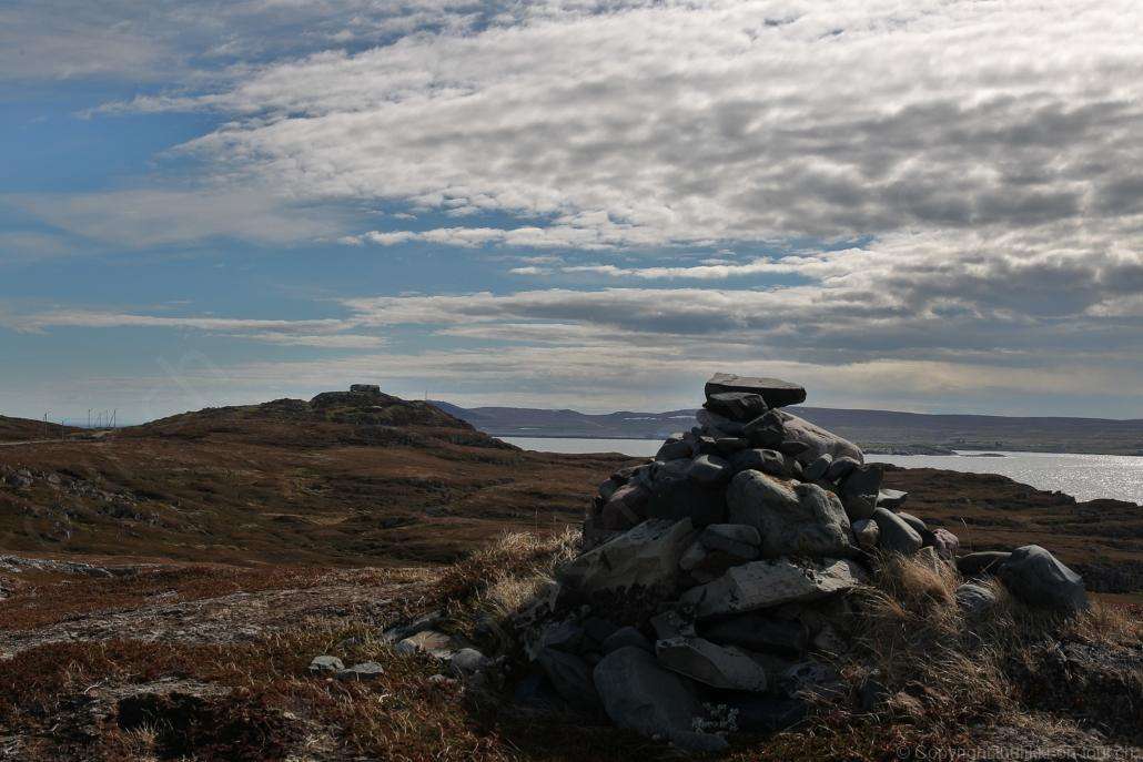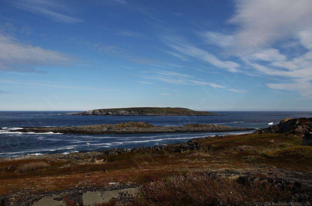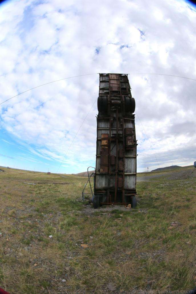 Eigentlich ist es ja hier so, dass der Tag nicht endet und die Nacht nicht beginnt (Mitternachtssonne: es ist wirklich 24 Stunden lang taghell und sonnig, denn die Sonne sinkt nicht unter den Horizont). Unser Tag (kurz vor oder nach 7 Uhr) beginnt also mit Sonnenschein pur und Frühstück bei offener Türe. Nichtsdestotrotz wollen wir heute zurück, d.h. den ersten Teil des Rückwegs, die abwechslungsreiche, einsame Märchenstrecke von Hamningberg bis Vardo mit vollen Sinnen geniessen: zackige dunkle Felsen, baumlose grüne Felder mit Schafen, weisse Gischt, die von der Barentsee an die Felsen geworfen wird und Sanddünen mit blauem Wasser und weissem Sandstrand, dazwischen ein schmales Strassenband. Nach einer Stunde erreichen wir den Festland-Teil von Vardo. Dort stellen wir unser WoMo ab und wechseln auf den Kangoo. Zuerst schauen wir uns den Flughafen an, ein neueres, langgezogenes Gebäude mit Kontrollturm und Piste in Richtung Fjord. Es hat einige geparkte Autos, aber sonst ist keinerlei Bewegung auszumachen. Also spazieren wir mit den Hunden die Umgebung ab, die leider noch mit Aushub, Bauschutt und Abfall verunstaltet ist, in dem sich Schafe nach Fressbarem umsehen. Und wie es der Zufall so will, ist eine Propellermaschine im Anflug … und startet nach höchstens einer Viertelstunde wieder: Danach ist das Flughafen-Gebäude bis am Abend geschlossen. Der Inselteil von Vardo ist weder über eine Brücke, noch per Fähre erreichbar. Ein 2,98 km langer, bis 88 m unter Meeresspiegel führender Tunnel (Ishavstunnel) verbindet das Festland mit der Insel Vardoya, wo auch die E75 endet, die in Kreta startet! Hier unter dem Eismeer durch sind wir östlicher als Istanbul, Kairo oder St.Petersburg! Die Temperaturen bewegen sich dank des warmen Golfstroms im Mittel von -5 bis +9°! Heute haben wir bei vollem Sonnenschein das Mittel erreicht! Am Auffälligsten hier auf der Insel sind wohl die ‘Kugeln’: während des Kalten Krieges unterhielt die NATO hier ein Frühwarnsystem und seit 1998 gibt es eine Radarstation, eine zweite ist im Bau und soll nächstes Jahr fertig werden. Im 17. Jahrhundert fanden in Vardo gegen 100 Hexenverbrennungen statt (Frauen + Männer); dazu wurde ein Mahnmal errichtet, entworfen vom Schweizer Peter Zumthor und der Französin Louise Bourgeois. Der östliche Teil der Insel ist überbaut mit farbigen Holzhäusern, in der Hafengegend brüten Möwen sehr fotogen in den Fensternischen. Der nördliche Teil dagegen ist baum- und menschenleer und nur über eine steinige, ausgefahrene Naturstrasse erreichbar, die zu einem Leuchtturm, Bunkeranlagen und einer spektakulären Holzinstallation mit Elementen eines Wikingerschiffes, eines Dinosauriers und eines Wals auf einen Fels gesetzt, führt. Der blaue Himmel mit den malerisch weissen aufziehenden Wolken und der Brandung an den Felsen unten: ein unvergessliches Szenario. Wir lassen es auf uns wirken und schiessen unzählige Fotos. Dann, zusammen mit der Bewölkung geht’s zurück zum WoMo, wo wir den heutigen erlebnisreichen Tag in Worte fassen, die besten Aufnahmen auswählen und auf unsere Reise-Homepage hochladen wollen. Dazwischen aber kommt wieder die Sonne hervor und so geht’s nochmals auf eine Spazierrunde über Wiesen mit Schafen, zum Festland-Hafen, an den Sandstrand. Dann gibt’s Nachtessen … wieder ist uns die Zeit davongelaufen, weil die Sonne noch so hoch am Himmel steht, ist’s unbemerkt schon 20:30 Uhr geworden und der tuulikki-Beitrag noch nicht bereit. Aber, wir lassen uns nur ein ganz klein wenig davon stressen; den Abend toppen wir mit einem zartschmelzenden Eis.