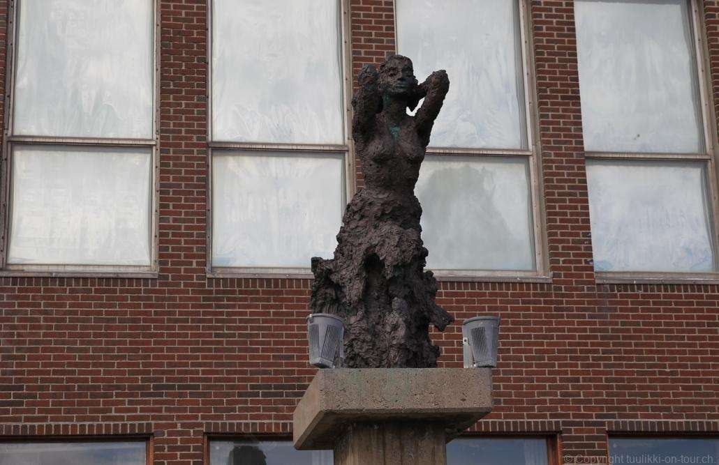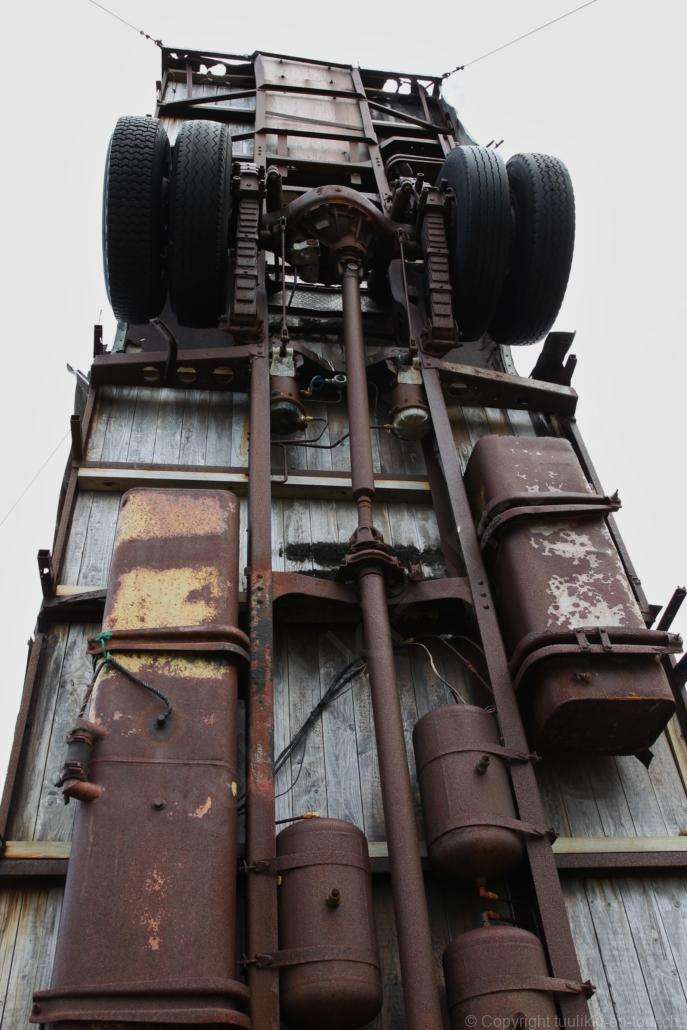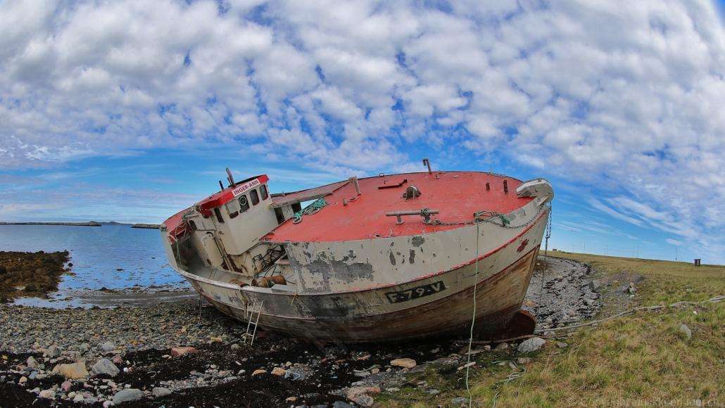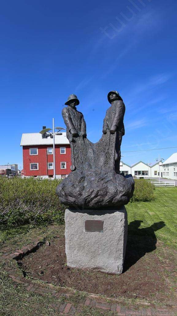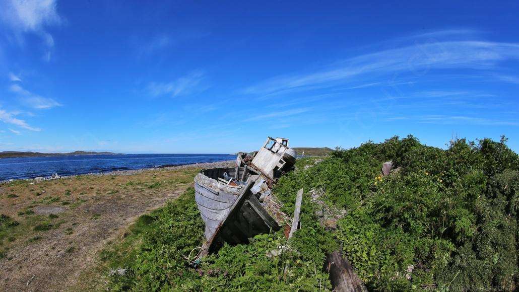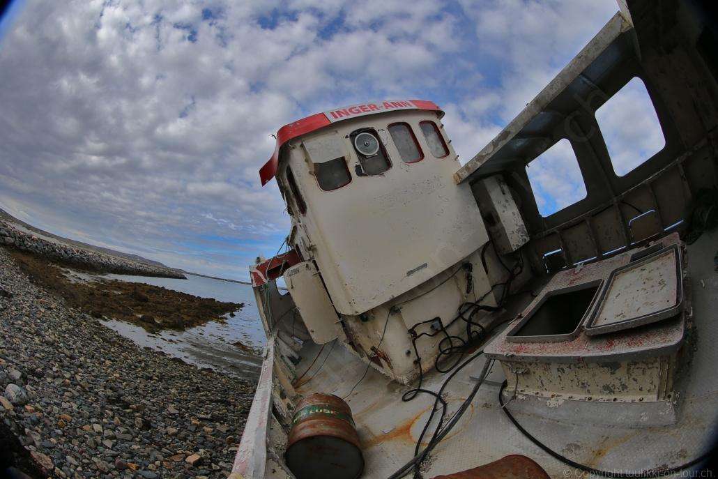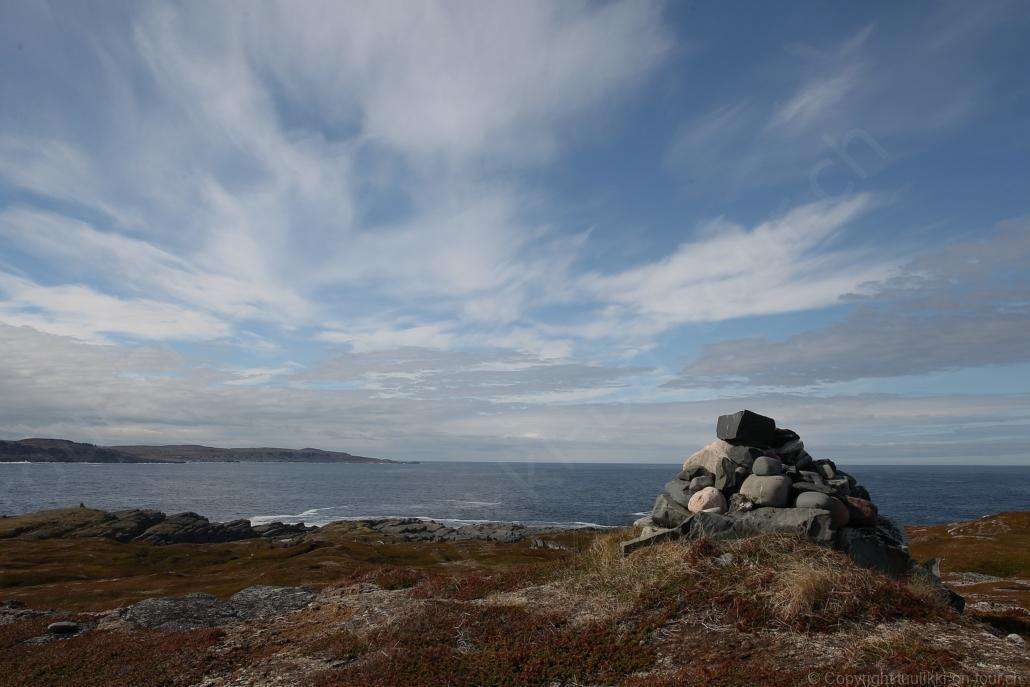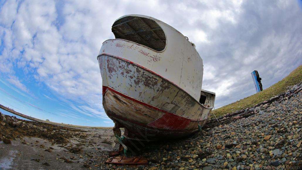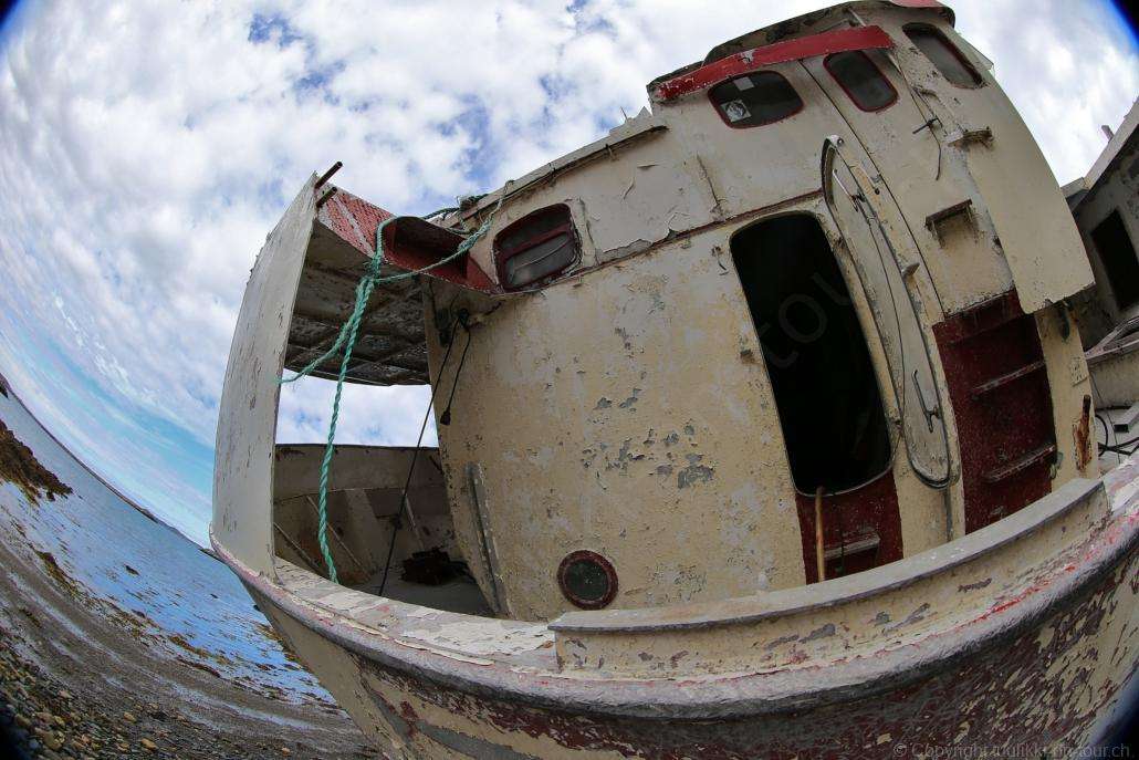 Eigentlich ist es ja hier so, dass der Tag nicht endet und die Nacht nicht beginnt (Mitternachtssonne: es ist wirklich 24 Stunden lang taghell und sonnig, denn die Sonne sinkt nicht unter den Horizont). Unser Tag (kurz vor oder nach 7 Uhr) beginnt also mit Sonnenschein pur und Frühstück bei offener Türe. Nichtsdestotrotz wollen wir heute zurück, d.h. den ersten Teil des Rückwegs, die abwechslungsreiche, einsame Märchenstrecke von Hamningberg bis Vardo mit vollen Sinnen geniessen: zackige dunkle Felsen, baumlose grüne Felder mit Schafen, weisse Gischt, die von der Barentsee an die Felsen geworfen wird und Sanddünen mit blauem Wasser und weissem Sandstrand, dazwischen ein schmales Strassenband. Nach einer Stunde erreichen wir den Festland-Teil von Vardo. Dort stellen wir unser WoMo ab und wechseln auf den Kangoo. Zuerst schauen wir uns den Flughafen an, ein neueres, langgezogenes Gebäude mit Kontrollturm und Piste in Richtung Fjord. Es hat einige geparkte Autos, aber sonst ist keinerlei Bewegung auszumachen. Also spazieren wir mit den Hunden die Umgebung ab, die leider noch mit Aushub, Bauschutt und Abfall verunstaltet ist, in dem sich Schafe nach Fressbarem umsehen. Und wie es der Zufall so will, ist eine Propellermaschine im Anflug … und startet nach höchstens einer Viertelstunde wieder: Danach ist das Flughafen-Gebäude bis am Abend geschlossen. Der Inselteil von Vardo ist weder über eine Brücke, noch per Fähre erreichbar. Ein 2,98 km langer, bis 88 m unter Meeresspiegel führender Tunnel (Ishavstunnel) verbindet das Festland mit der Insel Vardoya, wo auch die E75 endet, die in Kreta startet! Hier unter dem Eismeer durch sind wir östlicher als Istanbul, Kairo oder St.Petersburg! Die Temperaturen bewegen sich dank des warmen Golfstroms im Mittel von -5 bis +9°! Heute haben wir bei vollem Sonnenschein das Mittel erreicht! Am Auffälligsten hier auf der Insel sind wohl die ‘Kugeln’: während des Kalten Krieges unterhielt die NATO hier ein Frühwarnsystem und seit 1998 gibt es eine Radarstation, eine zweite ist im Bau und soll nächstes Jahr fertig werden. Im 17. Jahrhundert fanden in Vardo gegen 100 Hexenverbrennungen statt (Frauen + Männer); dazu wurde ein Mahnmal errichtet, entworfen vom Schweizer Peter Zumthor und der Französin Louise Bourgeois. Der östliche Teil der Insel ist überbaut mit farbigen Holzhäusern, in der Hafengegend brüten Möwen sehr fotogen in den Fensternischen. Der nördliche Teil dagegen ist baum- und menschenleer und nur über eine steinige, ausgefahrene Naturstrasse erreichbar, die zu einem Leuchtturm, Bunkeranlagen und einer spektakulären Holzinstallation mit Elementen eines Wikingerschiffes, eines Dinosauriers und eines Wals auf einen Fels gesetzt, führt. Der blaue Himmel mit den malerisch weissen aufziehenden Wolken und der Brandung an den Felsen unten: ein unvergessliches Szenario. Wir lassen es auf uns wirken und schiessen unzählige Fotos. Dann, zusammen mit der Bewölkung geht’s zurück zum WoMo, wo wir den heutigen erlebnisreichen Tag in Worte fassen, die besten Aufnahmen auswählen und auf unsere Reise-Homepage hochladen wollen. Dazwischen aber kommt wieder die Sonne hervor und so geht’s nochmals auf eine Spazierrunde über Wiesen mit Schafen, zum Festland-Hafen, an den Sandstrand. Dann gibt’s Nachtessen … wieder ist uns die Zeit davongelaufen, weil die Sonne noch so hoch am Himmel steht, ist’s unbemerkt schon 20:30 Uhr geworden und der tuulikki-Beitrag noch nicht bereit. Aber, wir lassen uns nur ein ganz klein wenig davon stressen; den Abend toppen wir mit einem zartschmelzenden Eis.