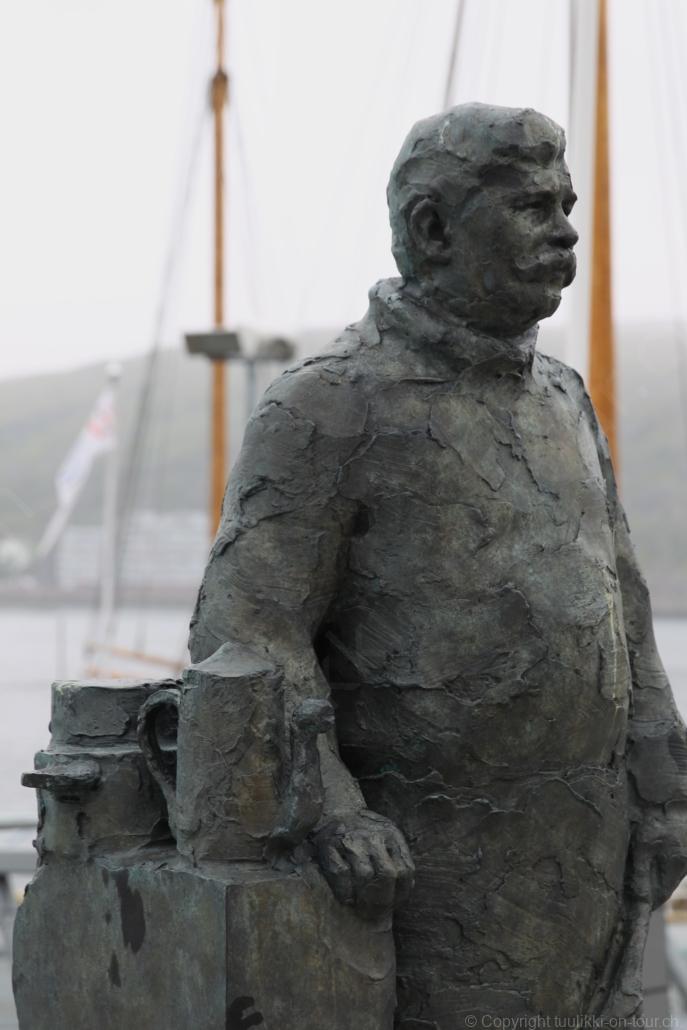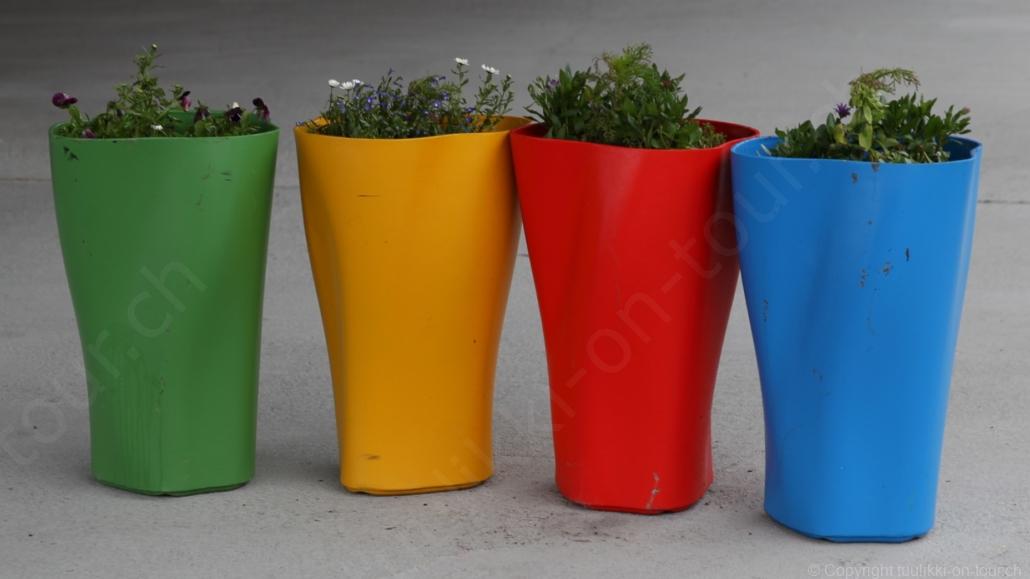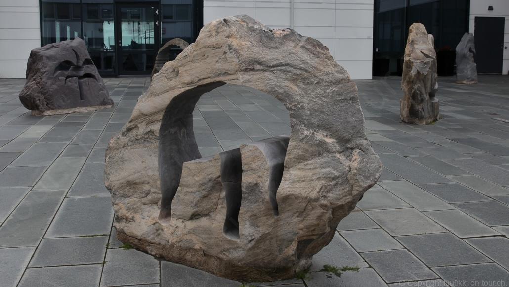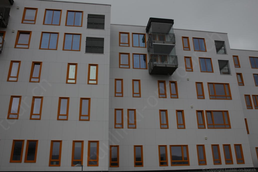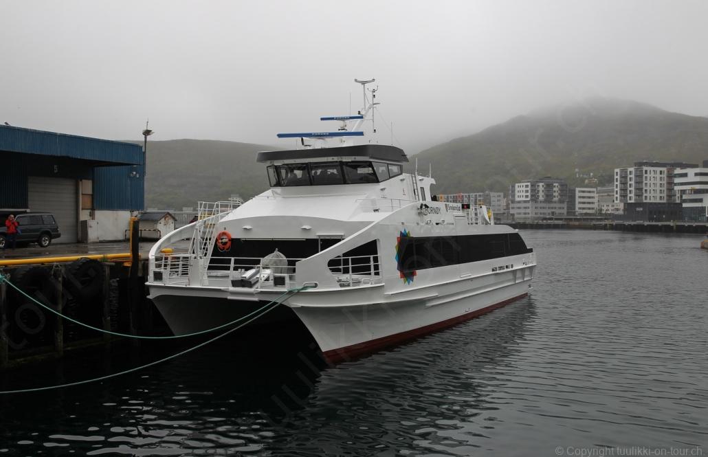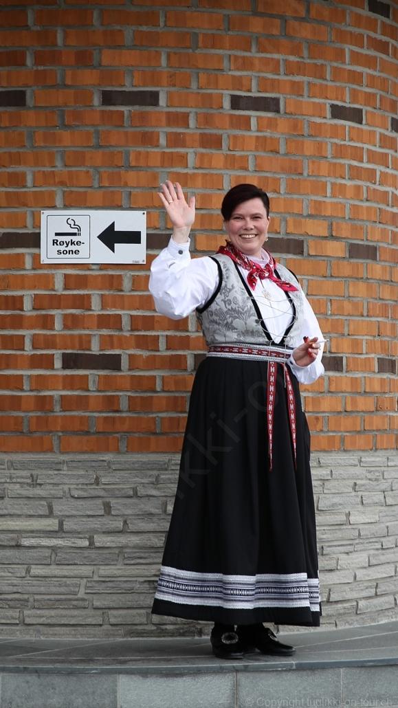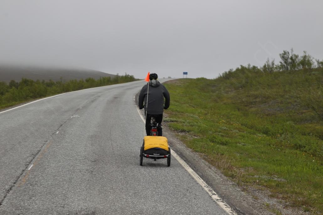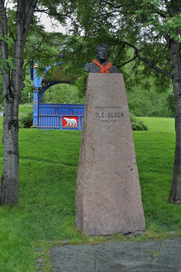 Heute ist ein Putz- und Einkaufstag, was immer viel Zeit in Anspruch nimmt. Wir fahren also von Forsol zurück nach Hammerfest und finden dort überraschend im Europris überzeugende Angebote für die Hunde. Pipa hat sich während einer gewissen Zeit den Spass daraus gemacht, Luso an der Leine zu führen. Das ging so, dass sie sich in die Leine von Luso verbiss und ihn daran herumzerrte. Trotz jeweiliger Intervention hat sie es geschafft, die Leine tüchtig zu schwächen; und hier haben wir diese nun ersetzt, zusätzlich gleich neue ‚Gstältli‘ angepasst, kurz eine ganze Garderobe mal drei erstanden! Danach ist schon wieder Zeit für den Mittagsspaziergang, den wir beim Flugplatz, ums Seelein herum und im Neubauquartier vorbei machen. Die sich kurz etwas angehobene Wolken-Nebel-Decke senkt sich wieder und man hat manchmal fast das Gefühl, der Himmel parkiere demnächst auf dem Kopf. Am Quai, beim WoMo-Platz stellen wir unser Gefährt dann ab, lassen den Hunden ihren Mittagsschlaf und machen uns zu Fuss durch das Städtchen. Für die Abfahrt der Hurtigruten sind wir eine Stunde zu spät, dafür können wir einen weissen Belugawal beobachten, der ganz entspannt im Hafenbecken schwimmt und sich offenbar dem Publikum präsentiert. Hin und her, mal auf dem Rücken, mal seitwärts, dann kommt er an die Oberfläche und öffnet sein Luftloch, um gleich danach elegant mit nur einer kurzen Schwanzflossen-Bewegung wieder zu tauchen. Er ist seit zwei Monaten Gast hier und wird von Fachleuten gefüttert, wieso er auch schon einen Namen erhalten hat: Hvaldimir. Über ihn wurde schon in den Nachrichten berichtet und vermutet, es sei ein Spionagewal und stamme von der russischen Kolahalbinsel. In der Stadt selbst scheint es nicht gut zu laufen, es sind viele Geschäftslokale leer, viele Häuser sehr mitgenommen und ungepflegt; nur gerade in der Hafengegend, wo täglich 2x die Hurtigruten anlegen schaut es besser aus. Natürlich gehört das obligate Foto mit den Eisbären vor dem Rathaus zum Pflicht-Klick; obwohl sich die Stadt aktuell überlegt, sich von Eisbären- in Belugawal-Stadt umzubenennen. Es gibt für uns keinen Grund, länger zu bleiben, also fahren wir die 60 km bis Skaidi auf der ‚94‘ , dann auf die E6 zurück und beziehen kurz vor Olderfjord im Birkenwald ‚Stellung‘. Unter den Biken blühen kleinste gelbe Stiefmütterchen, und zwar grosse Parzellen voll, soooo schön!