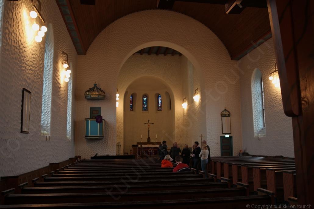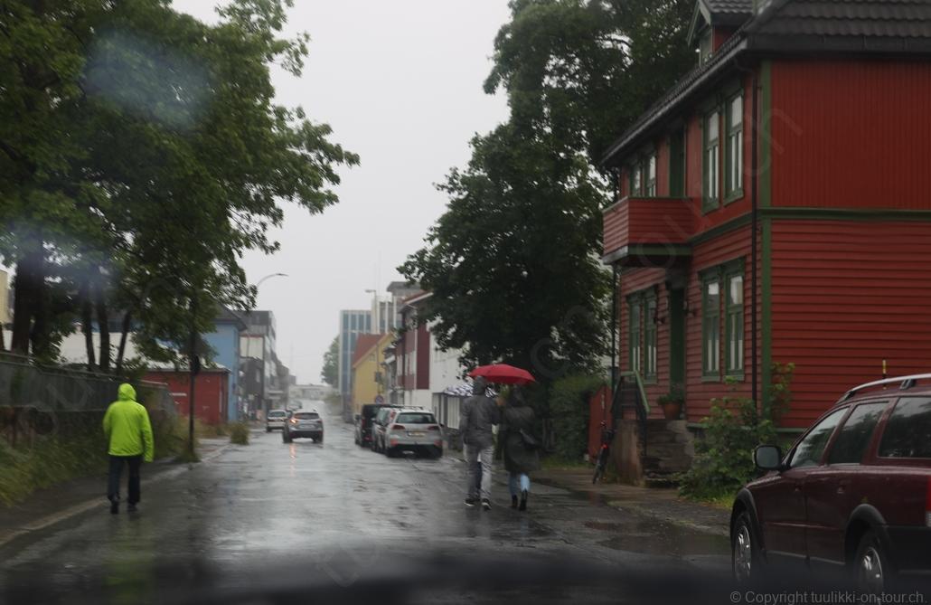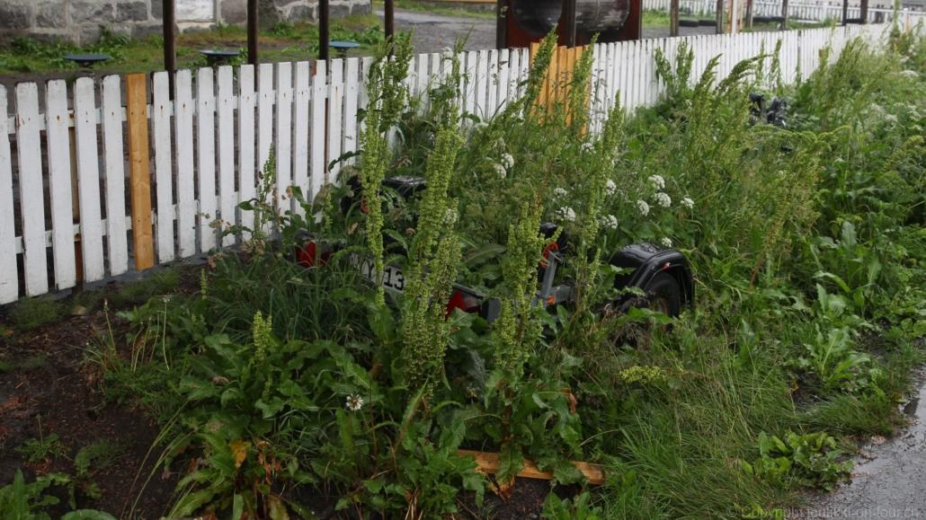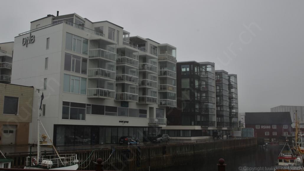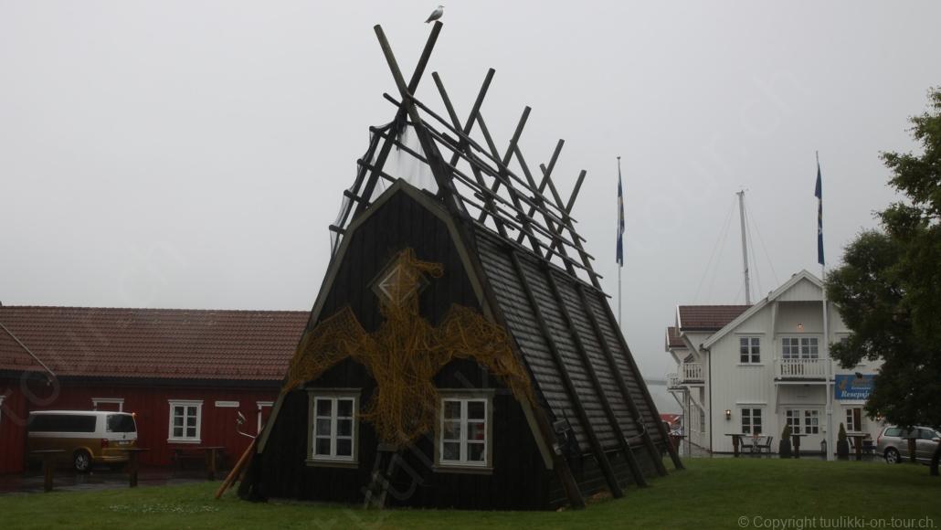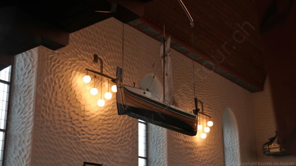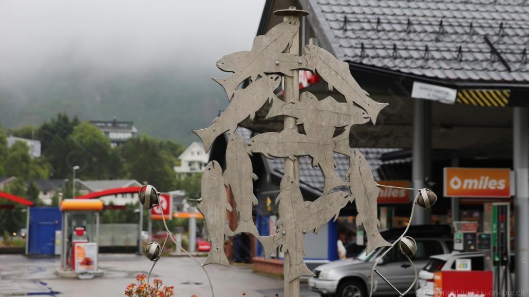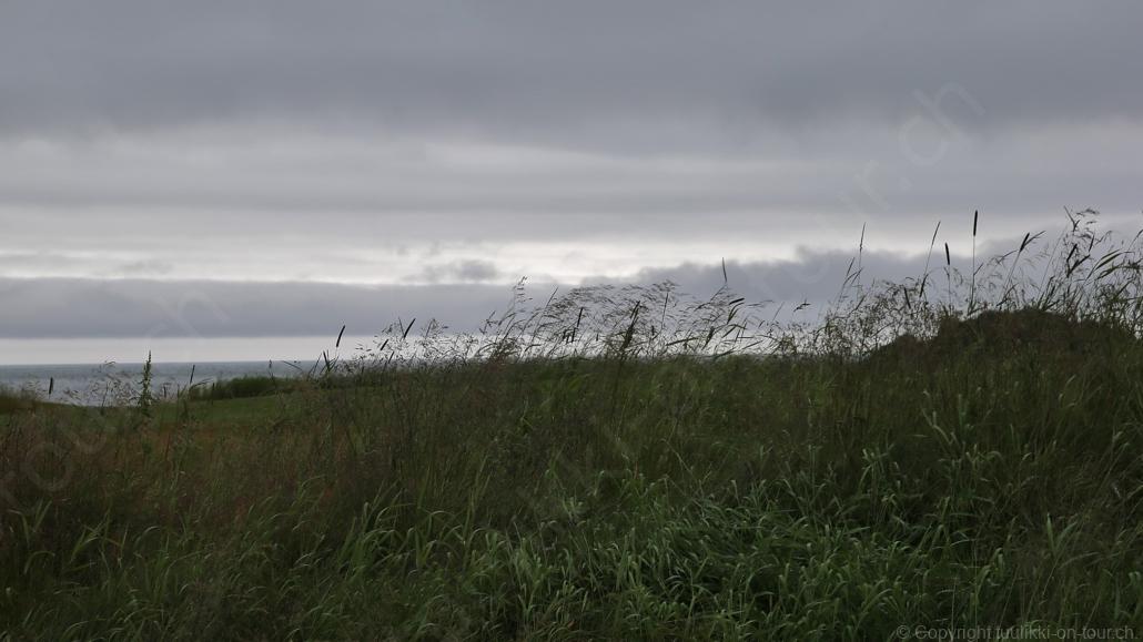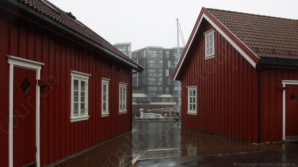 Trüb und nass mit tiefhängenden Wolken über den Bergketten und um einiges kühler (ca. 14°C) beginnt der heutige Tag. Diese Temperatur geniessen wir geradezu, wenn wir bedenken, dass es in der Schweiz zur Zeit 34-37°C heiss ist! Hier ist es richtiges Schlaf- und Fress-Wetter und so entscheiden wir, unser Programm entsprechend zu gestalten. Wir lassen die Hunde im WoMo und schauen uns während den nächsten Stunden die beiden Orte Svolvær und Kabelvåg etwas genauer an. Svolvær’s Strassen sollen im Winter mit Skifahrern gefüllt sein, im Sommer – zumindest an Nicht-Regentagen – mit Touristen, die das farbenfrohe Stadtbild, das hier herrschende Licht und die zahlreichen Galerien und Museen schätzen. Heute morgen aber sind nur einige Hartgesottene auszumachen, die unter dem Regenschirm die Stadt zu entdecken suchen und solche, die in einen Laden reinspazieren und umgezogen, in einheitliches Ölzeugs gekleidet wieder rauskommen um in einem Boot Platz zu nehmen. Ich kann mir nicht vorstellen, dass die bei dieser Seeadler Tour viel sehen werden. Auch die ca. 3000 Fischer, die in der Hauptfangzeit bis zu 50‘000 Tonnen Kabeljau fangen, können wir nicht sehen (aber die Hauptfangzeit von Januar bis April ist ja vorbei). Wir sind schon pflotschnass, als wir zum ältesten Fischerdorf der Lofoten, das auch einmal das grösste war, in Kabelvåg unsere Besichtigung weiterführen. Die umliegenden Inseln, die steil aufragenden Berge und schöne Strände sowie geschützte Buchten sind üblicherweise die perfekte Kulisse für Fotos. Heute ist davon aber nicht viel zu sehen, wir konzentrieren uns auf die malerischen und kulinarischen Seiten im Ort. Hier hat es nämlich eine Bäckerei, die frisches, knuspriges Brot aller Arten und vegane Spezialitäten (aus D importiert) anbietet und offensichtlich damit Erfolg hat, ist doch das angegliederte Café gut besucht. Die Hunde kommen gähnend und sich streckend auf ihren Betten, als wir die WoMo-Türe öffnen und scheinen uns sagen zu wollen „was, ihr seid schon zurück“. Gewisse innere Widerstände müssen sie sichtlich überwinden, um in ihre ‚Gstältli‘ zu schlüpfen und ins nasse Wetter raus zu hüpfen. Also lassen wir sie nach dem Mittags-Ausgang wieder schlafen, während wir zwei uns entschliessen, eine Nachmittagsrunde auf die Insel Gimsøya anzuhängen. 35 km später zweigen wir von der E10 auf eine Kommunalstrasse ab, die um die Insel führt und schöne Ausblicke auf die Inselwelt bietet. Letztere fällt ziemlich aus dem landschaftlichen Rahmen der ansonsten bergigen und zerklüfteten Lofoten. Es präsentiert sich eine flache, weite, offene Landschaft. Etwa zwei Drittel von Gimsøya sind mit Torfmooren bedeckt, welche in den vergangenen Zeiten – der Torfabbau wurde im grossen Stil betrieben – den einzigen Brennstoff auf den Lofoten bot. Heute steht die ganze Insel unter Naturschutz … ein Golfplatz wurde aber im nördlichsten Zipfel trotzdem angelegt. Die weisse Holzkirche von 1876 ist ein echter Hingucker; sie wurde quasi am Strand gebaut und bergseits mit Stahlstangen gesichert, um nicht vom Sturm fortgetragen zu werden. Um die Kirche herum liegt der Friedhof mit uralten, z.T. gusseisernen Grabplatten. Zwischenzeitlich sind Waschmaschine und Trockner gelaufen und wir freuen uns auf ein frisch angezogenes, frühlingshaft duftendes Bett. Zuvor aber – die Wolken haben sich ausgeregnet – lassen wir die Hunde nochmals raus und kochen dann einen Süsskartoffel-Kürbis-Cornatur Eintopf an einer Kokosnussmilch-Sauce.