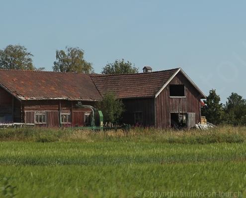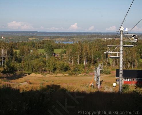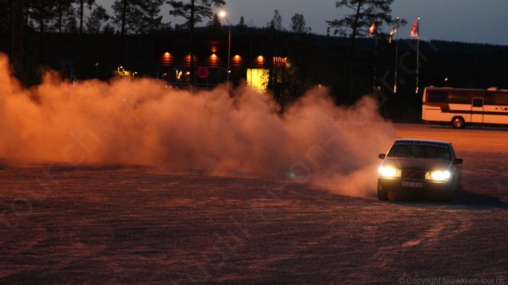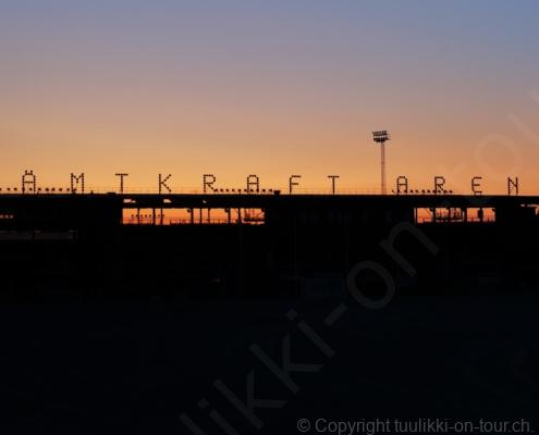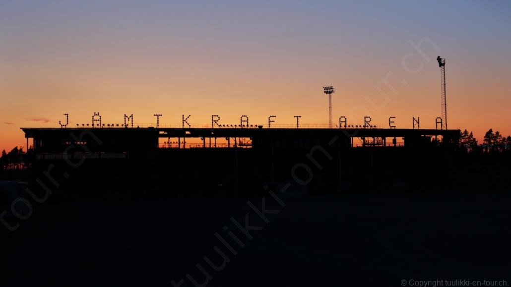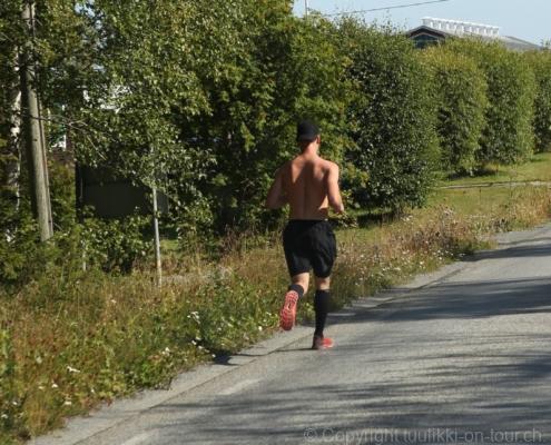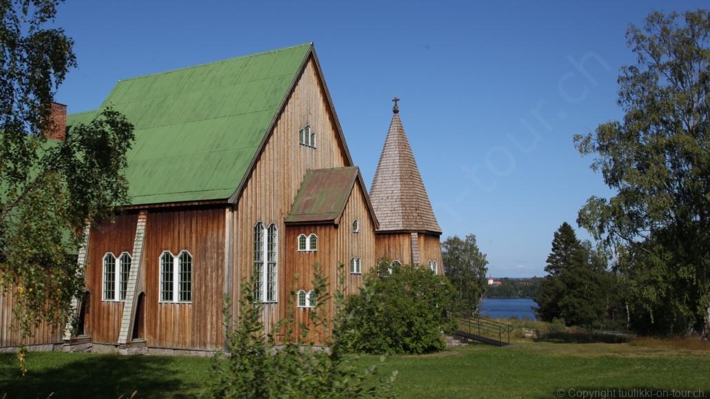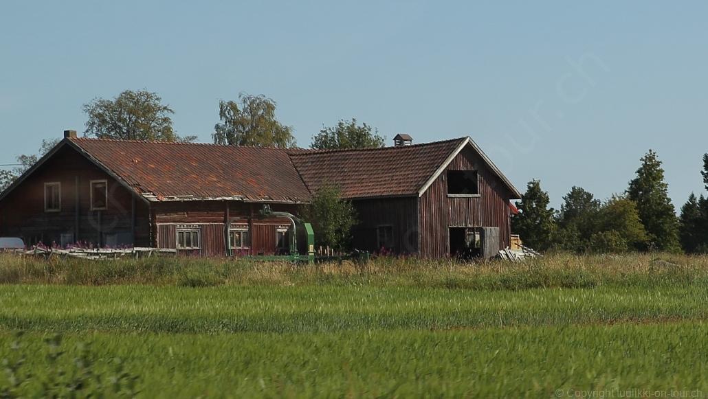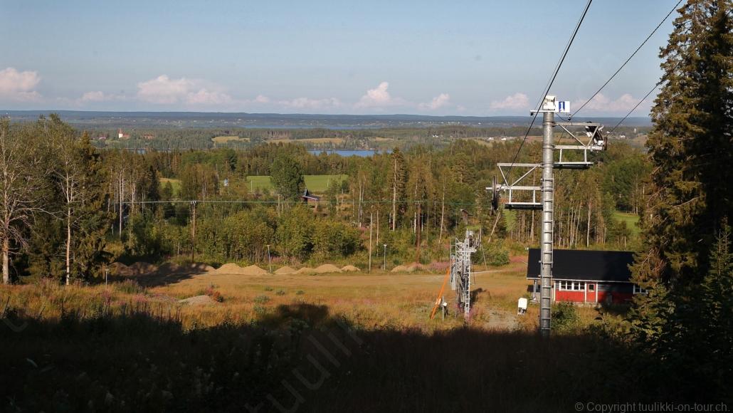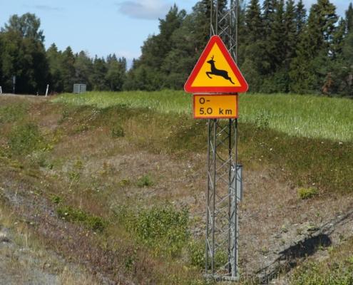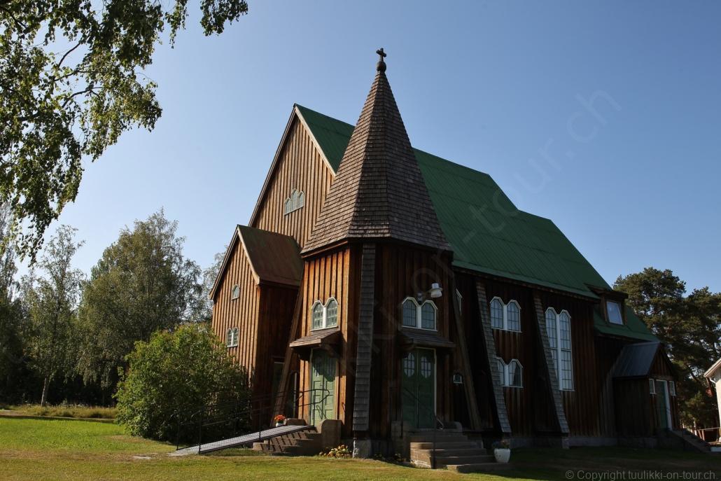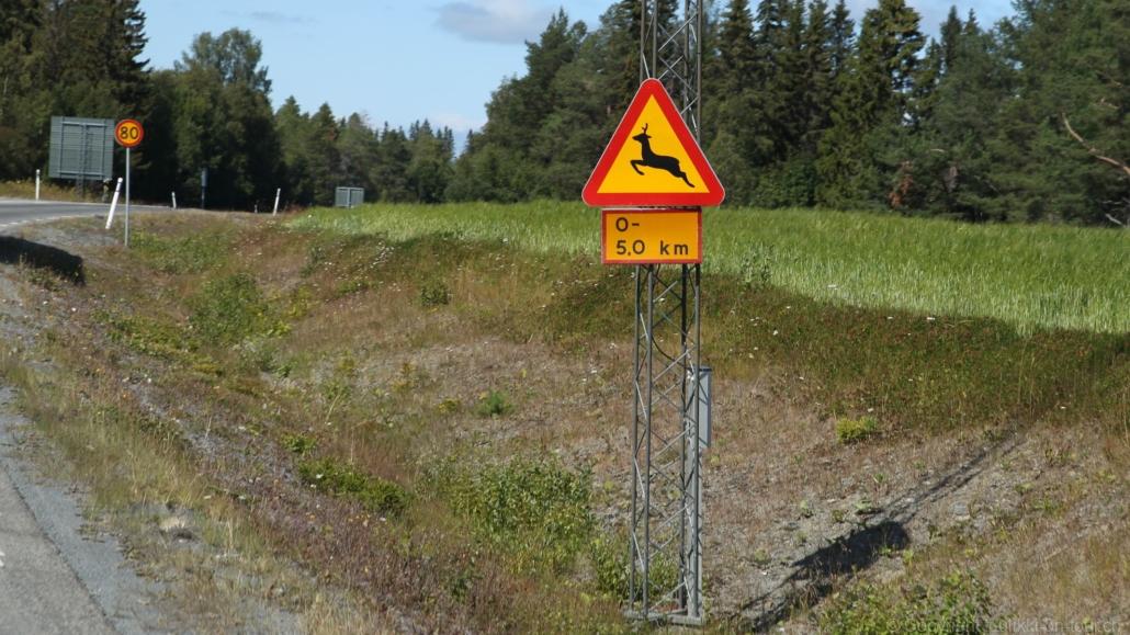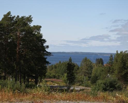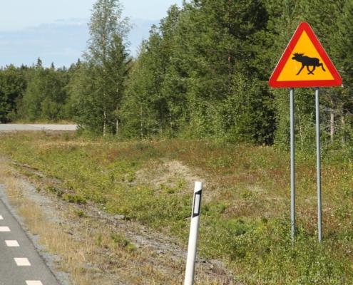 Noch vor Mitternacht wurden wir eingenebelt – nein, dieses Mal war es nicht ein Wetterphänomen, sondern der Staub der jungen Fahrer, die auf dem Kiesplatz die Beherrschung ihres Autos übten. Die Sonne weckt uns dann erst wieder um 7 Uhr, versteckt sich bald hinter Wolken und kommt dann für den Rest des Tages wieder hervor, sie schenkt uns einen wunderbar warmen Nachmittag. Den Vormittag verbrauchen wir eh für Tierarzt (die 28-Tage Wurmkur ist wieder nach für den Fall, dass wir nochmals nach Norwegen oder Finnland einreisen), Einkauf (im nördlichsten Lidl Schwedens) und Tankstopp. Im Biathlon-Wald drehen wir nochmals eine Runde bevor wir Östersund verlassen und dem 70 km langen See Stosjön entlang fahren. Östersund und die nähere Umgebung sind sehr grosszügig angelegt, es hat viele grosse leere Plätze und die Häuser etwas ausserhalb des Zentrums haben Umschwung. Wir wählen die Route über die Halbinsel Frösö, kommen am Flughafen vorbei und erhaschen immer wieder gute Blicke auf schöne Häuser und den blauen See. Landwirtschaft wird auf dem weiteren Weg gross geschrieben, Kühe weiden, Kartoffeln und Raps blühen, die Erdbeeren und Trübeli (Johannisbeeren) leuchten rot zwischen dem Kraut hervor und viele Felder sind voller weisser Grasballen, dazwischen sehen wir aber auch noch wie sogar in althergebrachter Manier geheut wird (über Holzgestecke). Nach kurzer Fahrt auf der E14 wechseln wir wieder auf eine niedriger klassierte Strasse (in der Karte als ‚scenic route‘ vermerkt), die dem Störsjön südwärts entlang führt – das Seeungeheuer, eine Seeschlange mit hundeähnlichem Schädel von etwa 6 m, das im See leben soll, haben wir nicht gesehen. Es herrscht fast kein Verkehr, so können Wald, Wiese, Orte, Kirchen und Wasser gut ‚begutachtet‘ werden. Entlang der Strasse wird wieder vor Rehen, Elchen, Schneemobilen und Kindern gewarnt – wir sehen und überholen nur einen Jogger im oben-ohne Tenu. In Kövra, am Südwest-Ufer entdecken wir eine spezielle Holzkirche mit einem Schindeln-bedecktem Turm und daneben einen Gedenkstein an den Pastor John Ongman der anfangs 20. Jahrhundert in Indien, Brasilien, Kongo, und sogar Japan missionierte. Zur Kirche selbst konnten wir leider nicht mehr herausfinden. Unser heutiger Nachtplatz ist vor einem Fussball-Feld und in der Nähe der Skistation. Nebenan gibt es eine Wiese, auf der Kraniche herumstolzieren. Den Apéro nehmen wir draussen in der Sonne ein und weil’s so schön und ruhig ist, ohne Mücken und Fliegen, bleiben die Hunde gleich liegen bis zum Abendspaziergang.