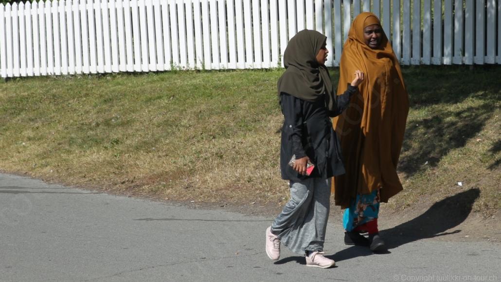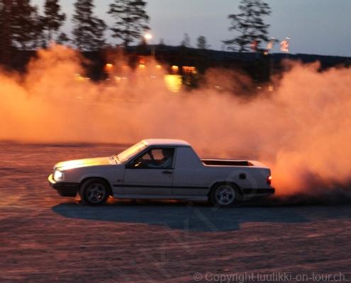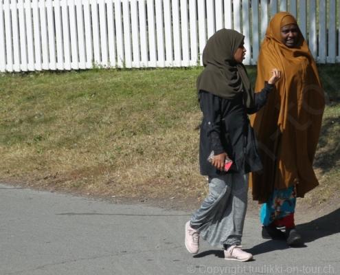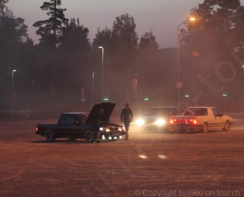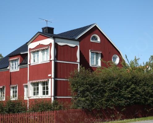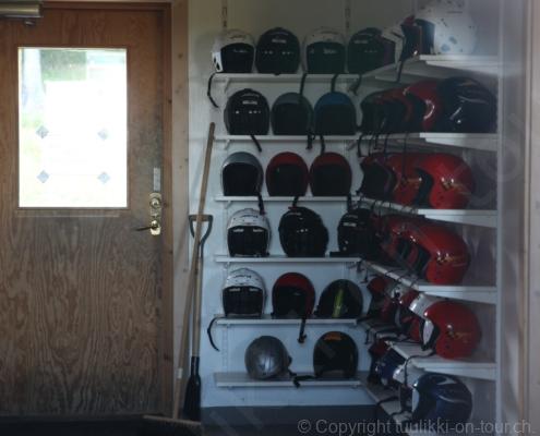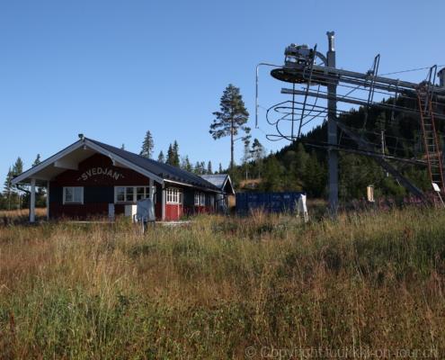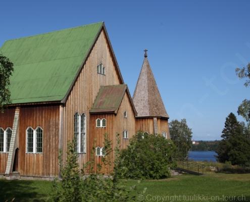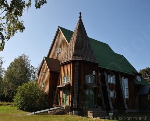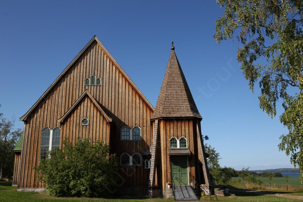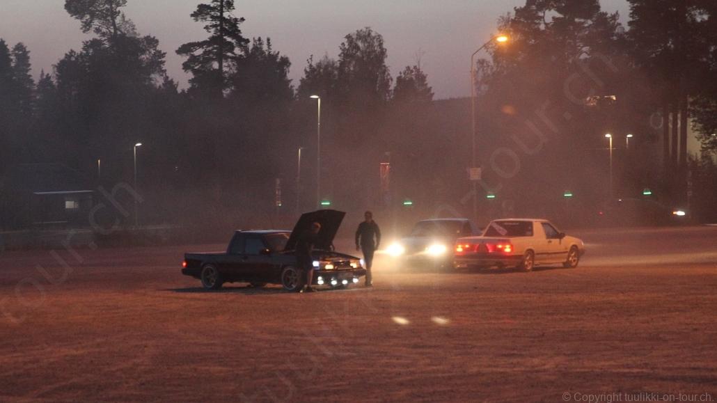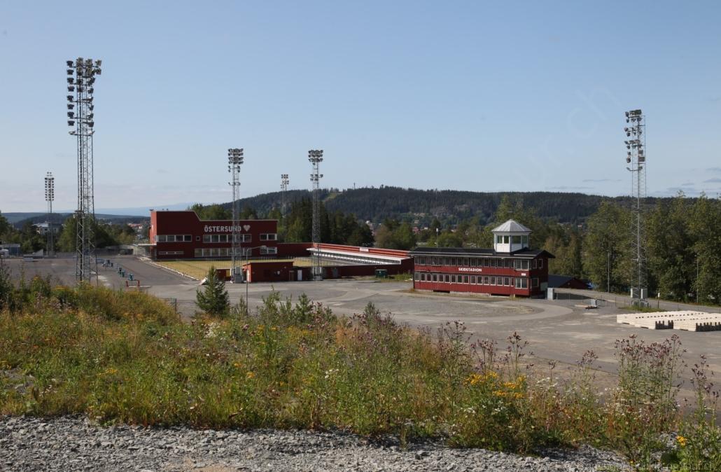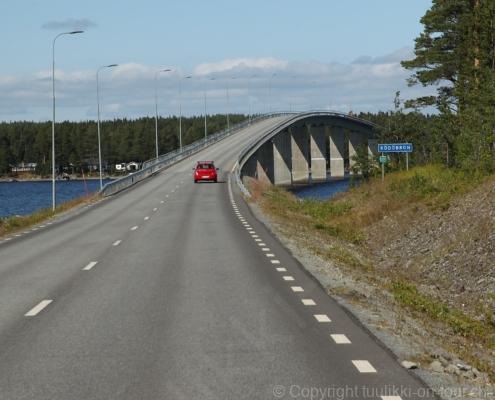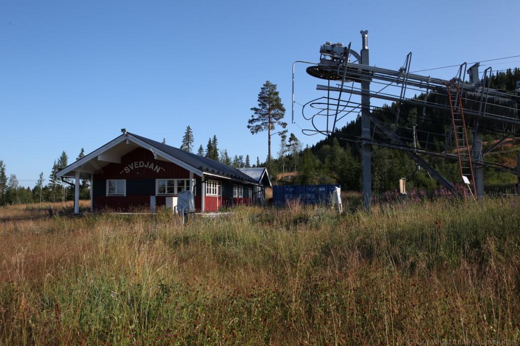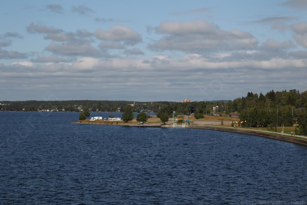 Noch vor Mitternacht wurden wir eingenebelt – nein, dieses Mal war es nicht ein Wetterphänomen, sondern der Staub der jungen Fahrer, die auf dem Kiesplatz die Beherrschung ihres Autos übten. Die Sonne weckt uns dann erst wieder um 7 Uhr, versteckt sich bald hinter Wolken und kommt dann für den Rest des Tages wieder hervor, sie schenkt uns einen wunderbar warmen Nachmittag. Den Vormittag verbrauchen wir eh für Tierarzt (die 28-Tage Wurmkur ist wieder nach für den Fall, dass wir nochmals nach Norwegen oder Finnland einreisen), Einkauf (im nördlichsten Lidl Schwedens) und Tankstopp. Im Biathlon-Wald drehen wir nochmals eine Runde bevor wir Östersund verlassen und dem 70 km langen See Stosjön entlang fahren. Östersund und die nähere Umgebung sind sehr grosszügig angelegt, es hat viele grosse leere Plätze und die Häuser etwas ausserhalb des Zentrums haben Umschwung. Wir wählen die Route über die Halbinsel Frösö, kommen am Flughafen vorbei und erhaschen immer wieder gute Blicke auf schöne Häuser und den blauen See. Landwirtschaft wird auf dem weiteren Weg gross geschrieben, Kühe weiden, Kartoffeln und Raps blühen, die Erdbeeren und Trübeli (Johannisbeeren) leuchten rot zwischen dem Kraut hervor und viele Felder sind voller weisser Grasballen, dazwischen sehen wir aber auch noch wie sogar in althergebrachter Manier geheut wird (über Holzgestecke). Nach kurzer Fahrt auf der E14 wechseln wir wieder auf eine niedriger klassierte Strasse (in der Karte als ‚scenic route‘ vermerkt), die dem Störsjön südwärts entlang führt – das Seeungeheuer, eine Seeschlange mit hundeähnlichem Schädel von etwa 6 m, das im See leben soll, haben wir nicht gesehen. Es herrscht fast kein Verkehr, so können Wald, Wiese, Orte, Kirchen und Wasser gut ‚begutachtet‘ werden. Entlang der Strasse wird wieder vor Rehen, Elchen, Schneemobilen und Kindern gewarnt – wir sehen und überholen nur einen Jogger im oben-ohne Tenu. In Kövra, am Südwest-Ufer entdecken wir eine spezielle Holzkirche mit einem Schindeln-bedecktem Turm und daneben einen Gedenkstein an den Pastor John Ongman der anfangs 20. Jahrhundert in Indien, Brasilien, Kongo, und sogar Japan missionierte. Zur Kirche selbst konnten wir leider nicht mehr herausfinden. Unser heutiger Nachtplatz ist vor einem Fussball-Feld und in der Nähe der Skistation. Nebenan gibt es eine Wiese, auf der Kraniche herumstolzieren. Den Apéro nehmen wir draussen in der Sonne ein und weil’s so schön und ruhig ist, ohne Mücken und Fliegen, bleiben die Hunde gleich liegen bis zum Abendspaziergang.