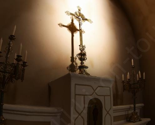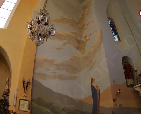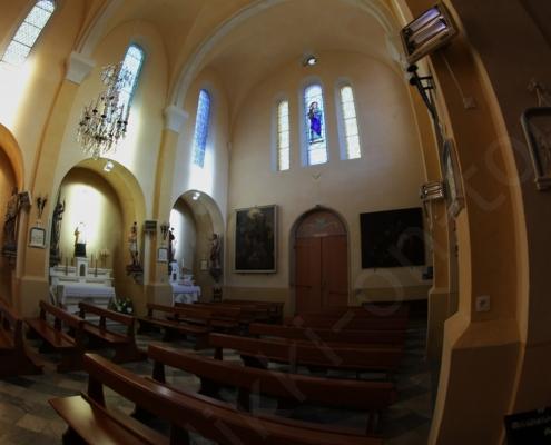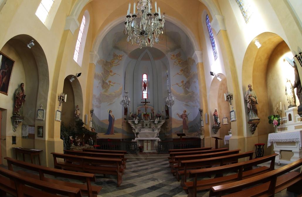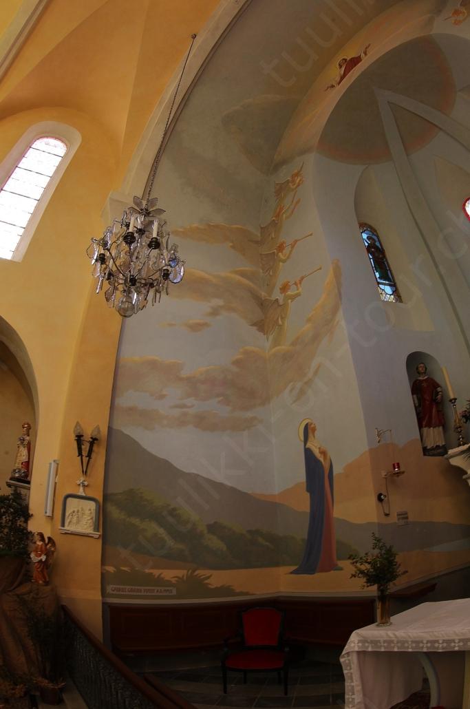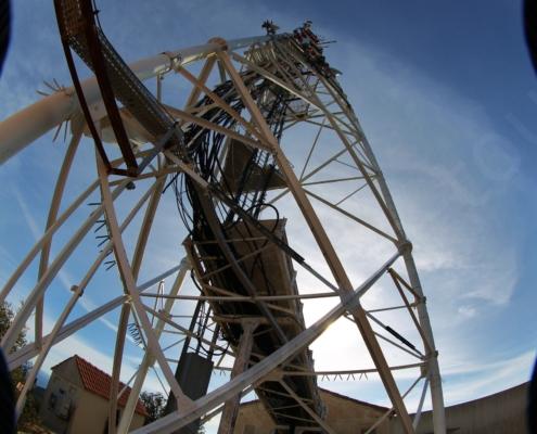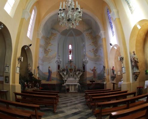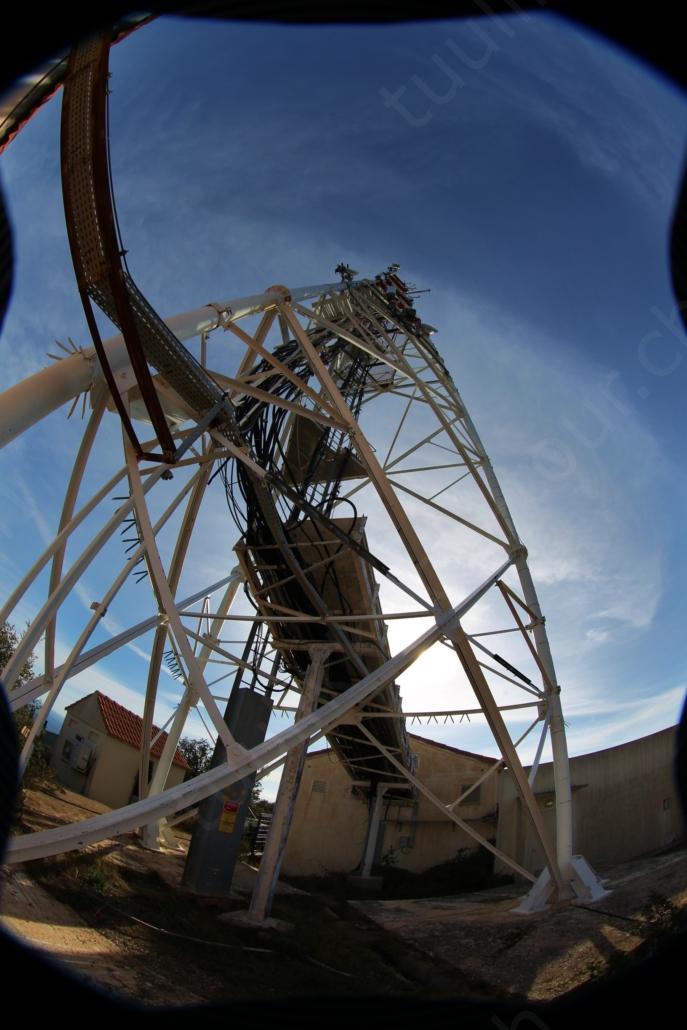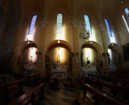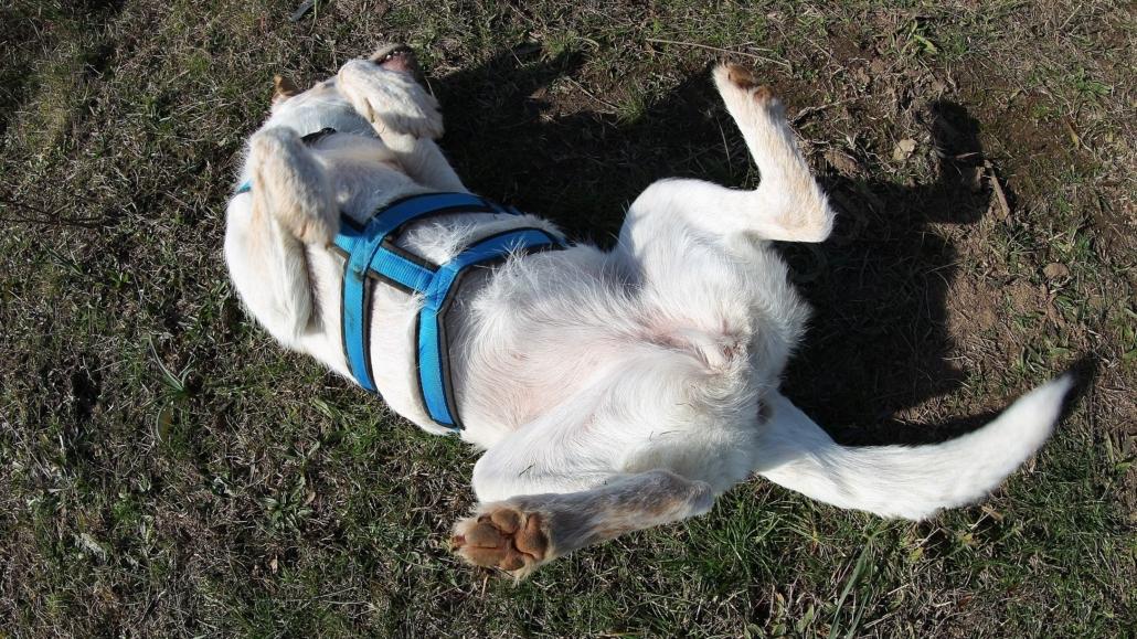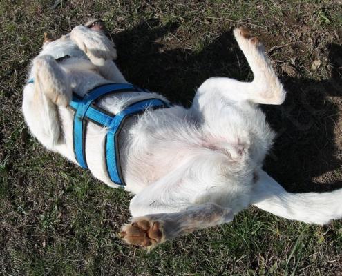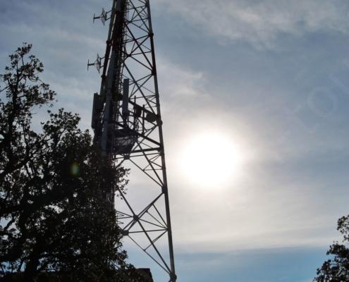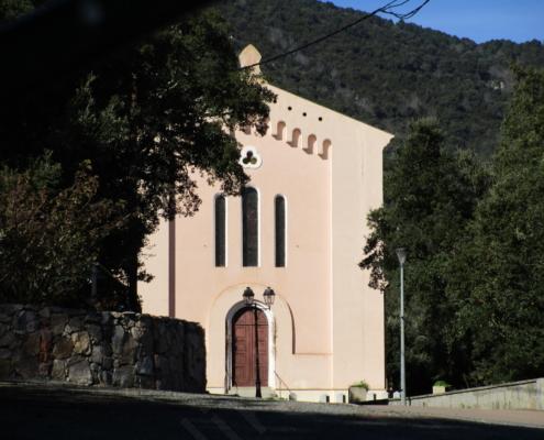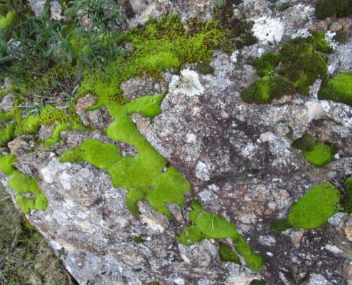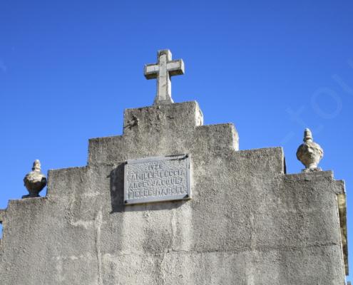 Wir besuchen den Friedhof und die Dorf-Kirche von Conca, die markant, mitten ‘im Weg’ steht, so dass sich die Strasse hier gabelt. Dann fahren wir zwischen den eng beieinanderstehenden Häusern durch. Der kurvigen Hauptstrasse folgend, zeigen sich einige durch die Macchia führende Seitenwege, die sich als Unterhalts-Trassees zu den im Dickicht thronenden Strommasten entpuppen. Wir stellen den Idefix in eine Ecke und folgen einem solchen Weg mitten durch die Macchia. Es ist warm, einsam und still, nur das Summen der Insekten und ab und zu ein Vogel ist zu hören. Diese unsagbar herrliche Ungestörtheit und Ruhe wird nur durch das eigene Schrittgeräusch beeinträchtigt. Entlang des Weges duftet es schon ansatzweise nach Frühling und blühenden Gebüschen. Tatsächlich sind auch die ersten Lavendelblüten geöffnet. Zahlreiche leere Patronenhülsen liegen verstreut herum, vermutlich von der Jagd auf die kleinen, scheuen korsischen Wildschweine (U cignale), die sich von Kastanien, Eicheln und Trüffeln ernähren. Links und rechts schnüffelnd folgen uns die Hunde bis zu einem Umsetzer auf dem äussersten Hügel gegen das Meer hin. Eine super Weitsicht wird von hier geboten. Zwar ist es leicht dunstig aber die Aussicht vom vordersten Umsetzer ‘aria puzzosa’ aus bis zu den Schneebergen resp. hinunter zu dem unglaublichen Blau der Meeresgestaden ist trotzdem fantastisch.