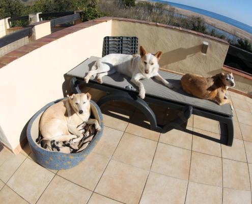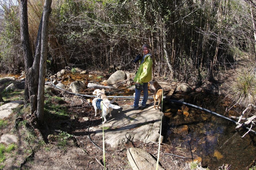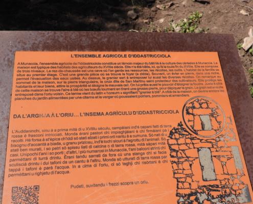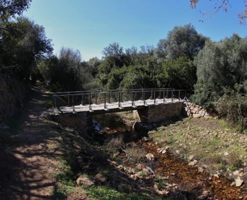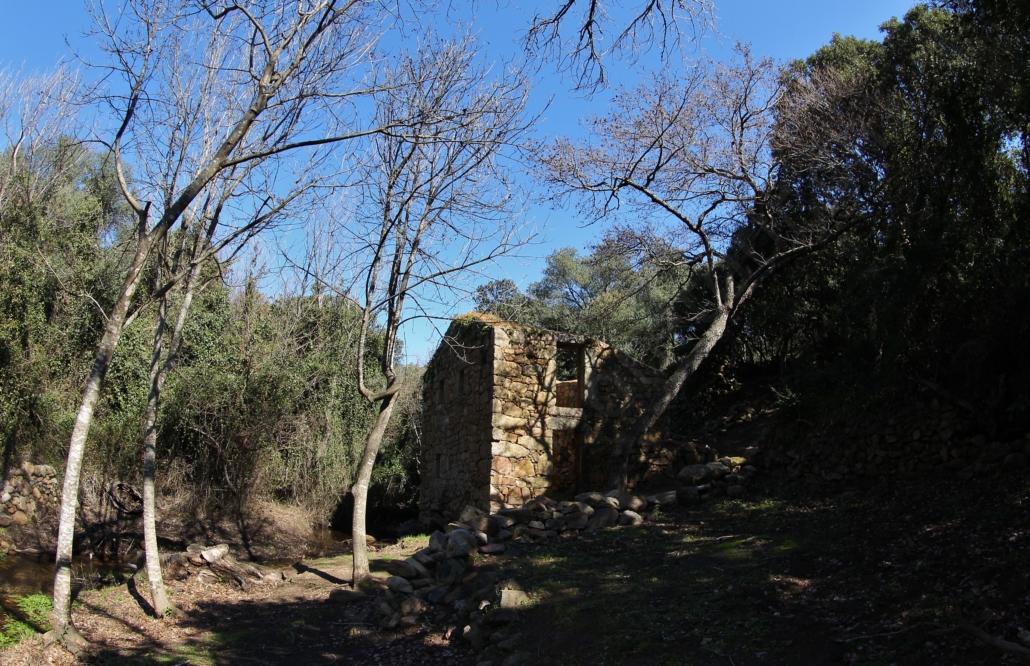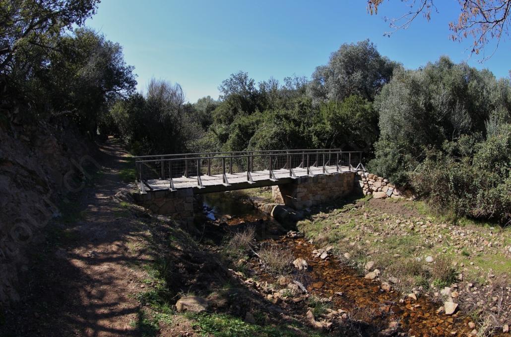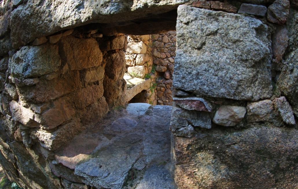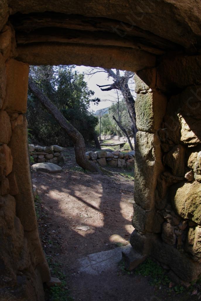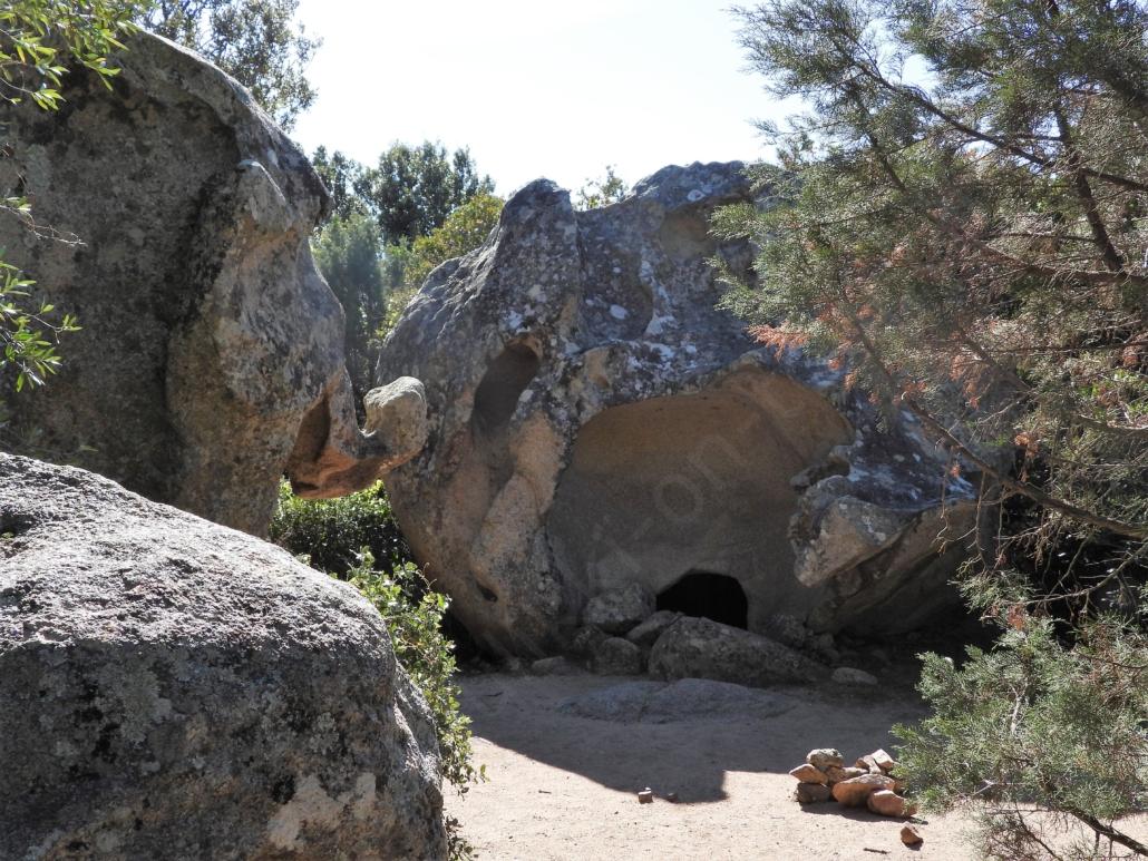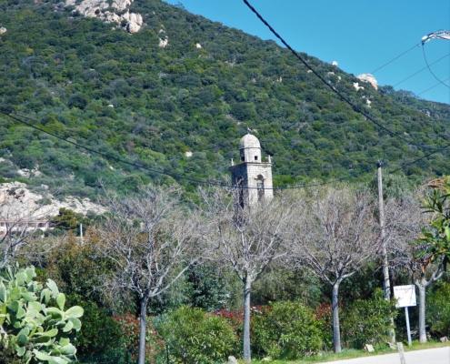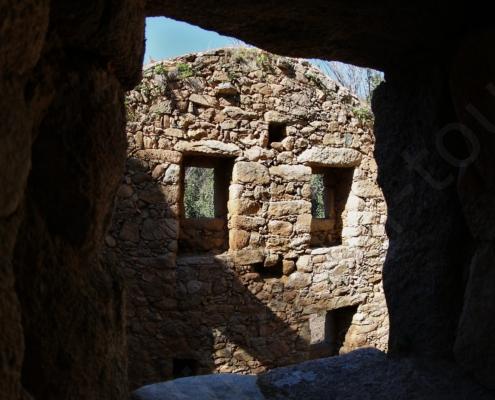 Wir sind hierher gefahren, weil uns der «Sentier du Patrimoine de Monacia-d’Aullène» von verschiedenen Seiten her empfohlen wurde. Und tatsächlich treffen wir an einem wolkenlosen, warmen Wochentag einen von Naturstein-Mauern eingefassten, schönen, abwechslungsreichen und informativen Rundweg. Zuerst geht es an den Bach runter, kurz diesem entlang – ideal für unsere Vierbeiner um nochmals ‘Markierungsflüssigkeit’ aufzunehmen – und dann über eine Holzbrücke. Ab hier geht es leicht bergauf, vorbei an knorrigen Baumstämmen und Felsen mit faszinierenden Formen und Farben. Oben angekommen treffen wir auf ein malerisches Oriu. Die aus ‘tafoni’ (Grotten) gebauten Unterstände dienten je nach Epoche als Wohnung, Grab oder Kornsilo. Dieses Oriu ist in gutem Zustand und bewerkenswert einladend sowie mit schöner Aussicht ins Tal.