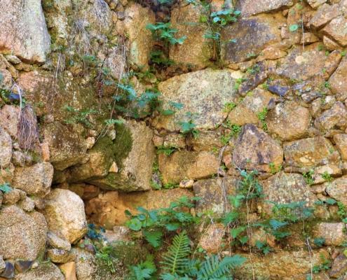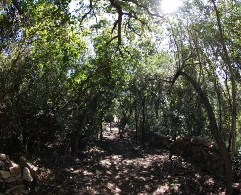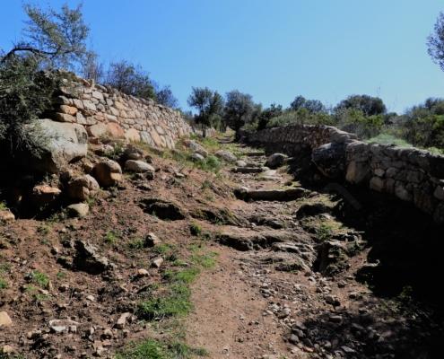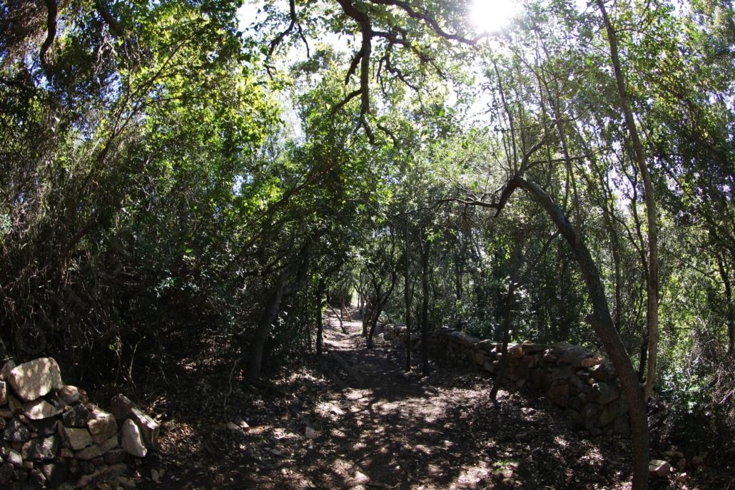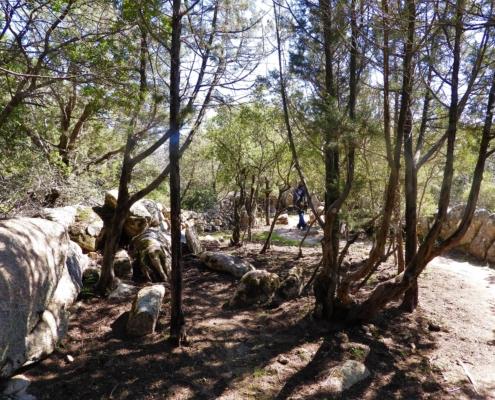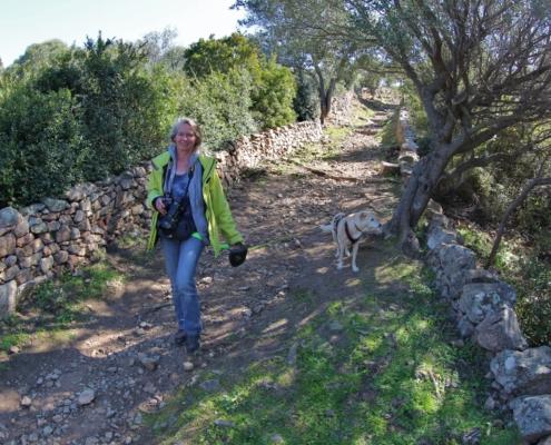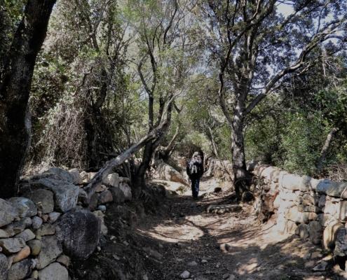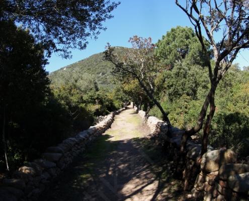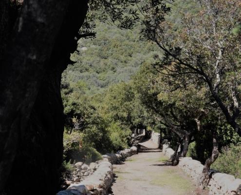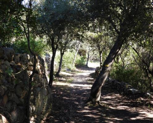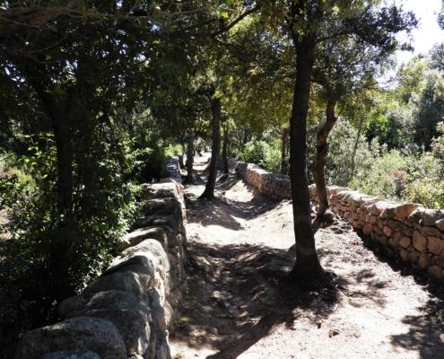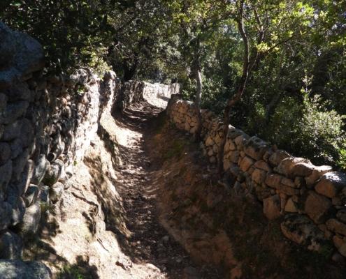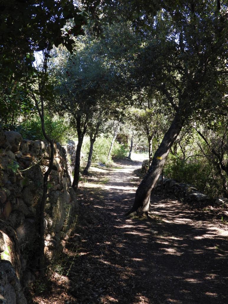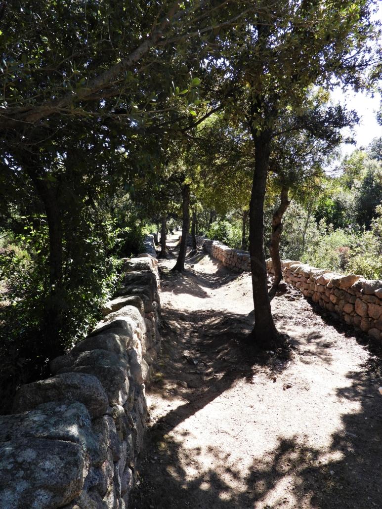 Fast auf dem gesamten Weg sind links und rechts die in mühsamer Handarbeit zu Begrenzungsmauern aufgeschichteten Steinbrocken zu sehen, dazwischen, manchmal ‚dreingeflochten‘ hin und wieder daraus hervorwachsend viele Bäume, die ab und zu eine Gasse bilden, so dass wir Schweizer uns fühlen wie bei Gessler und Wilhelm Tell „durch diese hohle Gasse muss er kommen„. 🙂