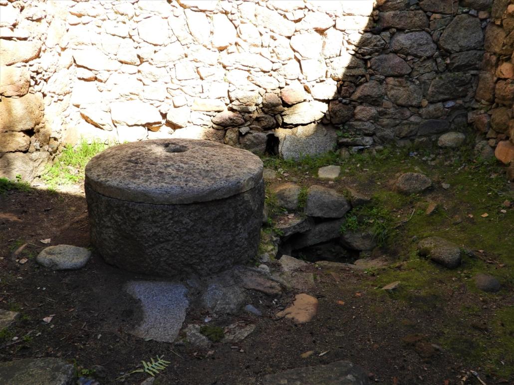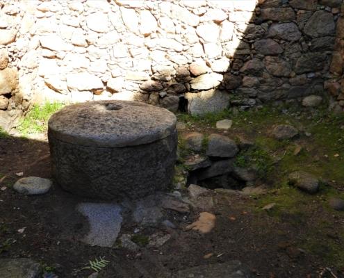 Wieder am Bachlauf führt der Rundweg noch an der Ruine einer Ölmühle vorbei, wo der alte Mühlstein sehr schön zu erkennen ist. Dank der Informationstafel lernen wir, wie das Öl gewonnen wurde; das war wohl ziemlich mühsam und langwierig. Kurz danach sind wir – leider – schon am Ende des ausnehmend schönen Rundweges angekommen.