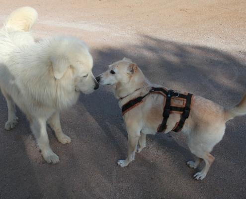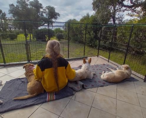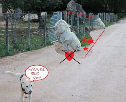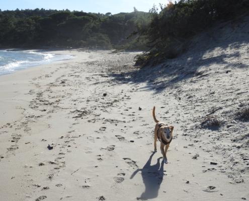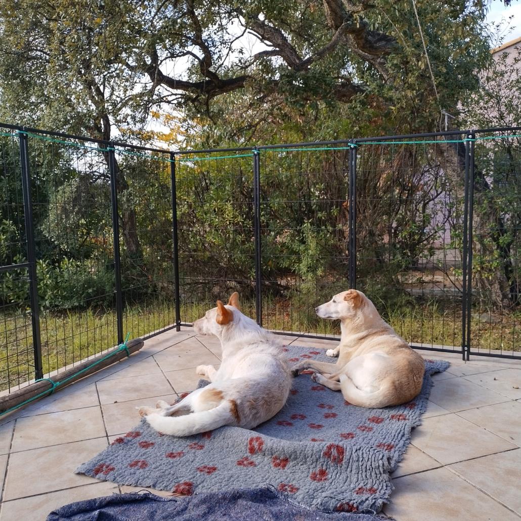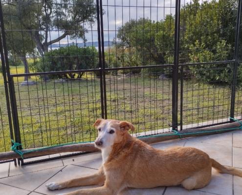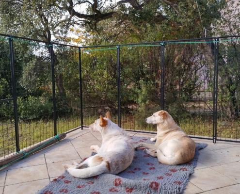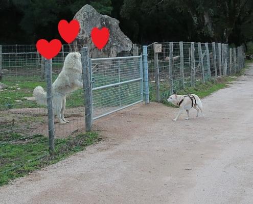 Die Hundegitter-Lieferung ist angekommen. Das war eine Zangengeburt, weil der französische Anbieter nicht auf die Insel liefert. So mussten wir einen Transporteur ausfindig machen, der auf dem Festland eine Adresse hat und auch auf Korsika. Besten Dank an Rocca Transport – super Service! Jetzt können unsere drei Fellnasen sich auf der Veranda aufhalten, zum Strand hinunter äugen und die vielen Katzen von hinter dem Gitter anbellen, ihnen aber nicht nachrennen.