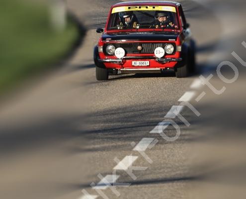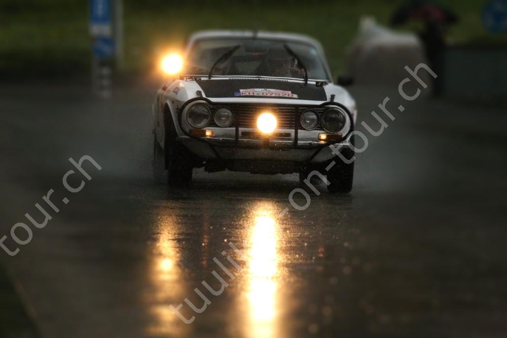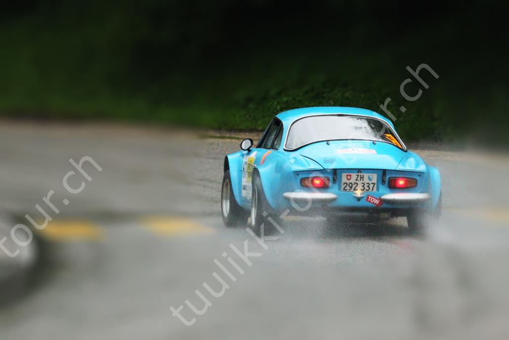 Leider ist die Veranstaltung zu einem ‚Seifenkisten-Rennen‘ verkommen. 5 oder 6 Fahrzeuge laufen wirklich am Limit, die anderen sind Schönwetter-Ausflügler mit ihren netten Begleiterinnen. Diese wird durch den meist schon angegrauten Piloten durch die Gegend gekarrt in normalem, für den Jura üblichen Tempo. Der grösste Kinderkram daran: Die meisten dieser Crews fahren mit Garagen-Nummern durch die Gegend und die weniger Begüterten und Nicht-Garagisten müssen dann schauen, wie sie ihre Kiste auf die Strasse bringen.