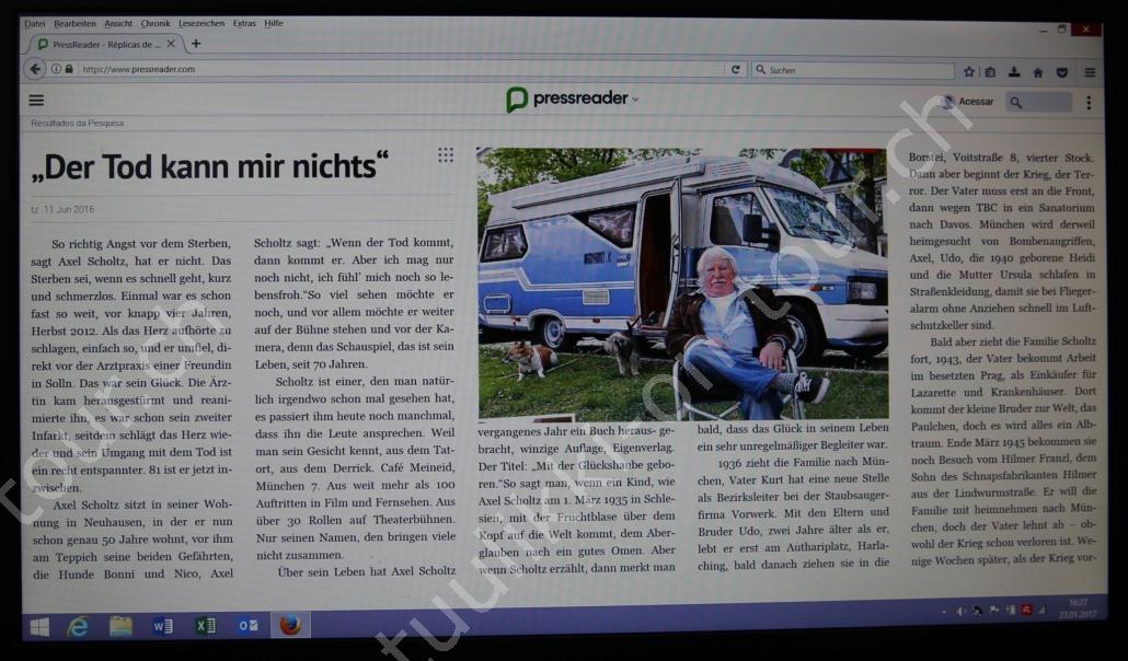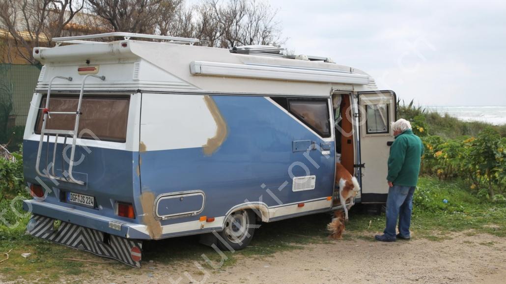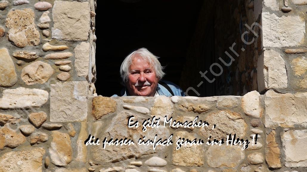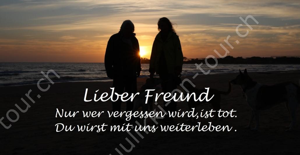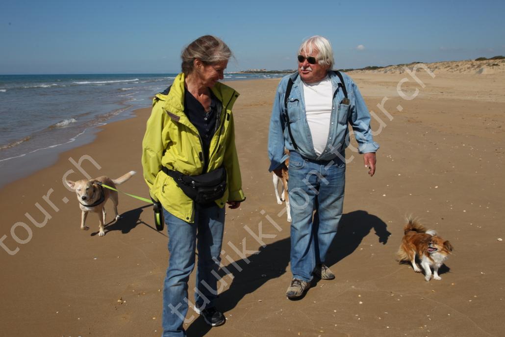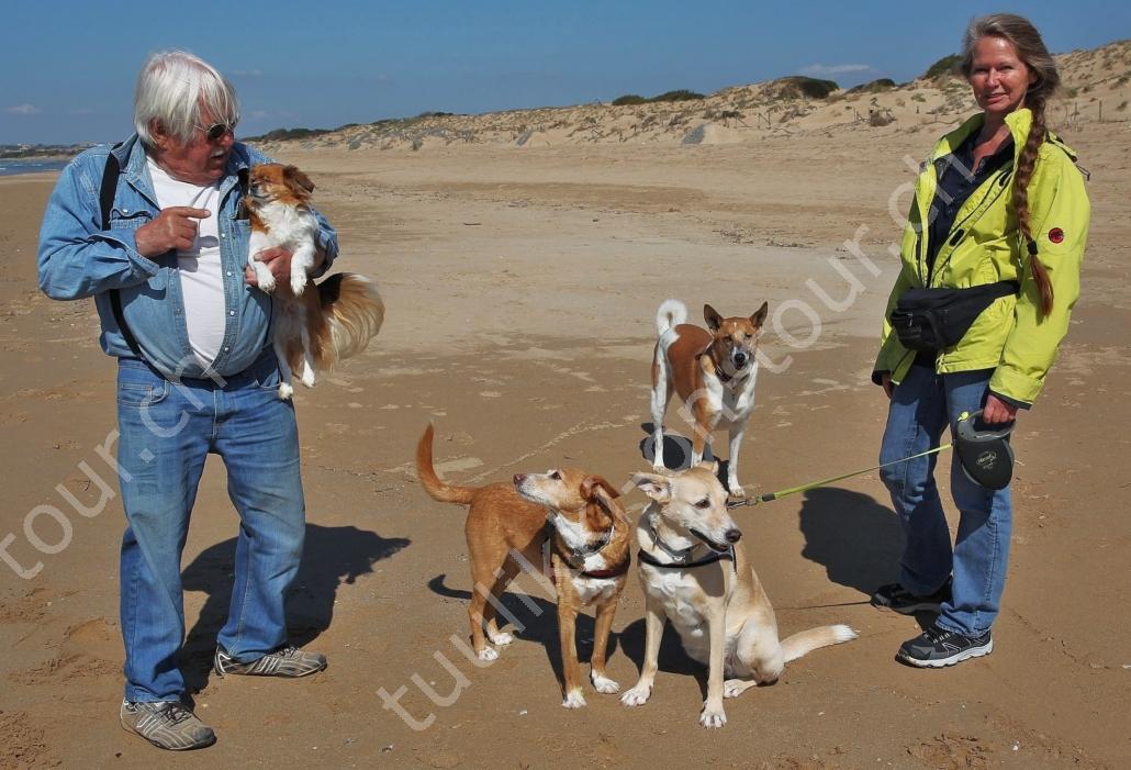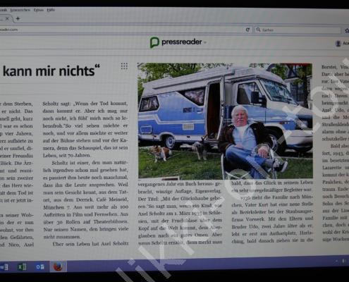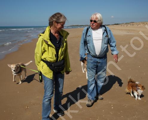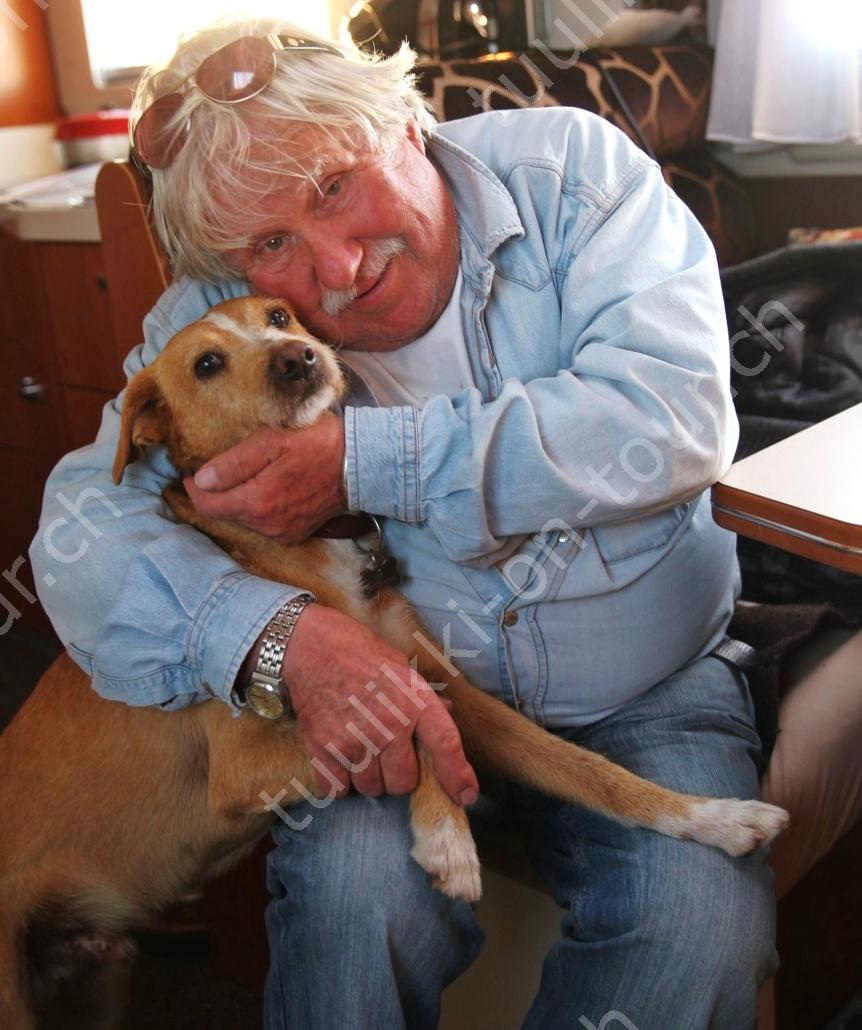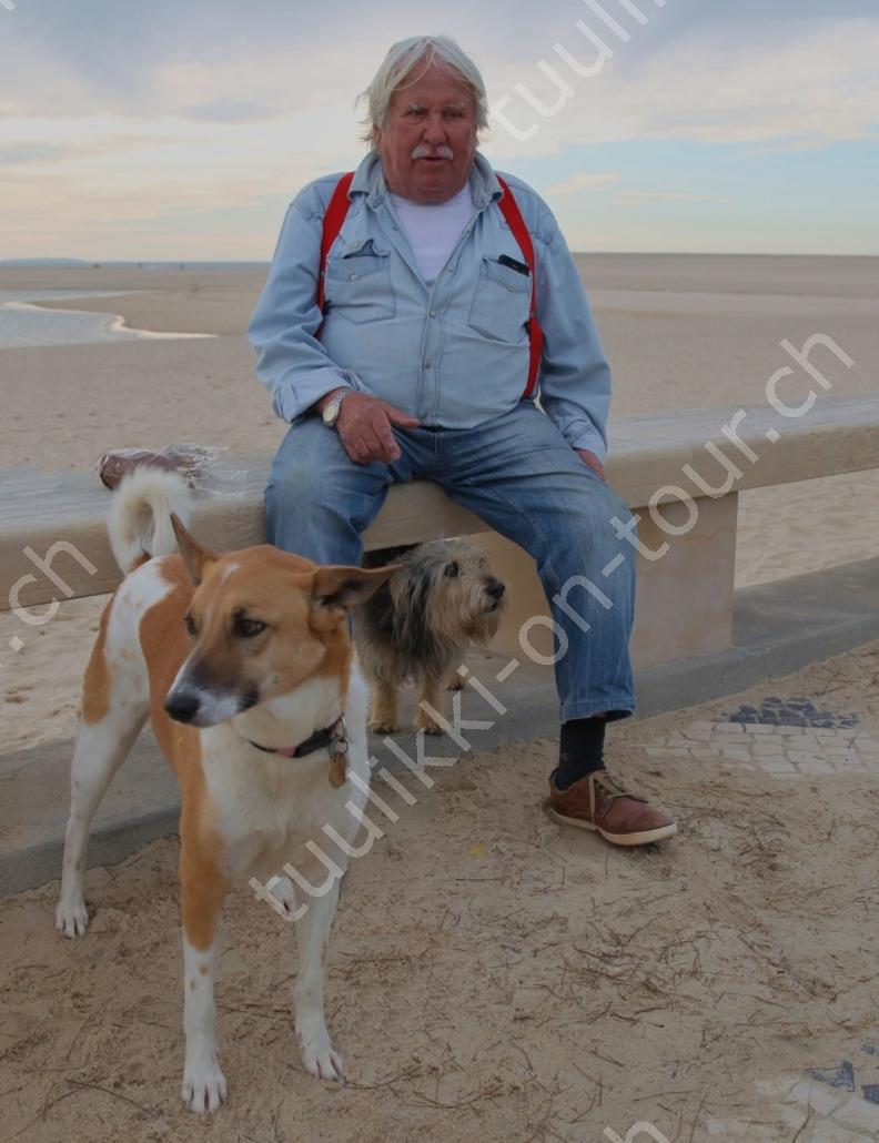 Wir trafen Axel per Zufall am 23.1.2017 in Portugal nach dem Besuch der Capela de Sant’Ana vor Sao Martinho de Porto und seiner anschliessenden Stärkungseinkehr. Er hatte gerade eine angeregte Diskussion mit einem Einheimischen und Uschi konnte mit ihren Sprachkenntnissen helfen. Mit Axel konnte man sehr angeregt diskutieren und wir wurden schnell ‘warm’ miteinander; so folgte er uns zu unserem Standplatz etwas ausserhalb, wo wir über Gott und die Welt sprachen. Daraus entstand eine lange Freundschaft, getragen von Axel’s enormem Tierschutz-Engagement, unseren gleichen Interessen und dem sorglosen Zusammensein mit all unsere Hunden. Wir setzten unsere Reisen in Portugal und Spanien getrennt fort, trafen uns aber alle paar Tage wieder, bis weiter nach Frankreich. Auch danach blieben wir in Kontakt, trafen uns bei seinen Freunden in München, mit ihm im Englischen Garten und auch wieder ‘on the road’. Es gäbe so unendlich viel zu schreiben dazu, so dass wir uns entschlossen haben, als Beispiel Axel’s Geburtstag zu zeigen, den wir zusammen am Strand in Sizilien gefeiert haben. Seine Freunde waren unsere Freunde und die gemeinsame Happiness aller unserer Hunde war echt genial. Wir konnten auch bei Dreharbeiten dabei sein und durften die Premiere seiner Memoiren miterleben. Grosszügig und umsichtig wie Axel war, sind die Rechte zu dieser Biografie an eine Tierschutz-Organisation gegangen.