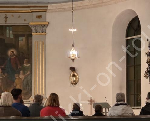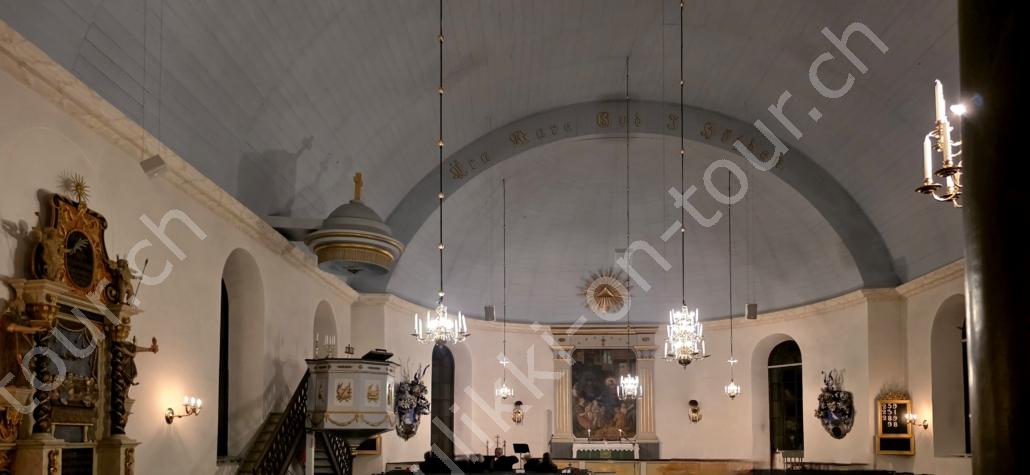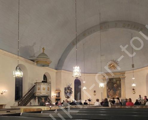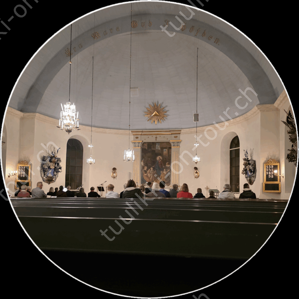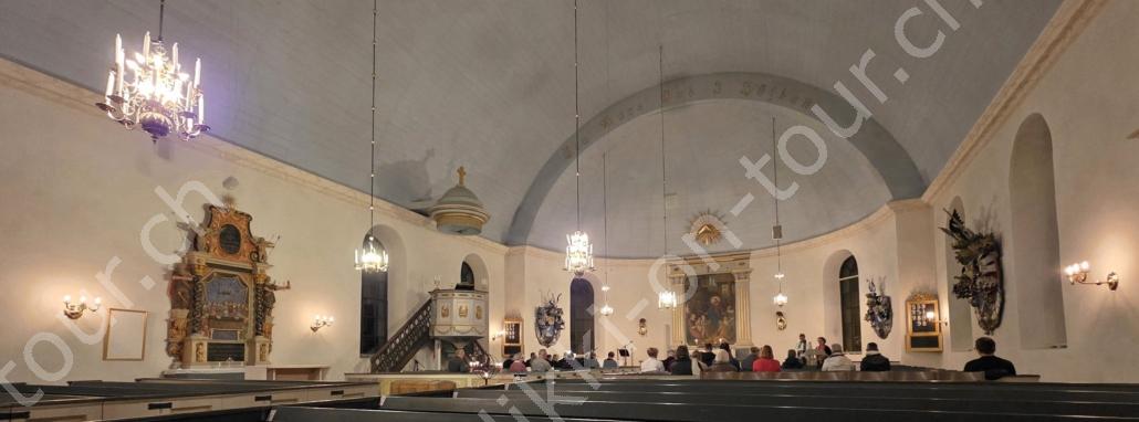 Svenska kyrkan laden für den 24. Oktober um 19 Uhr zum Musik-Gottesdienst ‚Musikgudstjänst‘. Da hier die Kirchen sonst geschlossen sind, gehen wir hin und können so die Kirche mit ihrer speziellen Dekoration auch mal von innen sehen.
