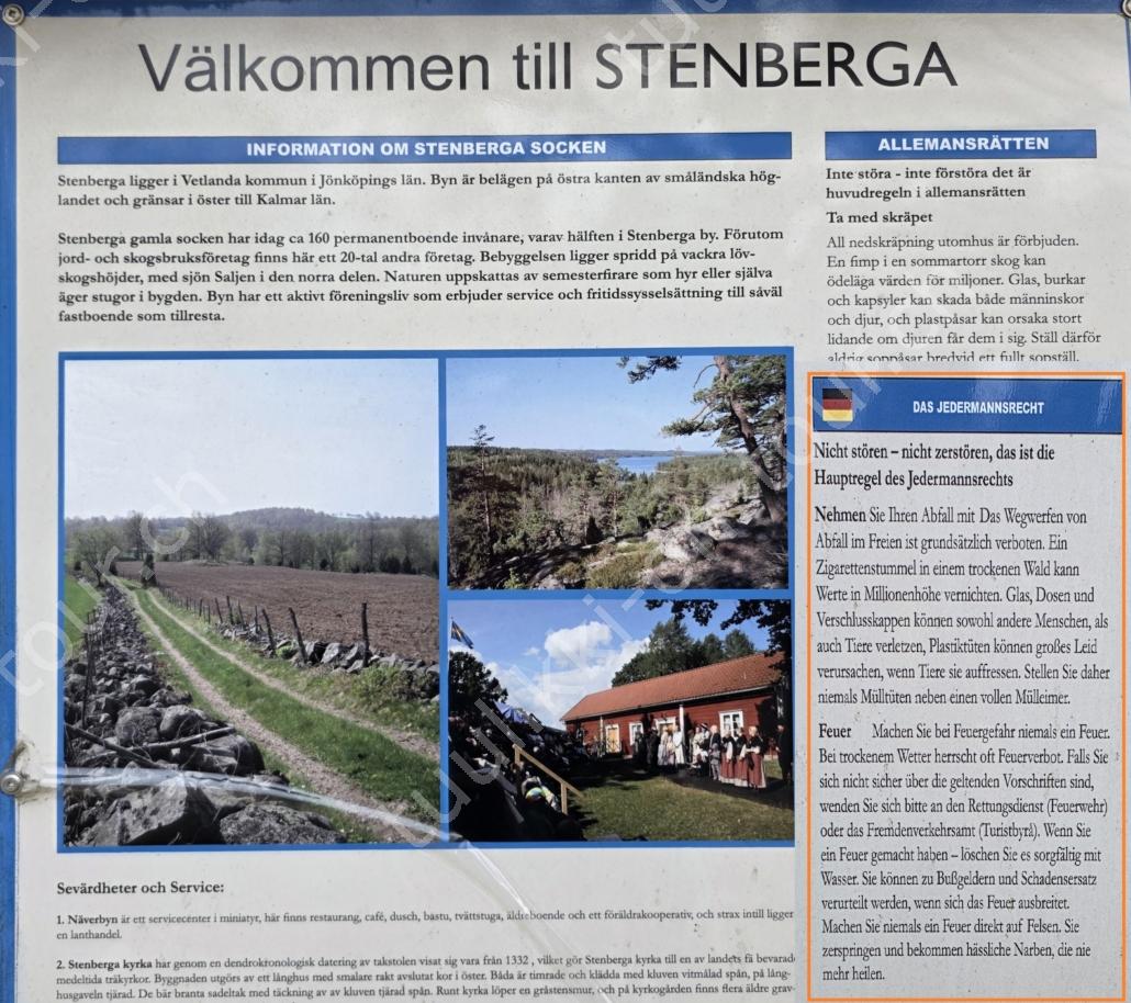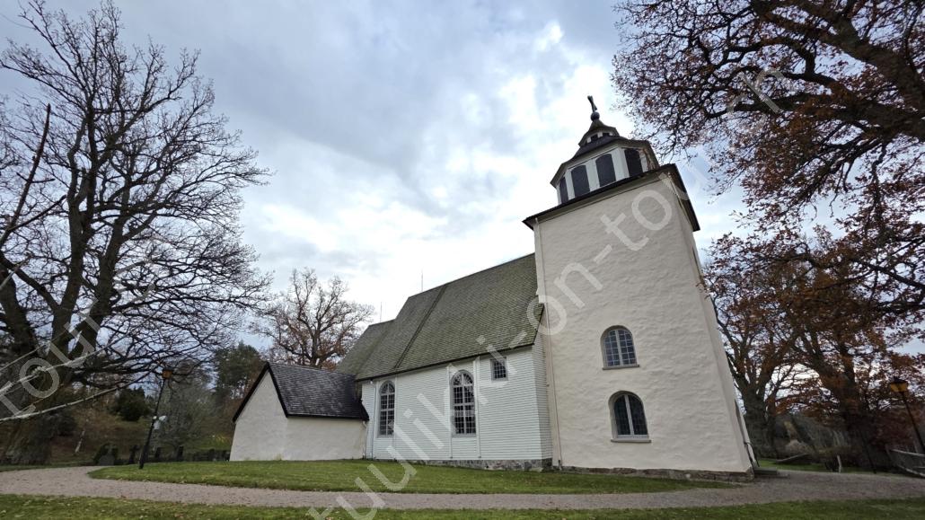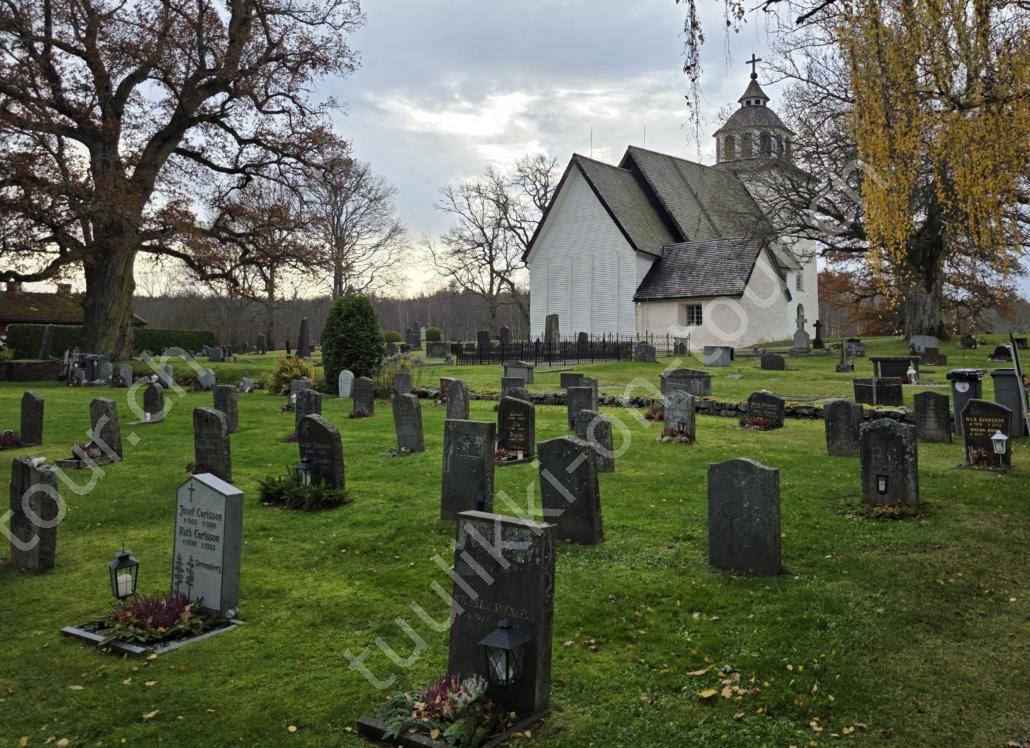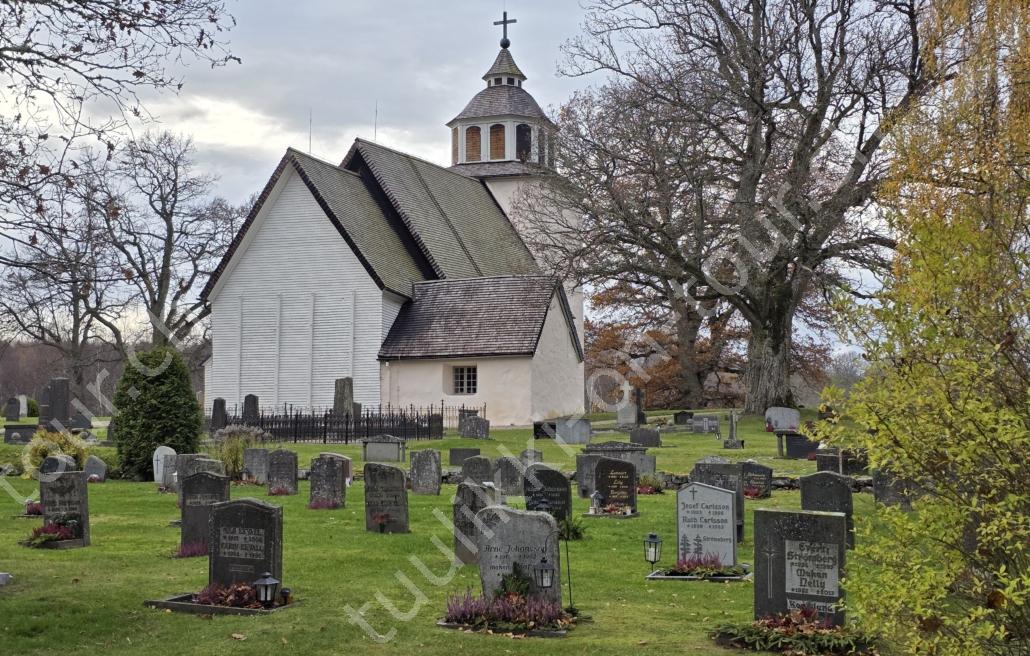 Kirche Stenberga: Auf dem Friedhof fällt auf, dass viele Gräber Namen tragen, die auf englische Abstammung schliessen. Auch viele Deutsche scheinen hier ihre letzte Ruhe gefunden haben; es sind aber keine Kriegsgräber – Schweden verhielt sich in den Weltkriegen klugerweise neutral.