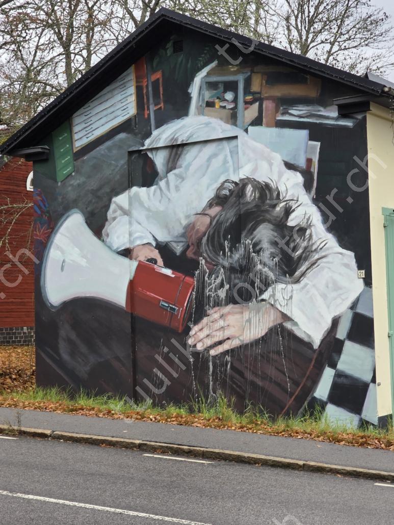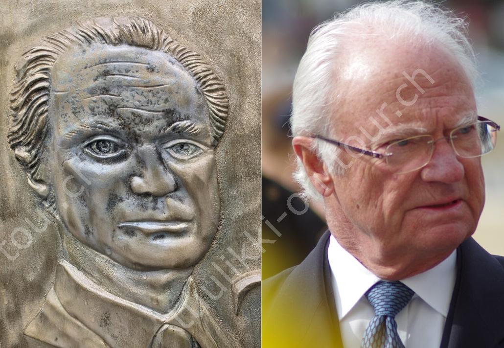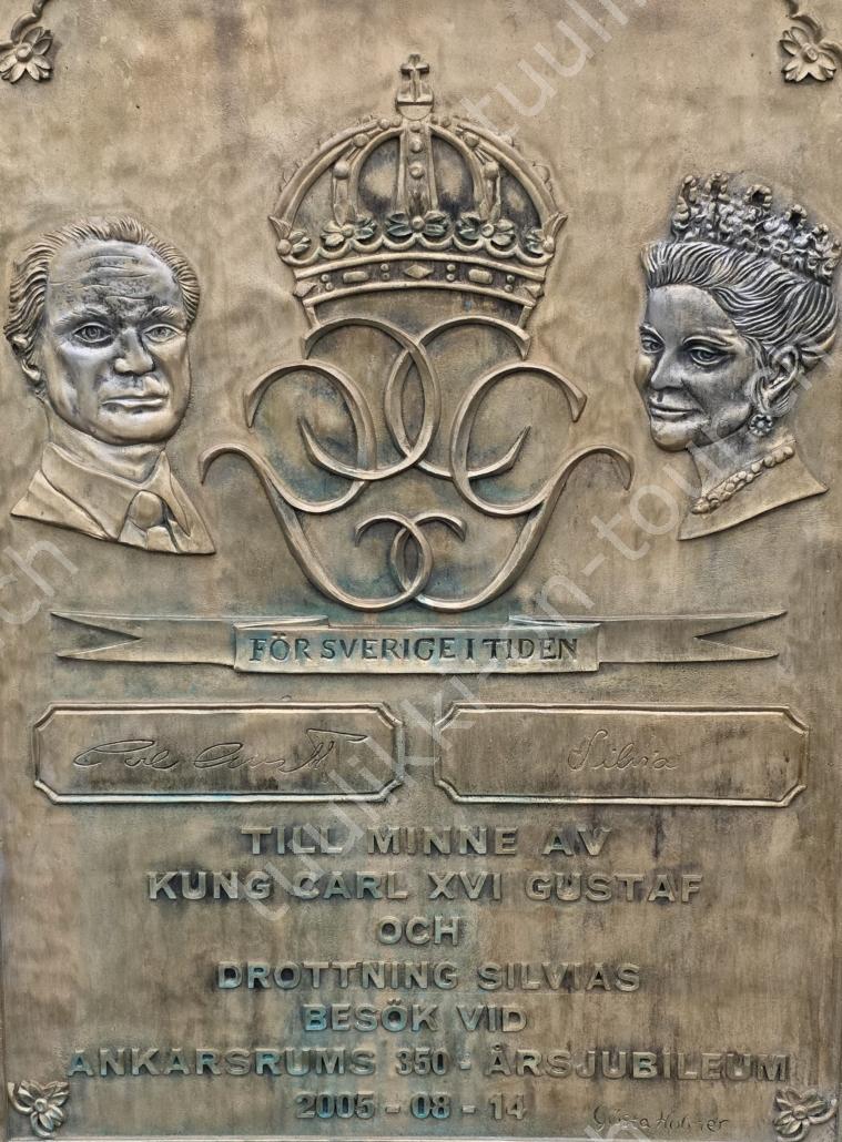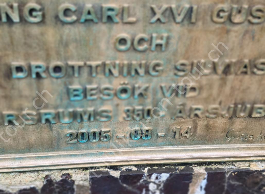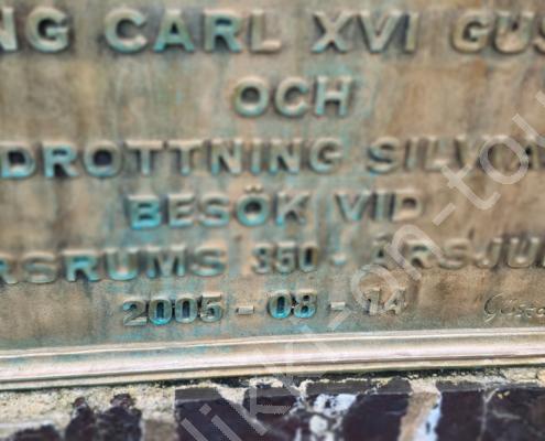 Berufsbedingt interessierte sich Nils für das Giessereimuseum in Ankarsrum. Gleich wie bei den Kirchen, auch hier verschlossene Türen. Ein wunderschöner Park mit einer grossen gegossenen Erinnerungstafel, die auf den Besuch des Königspaares in dieser kleinen Ortschaft hinweist, entschädigt etwas. Der royale Besuch in diesem abgeschiedenen Ort hinterliess offensichtlich bleibenden Eindruck.Daher entschlossen auch wir uns, unserer Luna, die ja an ihrem rechten Vorderbein einen Pfotenschutz trägt, eine königliche Ehrerbietung in Form eines Kronen tragenden Sockens anzuziehen. Was uns an solchen Orten immer wieder erstaunt, sind die eng aneinander stehenden Häuser in einem Land mit solcher Grösse und Weite. Wir vermuten das kommt von einem früheren Bedürfnis nach Schutz und Hilfe untereinander.