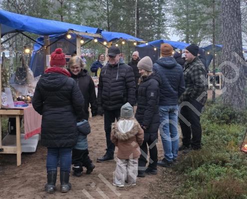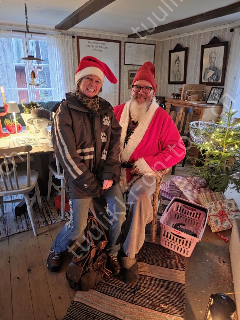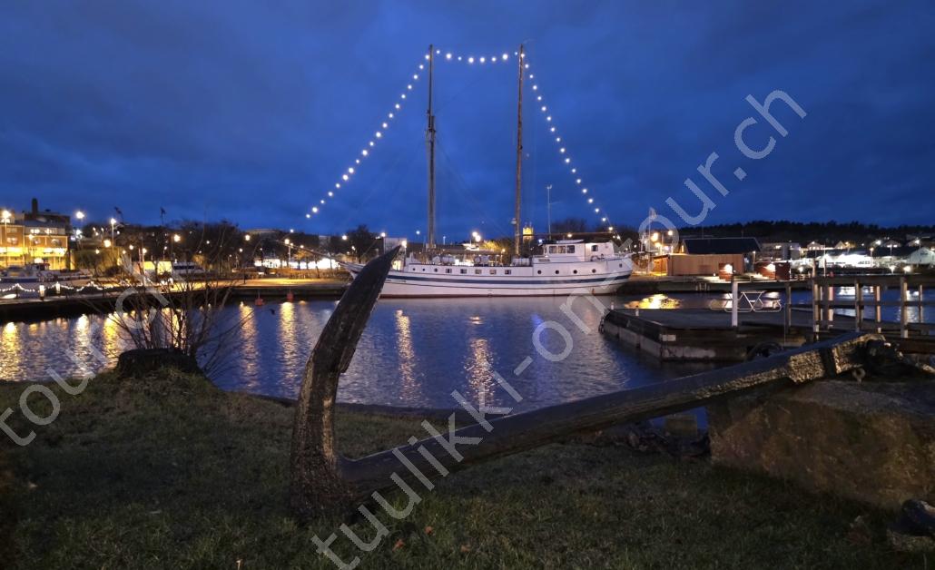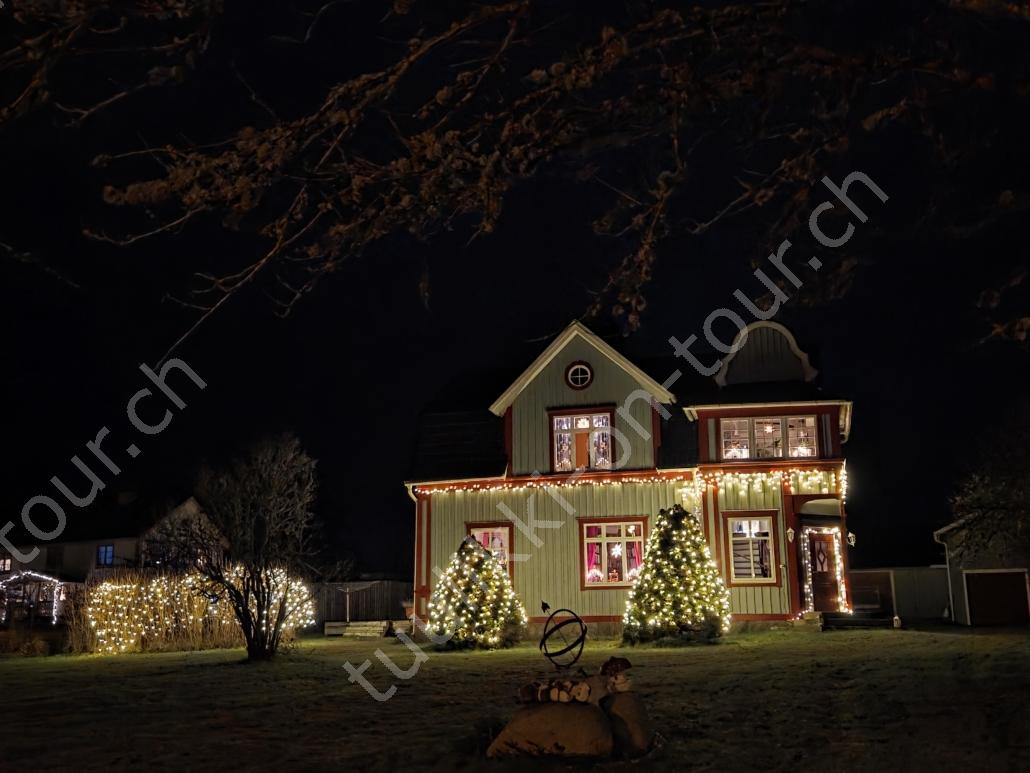 Bei einer Einkaufstour in der nahen Stadt stellen wir fest, dass Leuchtsterne die Strassen in warmes Licht tauchen. Die Weihnachtszeit naht. Um die Stimmung im Dunkeln aufzunehmen, fahren wir am Abend extra nochmals hin und verbinden es mit einem Spaziergang unter Strassenlaternen im Stadtpark. Weihnachtsmärkte sind auch in Schweden en vogue. Wir besuchen einen, der mit Ständen idyllisch im Wald stattfindet und finden ganz hinten das Häuschen des Samichlaus. Uschi bastelt aus Birkenrinde einen Tannenbaum und abends werden die Lichtlein im Fenster angemacht, wie es hier üblich ist, und so stellt sich auch bei uns – trotz mangelndem Schnee – etwas Festtagsstimmung ein.