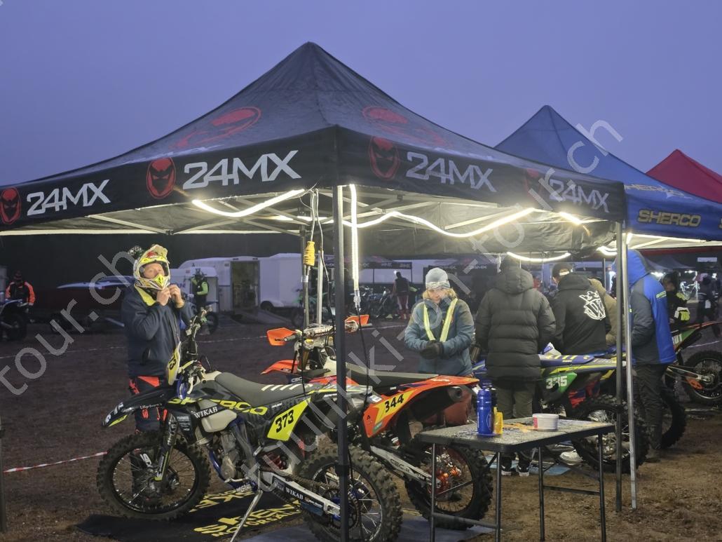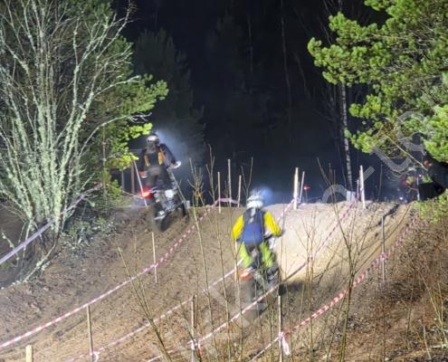 Mitte Dezember findet auf der nahen Enduro-Strecke ein Nachtrennen statt. Es regnet und wir hoffen auf spektakuläre Spritz-Bilder. Es hat viele Leute, Teilnehmer und Zuschauer von teil weit her, aber wenig Spektakuläres, da die Piste durch den unbeleuchteten Wald führt. Als Zuschauer hört man die Töff-Fahrer kommen und sieht ihre Helm- und Töff-Leuchten, aber viel mehr leider nicht.