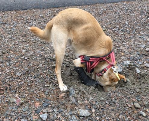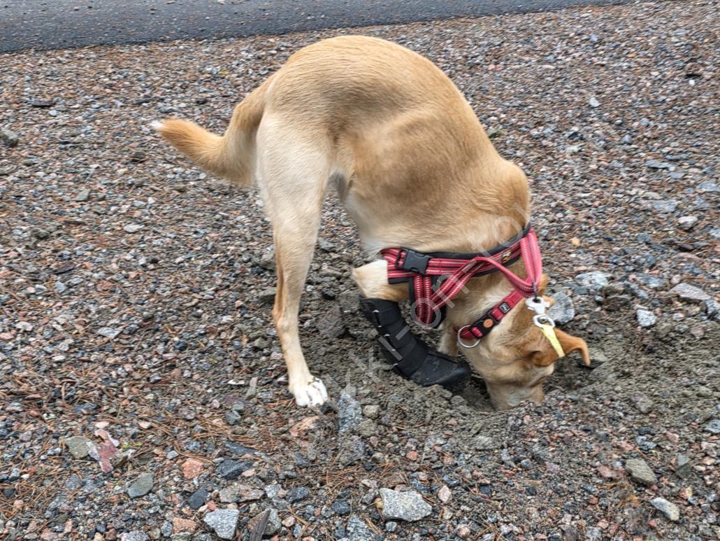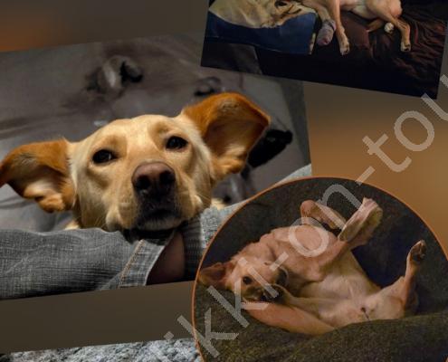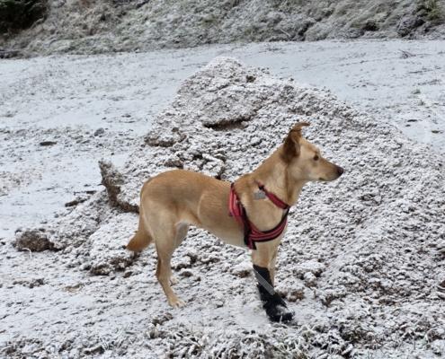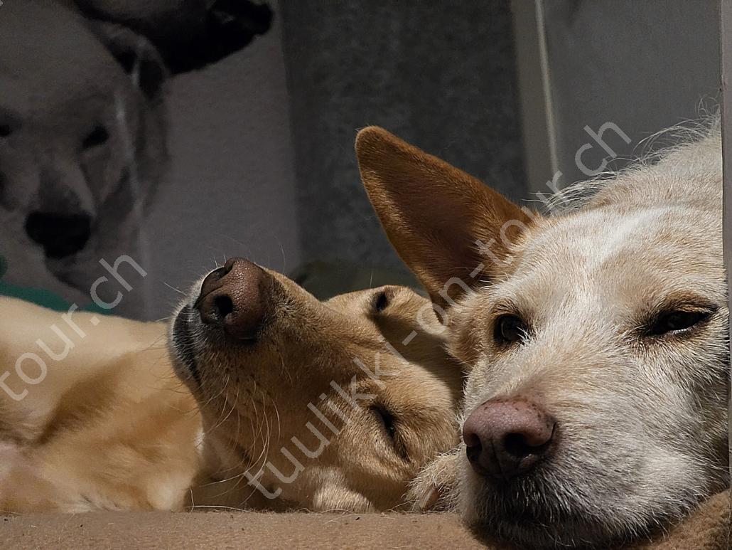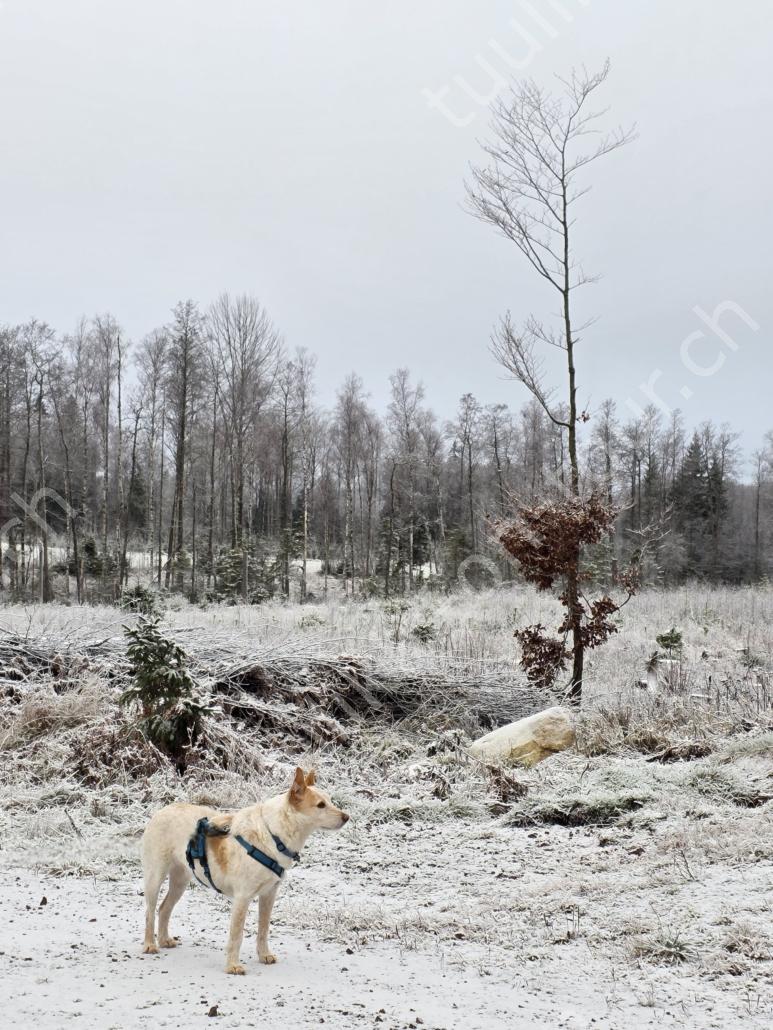 Wir haben einen patenten Schuhmacher gefunden, der nicht nur Luna’s durch- gelaufene Pfotenfinken wieder ‘auf Vordermann’ bringt, sondern auch ihr Stiefeli neu besohlt und unsere Hosen und Jacken flickt. Damit ausgerüstet können wir wieder auf die 1 ½-stündige Rund’wanderung’ über’s Land, durch den Wald und der Veloroute entlang zurück. Diese Abwechslung gefällt unseren Vierbeinern ausgesprochen gut.