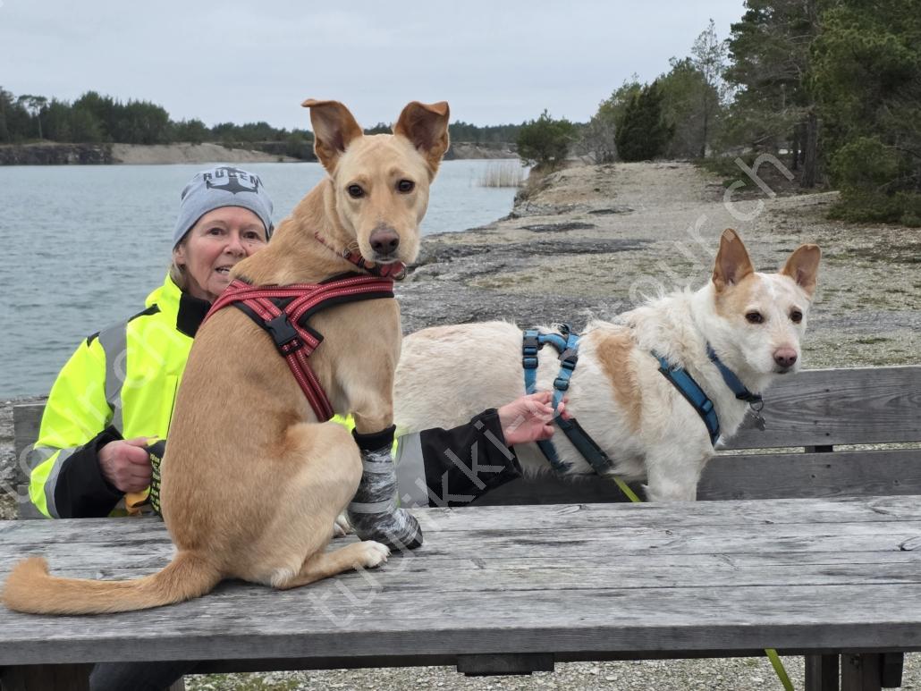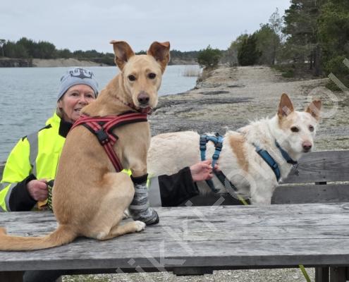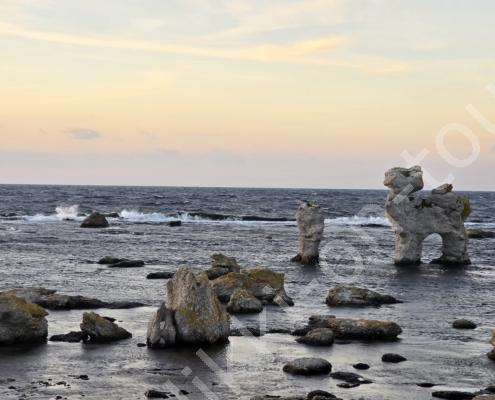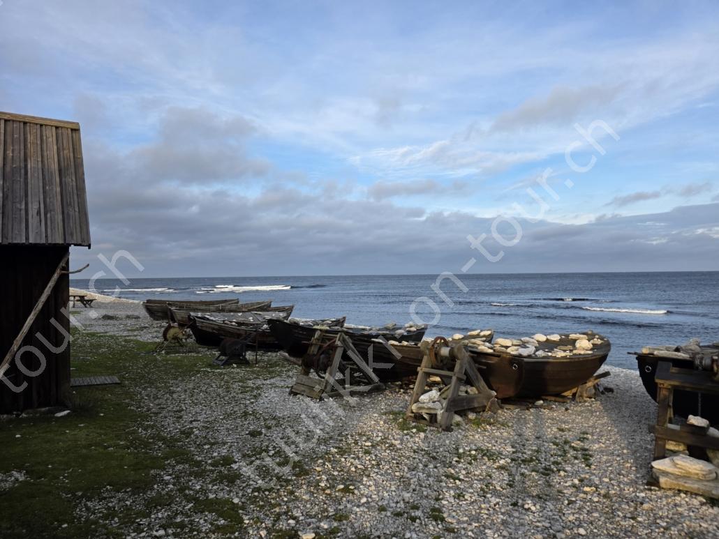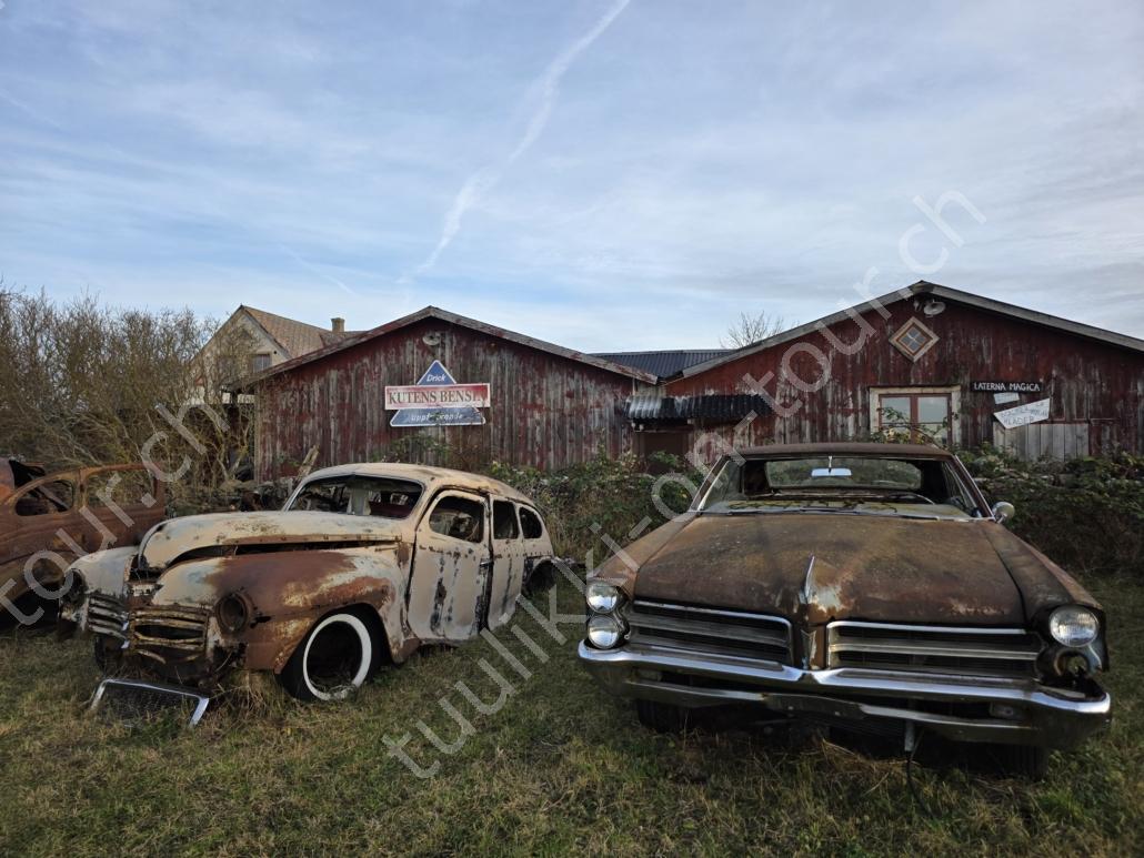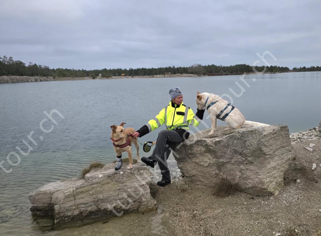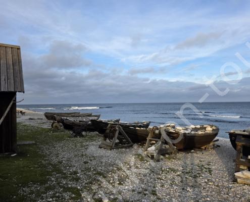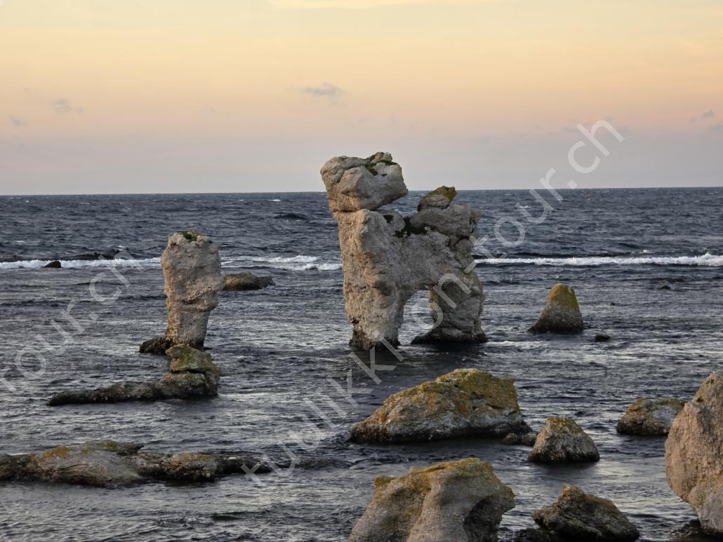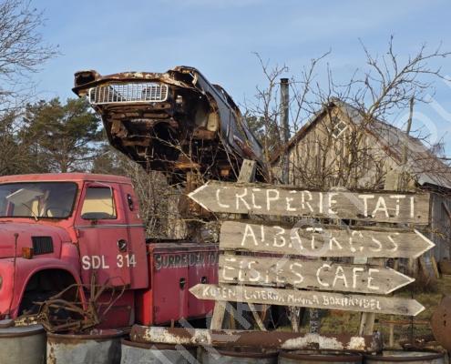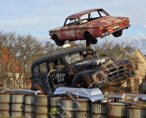 Danach machen wir uns zu einem Trip nach Gotland auf, der grössten schwedischen Insel und nehmen dazu die Nachtfähre ab Oskarshamn nach Visby. Beim uns schon von früheren Inseltrips bekannten Naturschutz-Parkplatz oberhalb der Klippen haben Pipa und Luna nur die Hasenfährten in der Nase; die Aussicht können wir gar nicht richtig geniessen. Dann fahren wir nordwärts und rüber zur nur durch einen schmalen Sund von Gotland getrennten kleinen Ostsee-Insel Färö (113 km2). Dort stehen viele der sehenswerten, mysteriösen Kalksteinformationen, genannt Rauk, die es uns speziell angetan haben. Wie z.B. ‘le Chien’ der Rauk, der aussieht wie ein Hund und im Wasser draussen steht. Ferner alte Mühlen sowie Wikingerhütten und… ein Autofriedhof, wo unser Fotograf gefragt ist. Die blu lagoon, an der im Sommer steter Andrang herrscht, haben wir ganz für uns alleine. Einfach schön und absolut sehenswert, dieses Gotland. Es gäbe noch viel zu sehen, landschaftlich, meeresstrandmässig wie auch die Altstadt und das Schloss und die Stadtmauer von Visby. Aber das gerne ein anderes Mal wieder…