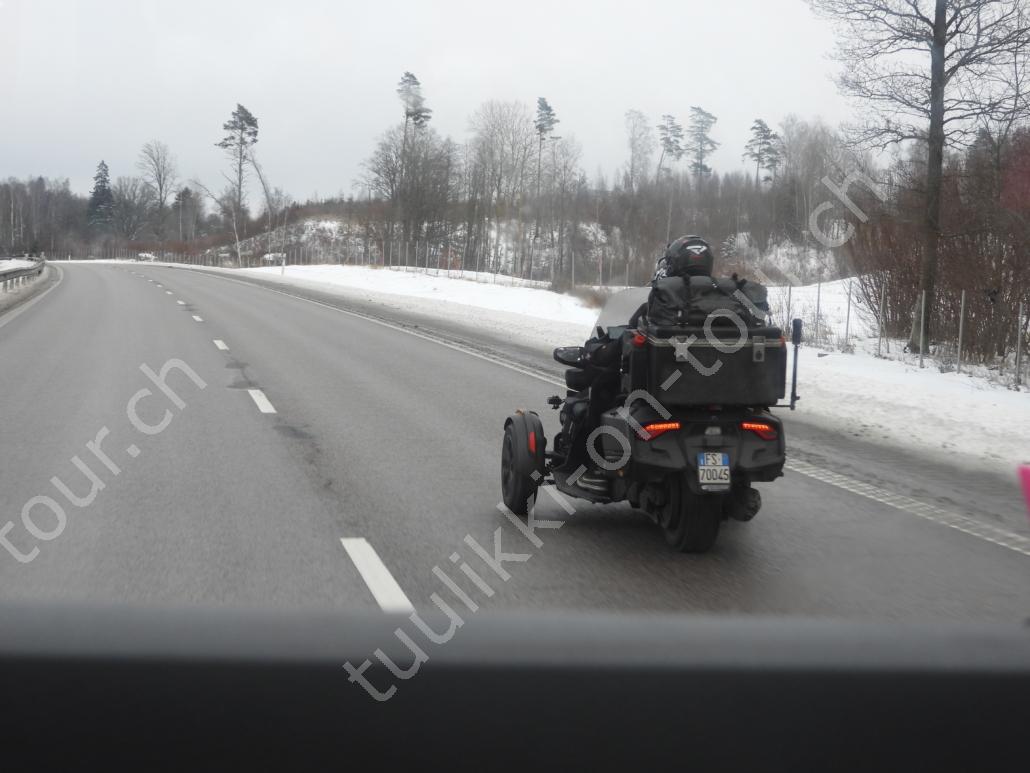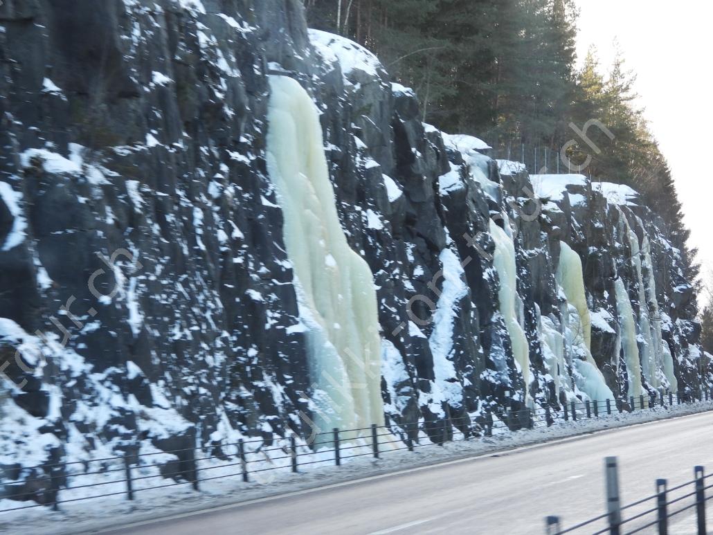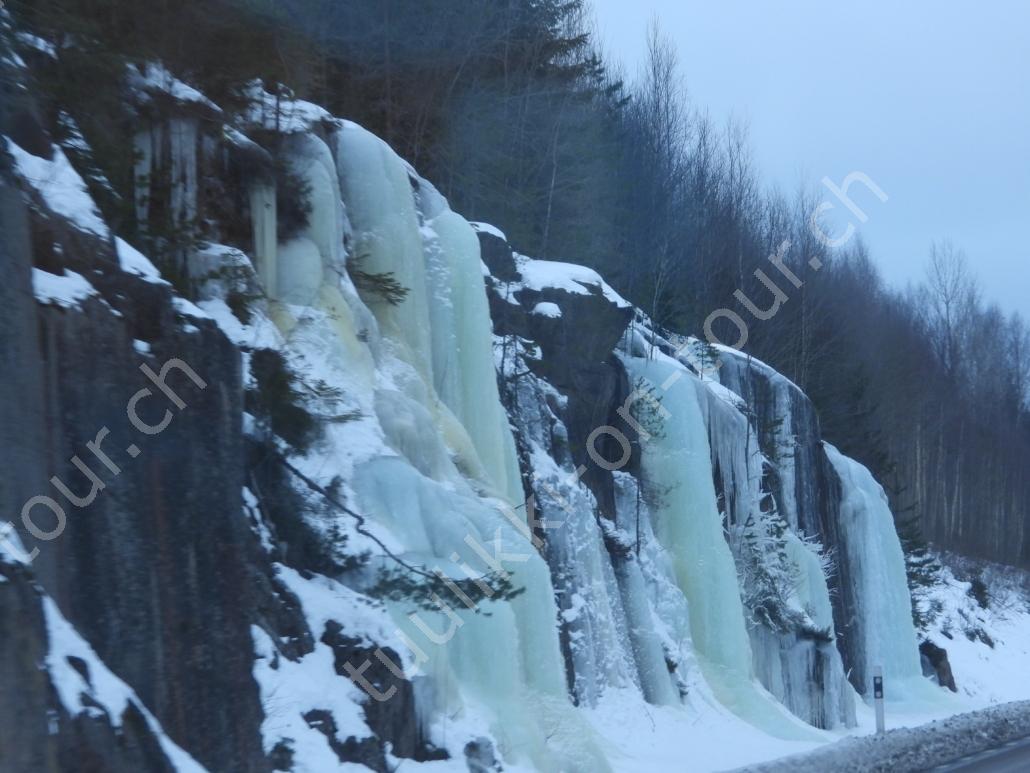 Anfangs Februar sind wir für ein paar Tage nordwärts gefahren, um einen Kollegen zu besuchen. Wie Ihr anhand der Fotos seht, hatte es anfangs noch recht viel Schnee, auch auf der Strasse, obwohl weiter nördlich war es dann zwischendurch schon aper, jedoch die Seen voller Eis und an den Felswänden klebten grosse Eisfälle. Schön kalt und abwechslungsreich war es allemal!