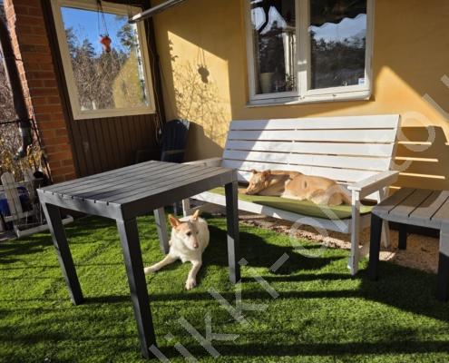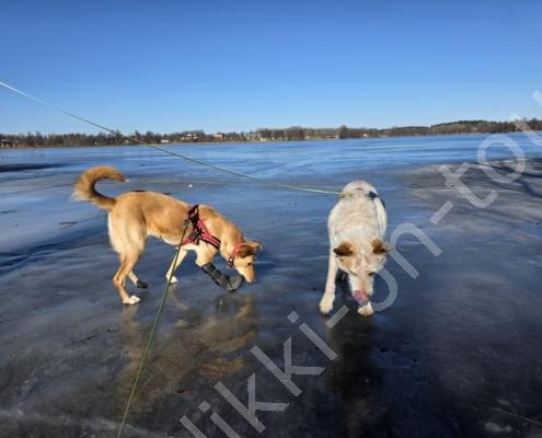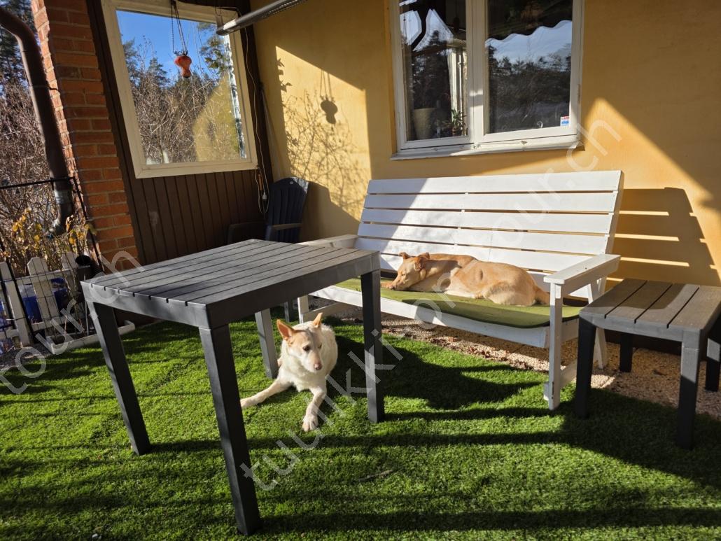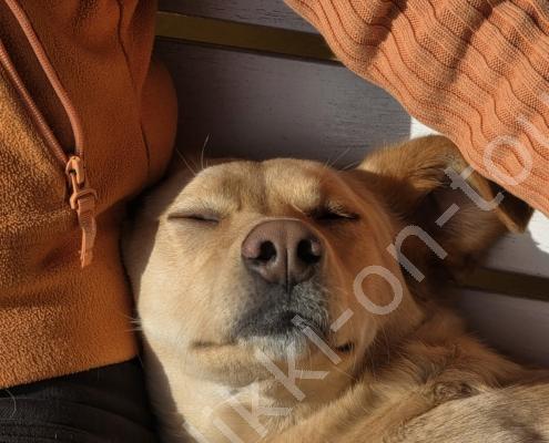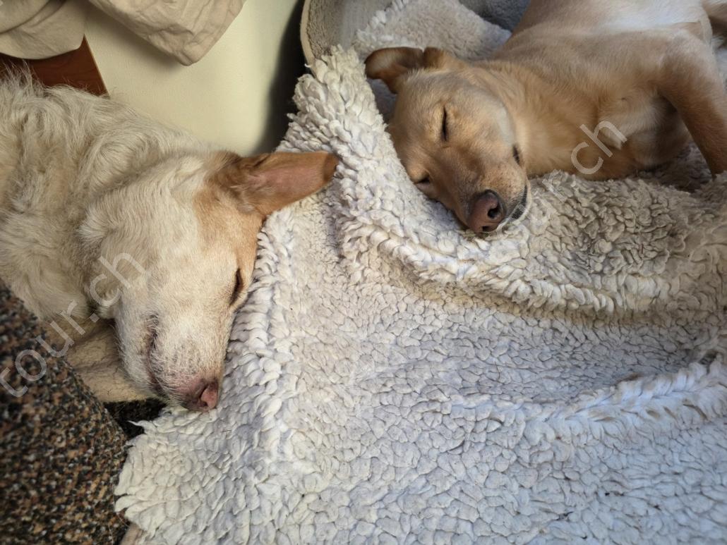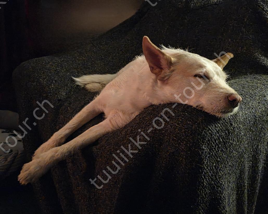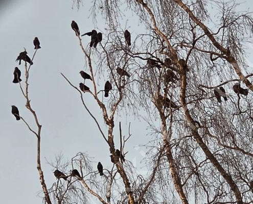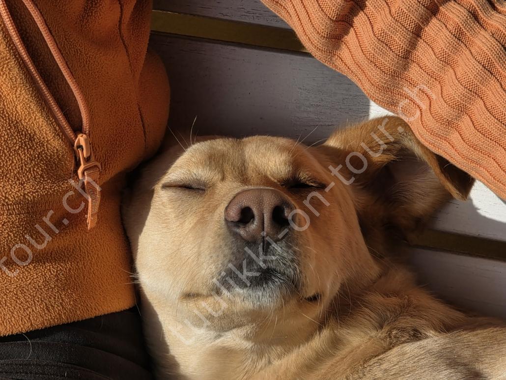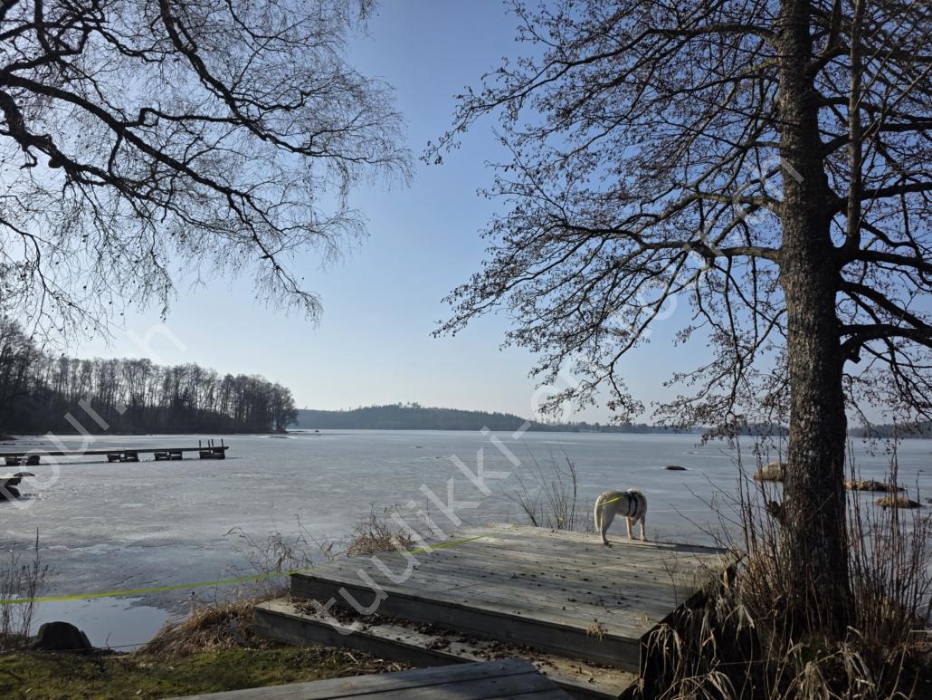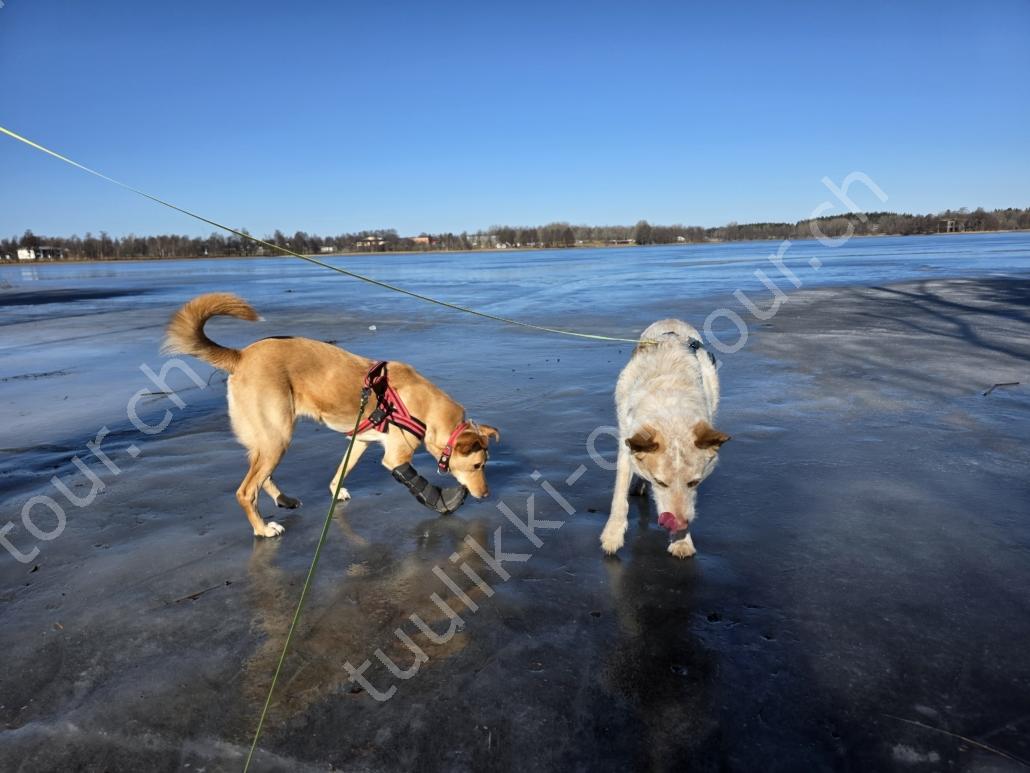 Tagsüber ist es anfangs März bereits um +5°C. Bei blauem Himmel und Sonnenschein nehmen wir den Nachmittagskaffee draussen auf der Veranda ein. Es ist so still hier, kein Verkehrs-, kein Fluglärm (viel mehr Kondensstreifen als normal, ob das mit den Kriegen USA-Iran und Russland-Ukraine zusammenhängt?), ab und zu meldet sich ein Vogel oder Kirchenglocken sind zu hören, sonst ist es wirklich sehr ruhig. In der Tierklinik wird Pipa für die Kombi-Impfung gepiekt – sie verträgt sie schlecht und muss nachts 4-5x raus. Birkenrinden-Bastelarbeiten sind weiter angesagt. Beim Seerundgang hören wir die Eisfläche knacken…es taut langsam – da es tags schon mal bis +12°C wird.