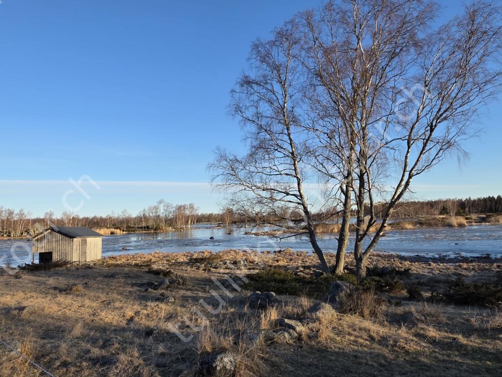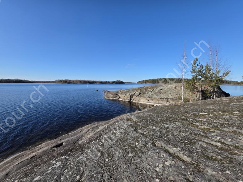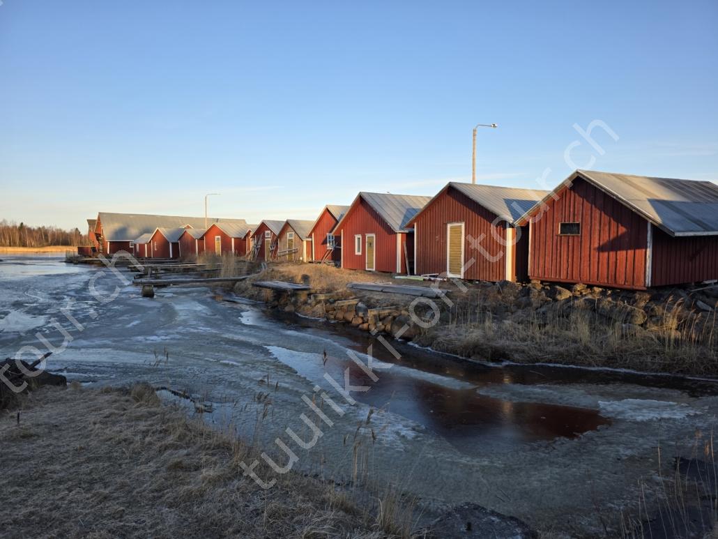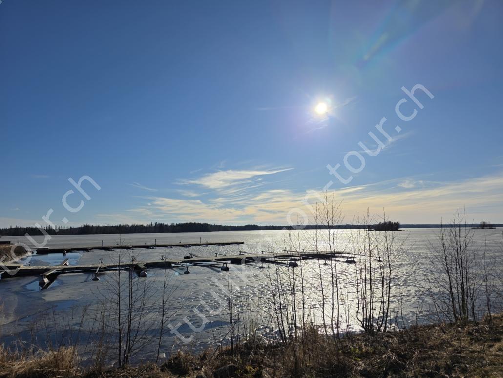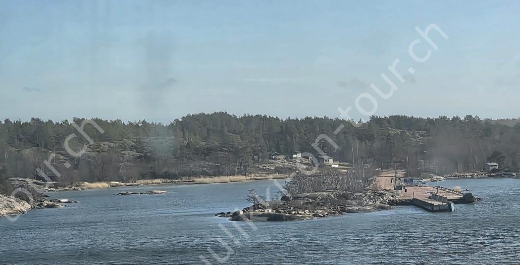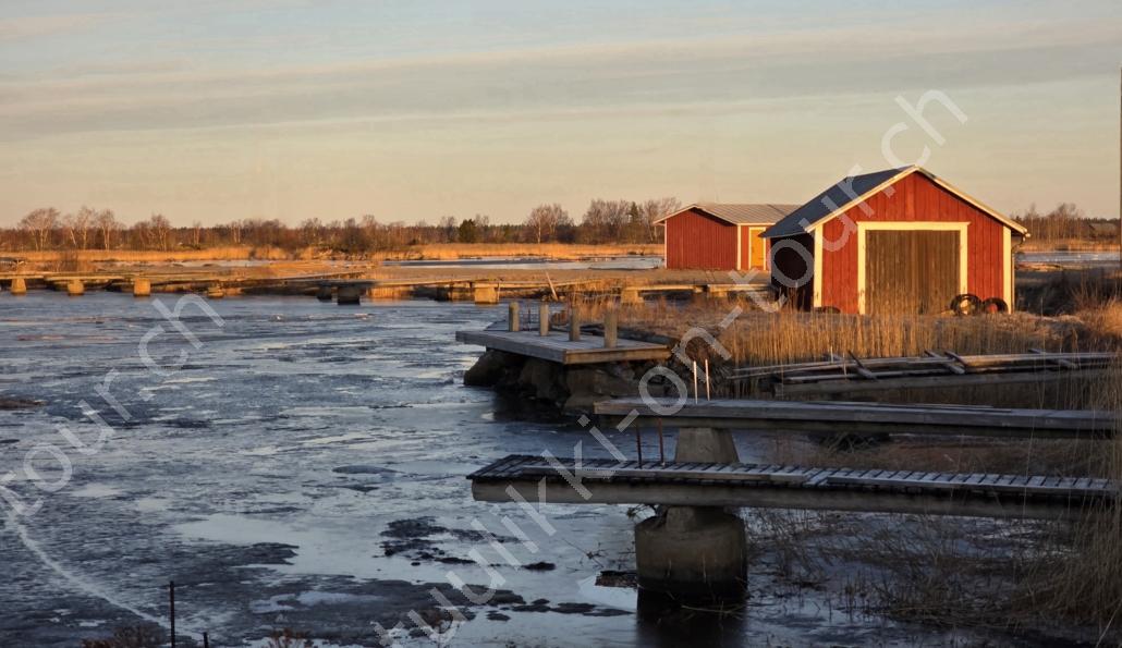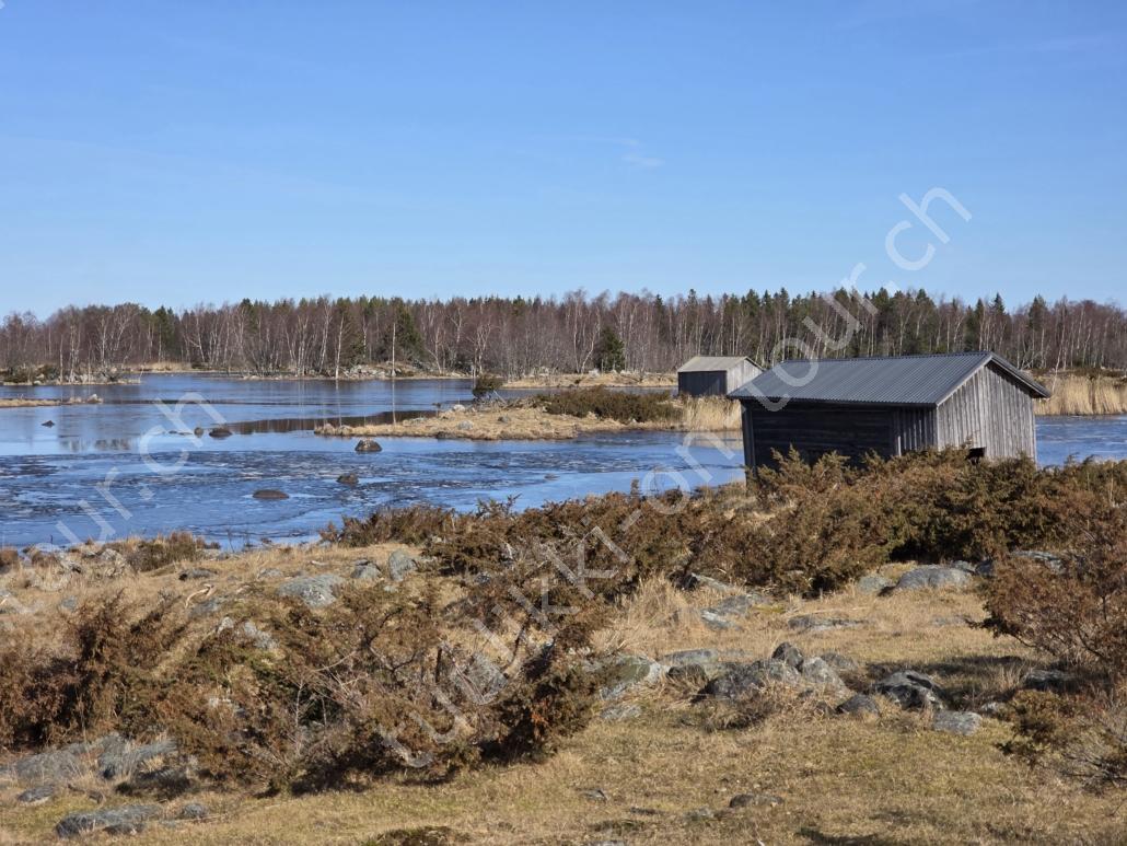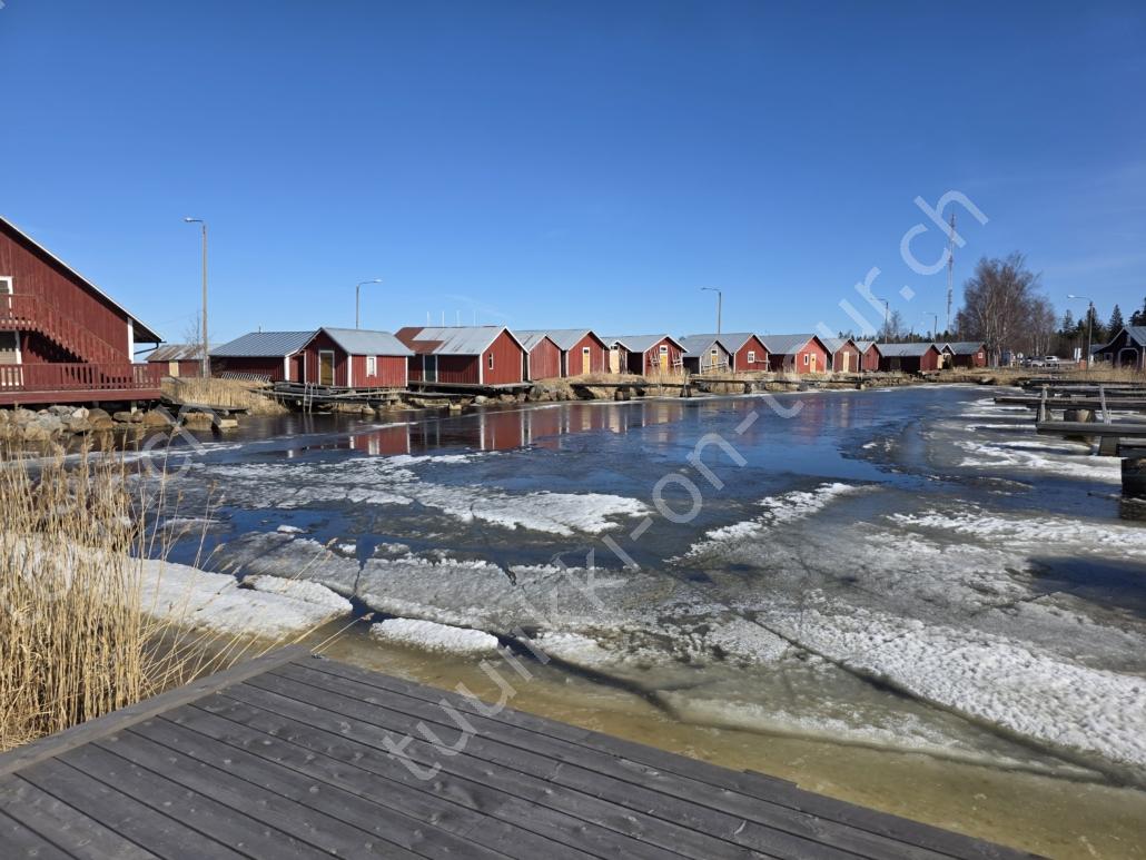 In der 2. März Hälfte müssen wir nochmals auf ein ‘Interview’ in die Schweiz. Ende März 2026 – der Frühling ist auch in Skandinavien früher als sonst – haben wir die Rückfahrt mit einer kurzen Finnland-Rundreise ergänzt. Vorbei an Stockholm, Schwedens Hauptstadt zielen wir Kapellskär an. Die Fähre bringt uns in 4 Stunden auf die zu Finnland gehörende, nur 1580 km2 grosse Insel ALAND am Eingang des Bottnischen Meerbusens, auf der die Amtssprache Schwedisch ist! Dabei verlieren wir innert Kürze 2 Stunden unserer Zeit, denn einerseits ist Finnland uns 1 Stunde voraus und präzise jetzt wird auf Sommerzeit umgestellt, also nochmals 1 Stunde. Etwas gewöhnungsbedürftig, statt um 6 Uhr ist es schon 8 Uhr beim Aufstehen. Nichtsdestotrotz geniessen wir bei 8°C, Sonne und Wind eine kurze Zeit am Hafen von Mariehamn, der Hauptstadt, bevor uns am Abend eine weitere Fähre durch den wunderschönen Schärengarten – an der Küste vorgelagerte, walfischrückenähnliche Inseln – auf’s finnische Festland bringt. Dort nehmen wir die östlichste Route, quasi der russischen Grenze entlang, vorbei am Abzweiger St. Petersburg. Hinweistafeln warnen vor dem Betreten grenznaher Gebiete. In Südkarelien folgen wir der Via Karelia, spazieren unter anderem dem Saimaa-Kanal entlang (wo früher über die rund 43 km reger Schiffsverkehr von und nach Russland herrschte), über schneefreie Loipen-Strecken in Ilomantsi und im absolut empfehlenswerten Kvarken Archipel (Kvark=Hals) am Hafengelände von Björköby und dem umliegenden Naturschutzgebiet. Am Karsamstag bringt uns dann die nächste Fähre von Vaasa/FIN wieder rüber nach Umea in Schweden. Auf dem Landweg geht es dann wieder zurück zum temporär gemieteten Haus.