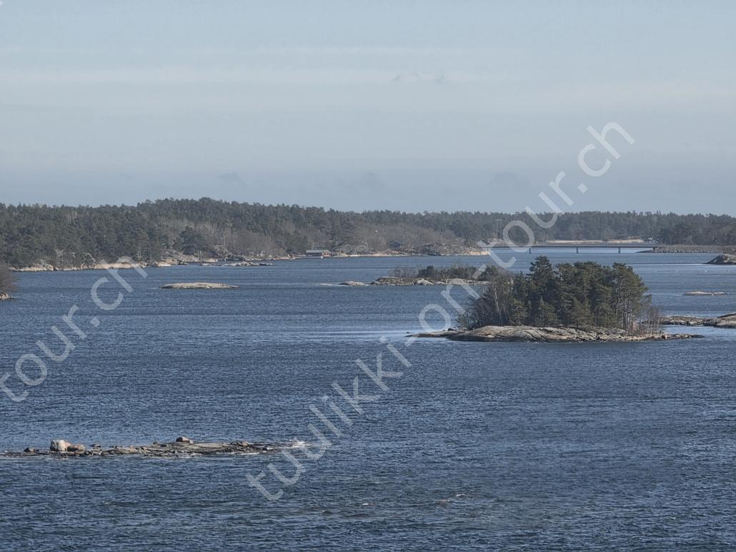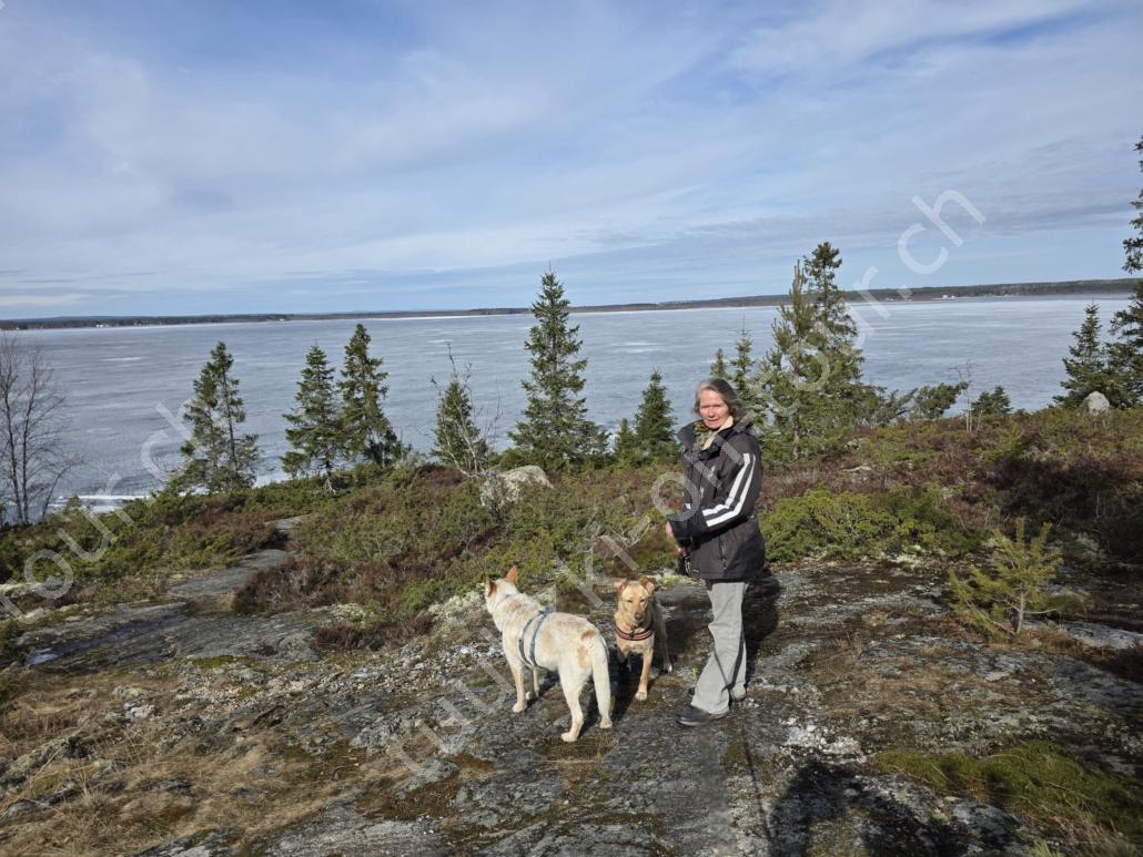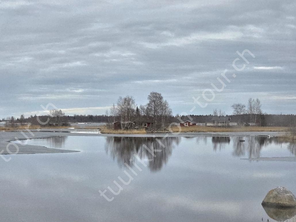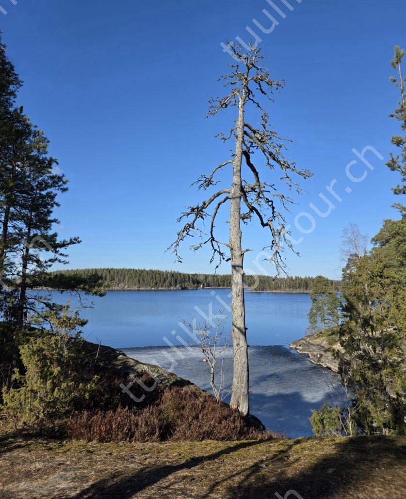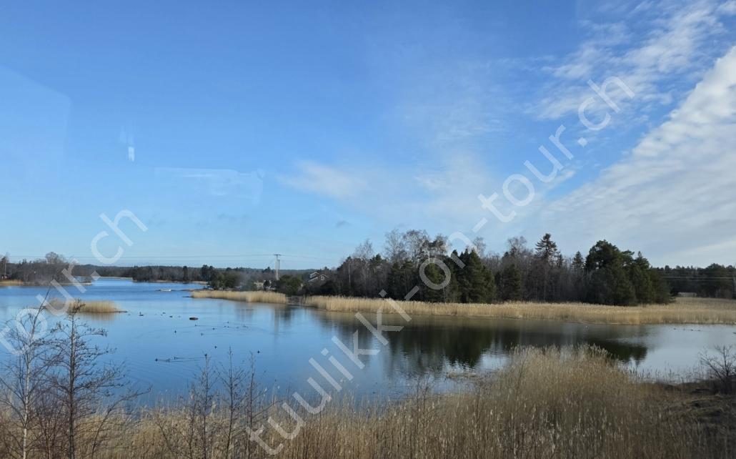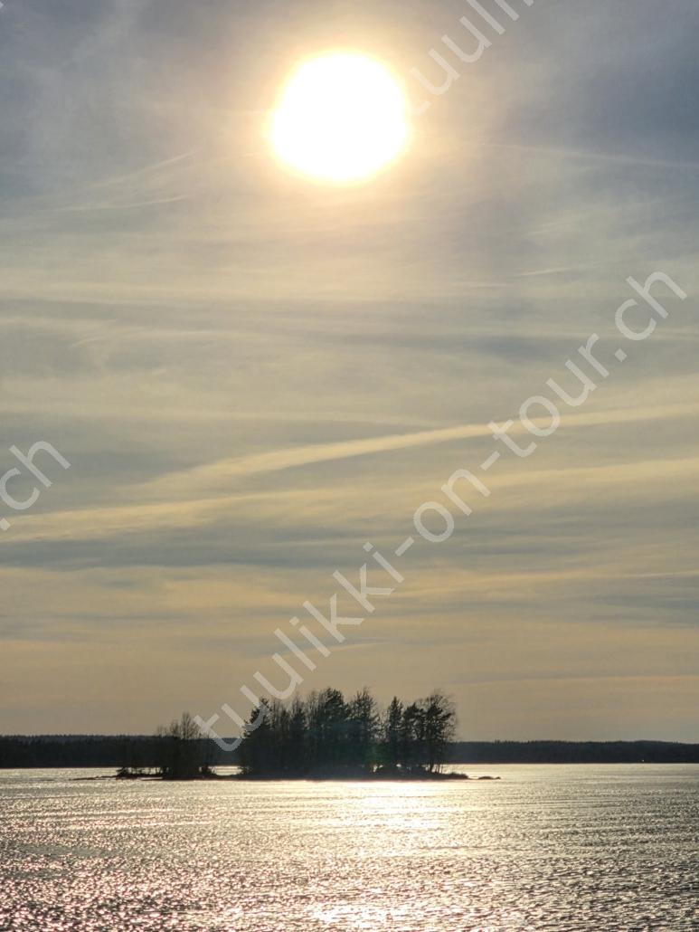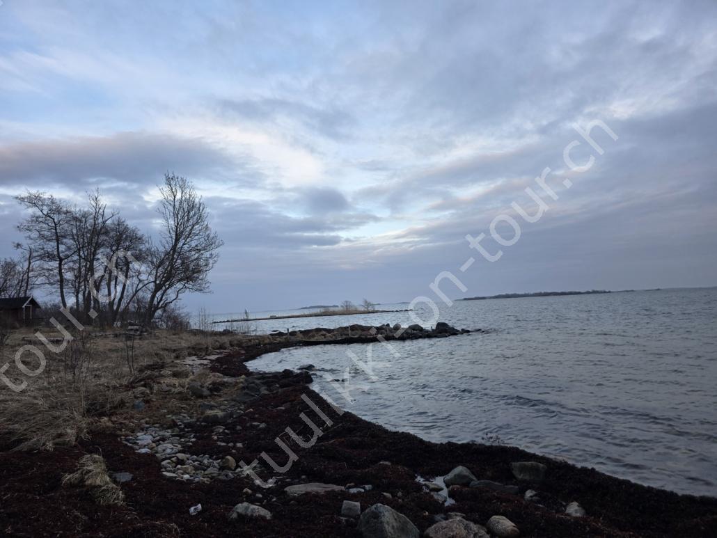 In der 2. März Hälfte müssen wir nochmals auf ein ‘Interview’ in die Schweiz. Ende März 2026 – der Frühling ist auch in Skandinavien früher als sonst – haben wir die Rückfahrt mit einer kurzen Finnland-Rundreise ergänzt. Vorbei an Stockholm, Schwedens Hauptstadt zielen wir Kapellskär an. Die Fähre bringt uns in 4 Stunden auf die zu Finnland gehörende, nur 1580 km2 grosse Insel ALAND am Eingang des Bottnischen Meerbusens, auf der die Amtssprache Schwedisch ist! Dabei verlieren wir innert Kürze 2 Stunden unserer Zeit, denn einerseits ist Finnland uns 1 Stunde voraus und präzise jetzt wird auf Sommerzeit umgestellt, also nochmals 1 Stunde. Etwas gewöhnungsbedürftig, statt um 6 Uhr ist es schon 8 Uhr beim Aufstehen. Nichtsdestotrotz geniessen wir bei 8°C, Sonne und Wind eine kurze Zeit am Hafen von Mariehamn, der Hauptstadt, bevor uns am Abend eine weitere Fähre durch den wunderschönen Schärengarten – an der Küste vorgelagerte, walfischrückenähnliche Inseln – auf’s finnische Festland bringt. Dort nehmen wir die östlichste Route, quasi der russischen Grenze entlang, vorbei am Abzweiger St. Petersburg. Hinweistafeln warnen vor dem Betreten grenznaher Gebiete. In Südkarelien folgen wir der Via Karelia, spazieren unter anderem dem Saimaa-Kanal entlang (wo früher über die rund 43 km reger Schiffsverkehr von und nach Russland herrschte), über schneefreie Loipen-Strecken in Ilomantsi und im absolut empfehlenswerten Kvarken Archipel (Kvark=Hals) am Hafengelände von Björköby und dem umliegenden Naturschutzgebiet. Am Karsamstag bringt uns dann die nächste Fähre von Vaasa/FIN wieder rüber nach Umea in Schweden. Auf dem Landweg geht es dann wieder zurück zum temporär gemieteten Haus.