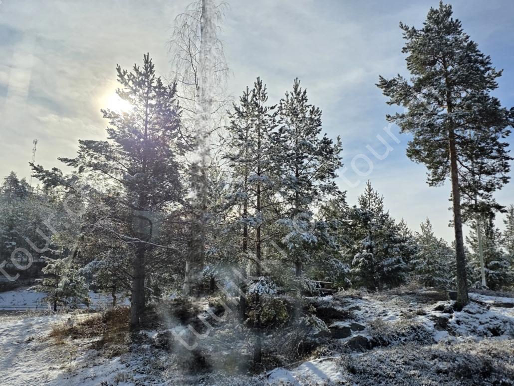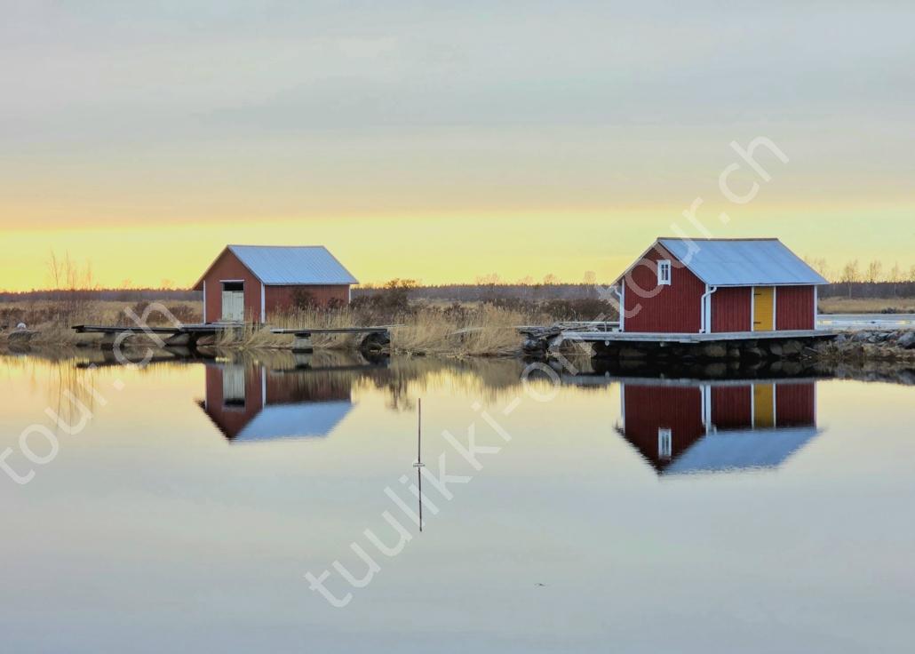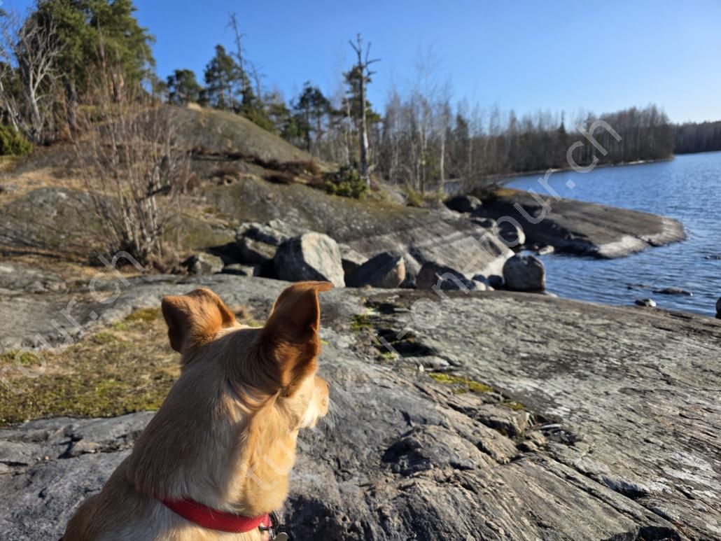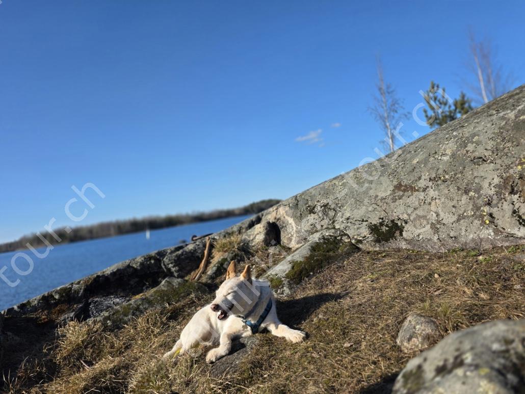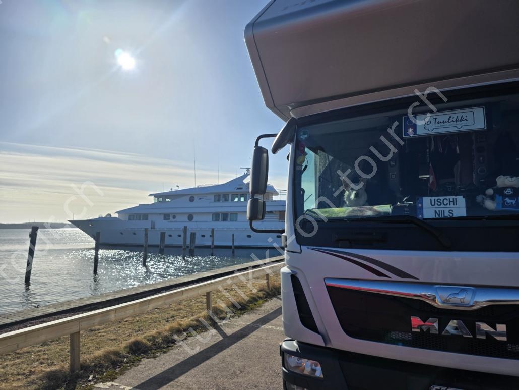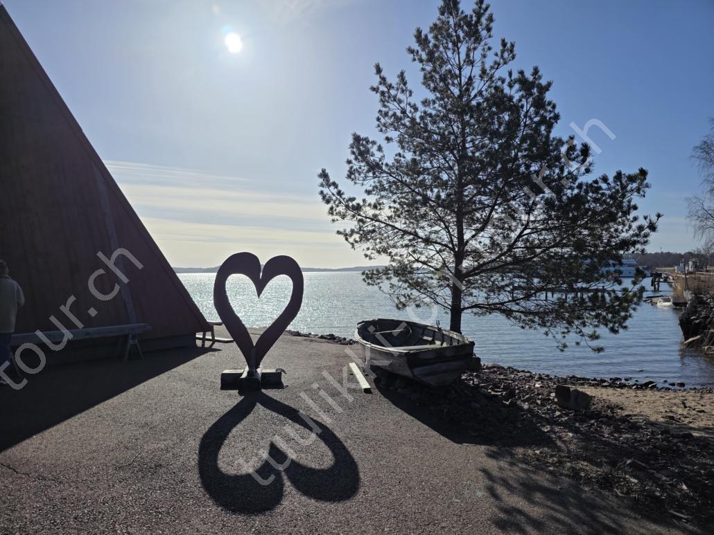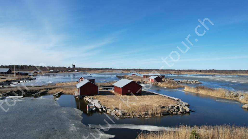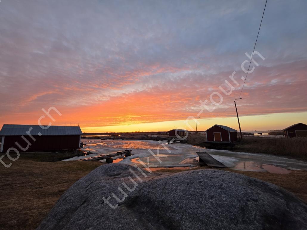 In der 2. März Hälfte müssen wir nochmals auf ein ‘Interview’ in die Schweiz. Ende März 2026 – der Frühling ist auch in Skandinavien früher als sonst – haben wir die Rückfahrt mit einer kurzen Finnland-Rundreise ergänzt. Vorbei an Stockholm, Schwedens Hauptstadt zielen wir Kapellskär an. Die Fähre bringt uns in 4 Stunden auf die zu Finnland gehörende, nur 1580 km2 grosse Insel ALAND am Eingang des Bottnischen Meerbusens, auf der die Amtssprache Schwedisch ist! Dabei verlieren wir innert Kürze 2 Stunden unserer Zeit, denn einerseits ist Finnland uns 1 Stunde voraus und präzise jetzt wird auf Sommerzeit umgestellt, also nochmals 1 Stunde. Etwas gewöhnungsbedürftig, statt um 6 Uhr ist es schon 8 Uhr beim Aufstehen. Nichtsdestotrotz geniessen wir bei 8°C, Sonne und Wind eine kurze Zeit am Hafen von Mariehamn, der Hauptstadt, bevor uns am Abend eine weitere Fähre durch den wunderschönen Schärengarten – an der Küste vorgelagerte, walfischrückenähnliche Inseln – auf’s finnische Festland bringt. Dort nehmen wir die östlichste Route, quasi der russischen Grenze entlang, vorbei am Abzweiger St. Petersburg. Hinweistafeln warnen vor dem Betreten grenznaher Gebiete. In Südkarelien folgen wir der Via Karelia, spazieren unter anderem dem Saimaa-Kanal entlang (wo früher über die rund 43 km reger Schiffsverkehr von und nach Russland herrschte), über schneefreie Loipen-Strecken in Ilomantsi und im absolut empfehlenswerten Kvarken Archipel (Kvark=Hals) am Hafengelände von Björköby und dem umliegenden Naturschutzgebiet. Am Karsamstag bringt uns dann die nächste Fähre von Vaasa/FIN wieder rüber nach Umea in Schweden. Auf dem Landweg geht es dann wieder zurück zum temporär gemieteten Haus.